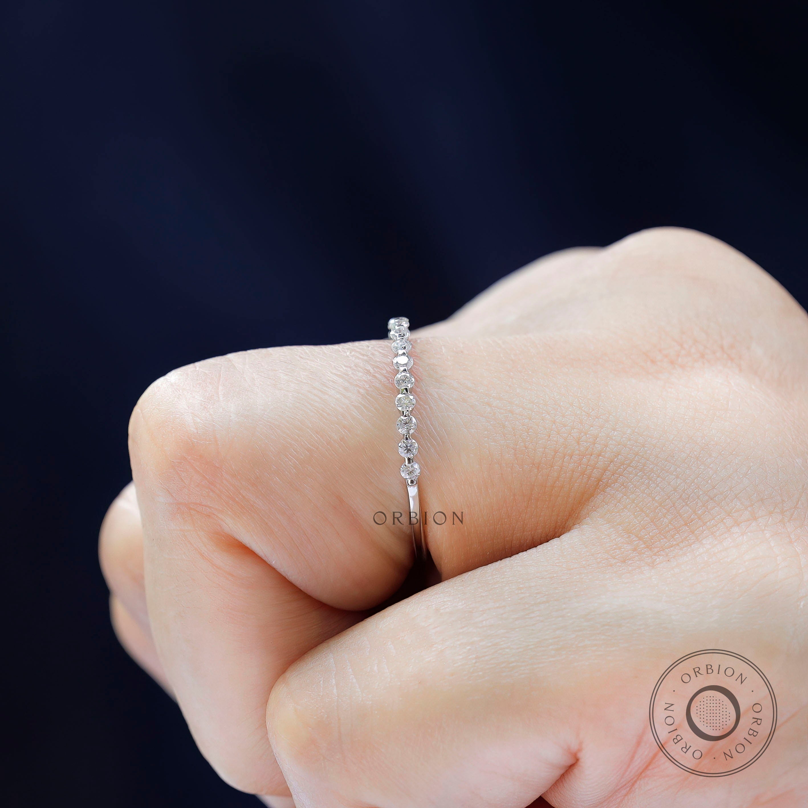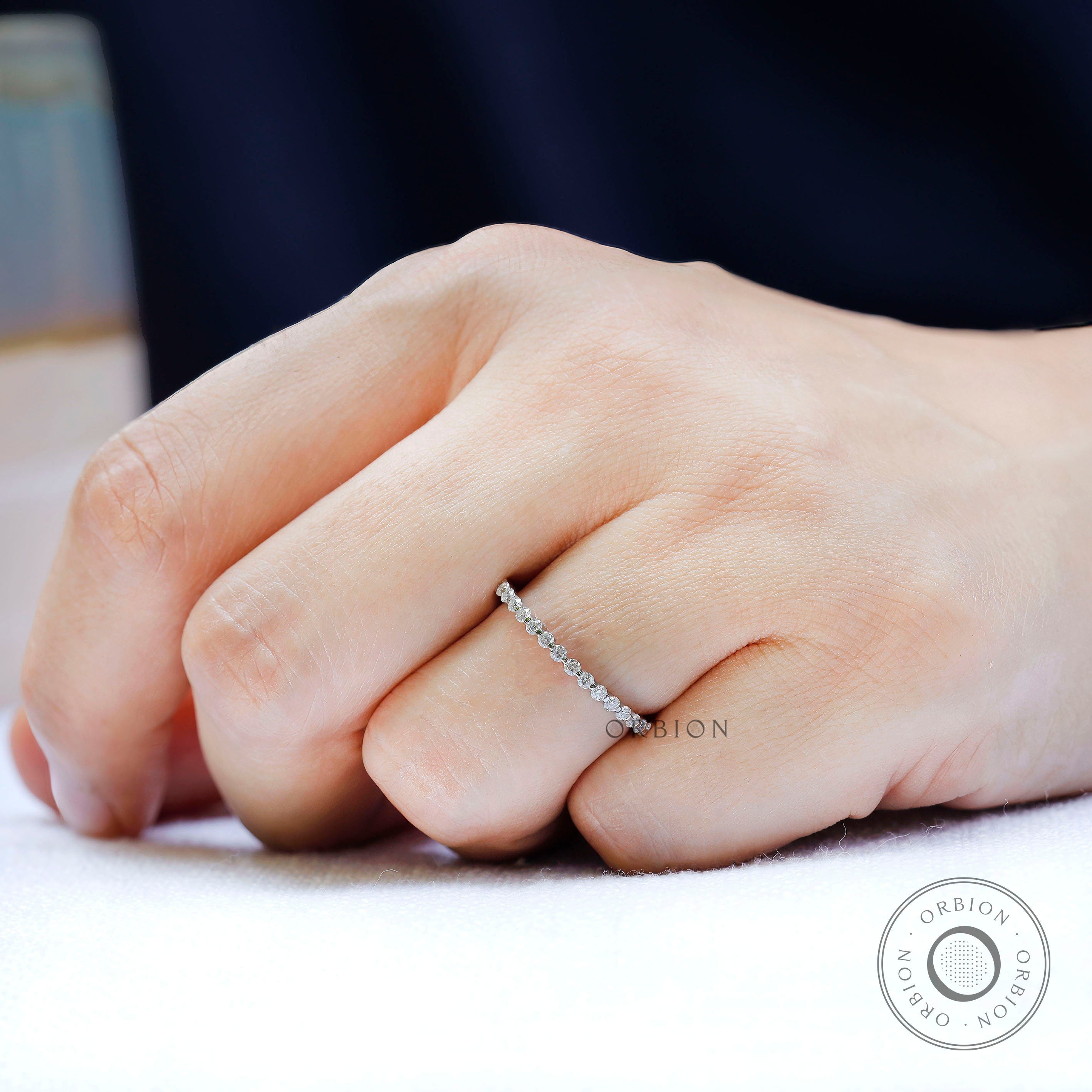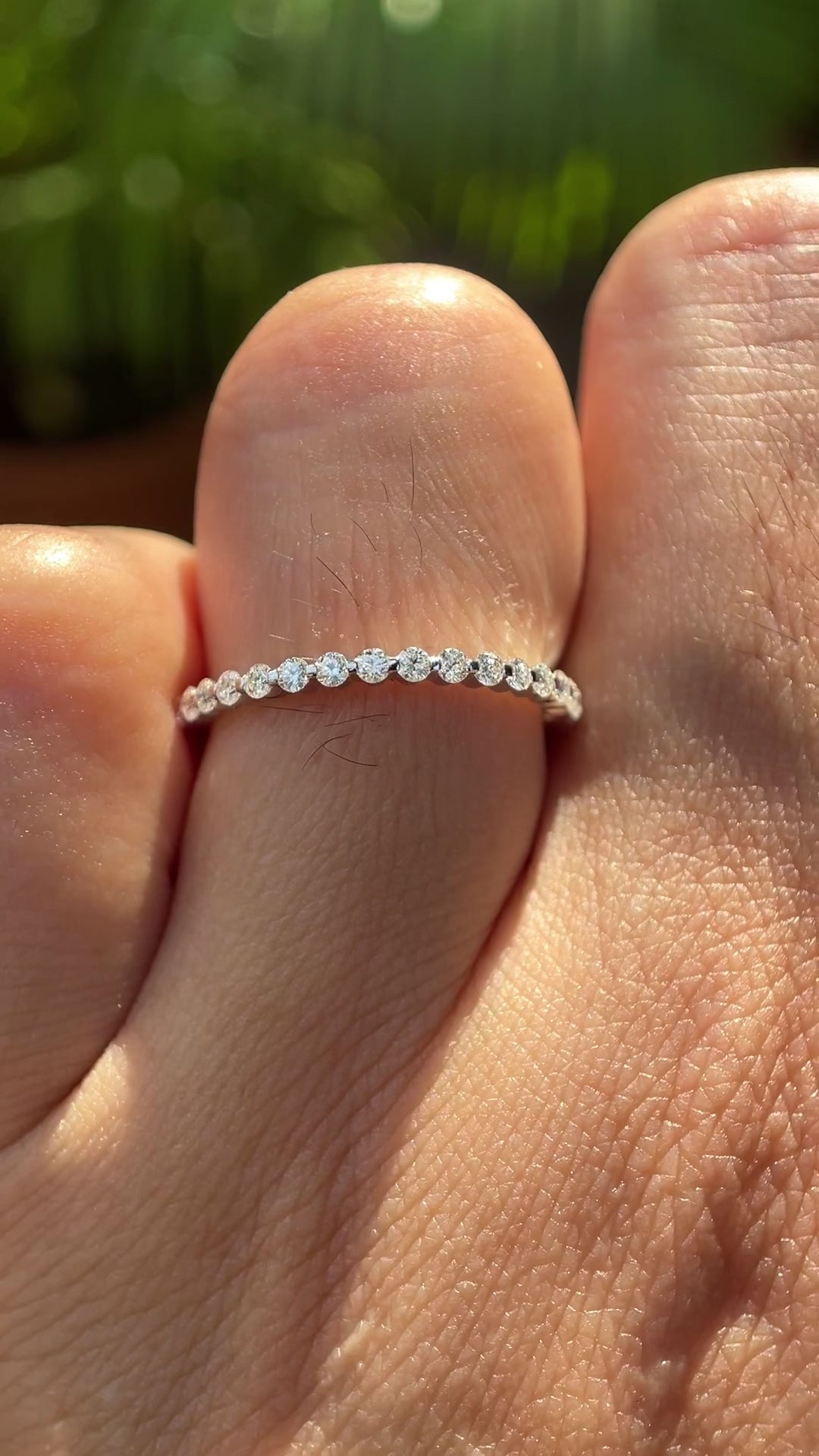 3/4 Eternity Moissanite Diamond Bubble Ring/ 1.6mm Women Floating Diamond Shared Prong Band/ Unique Wedding Diamond Stacking/ Gift For Her