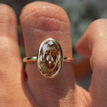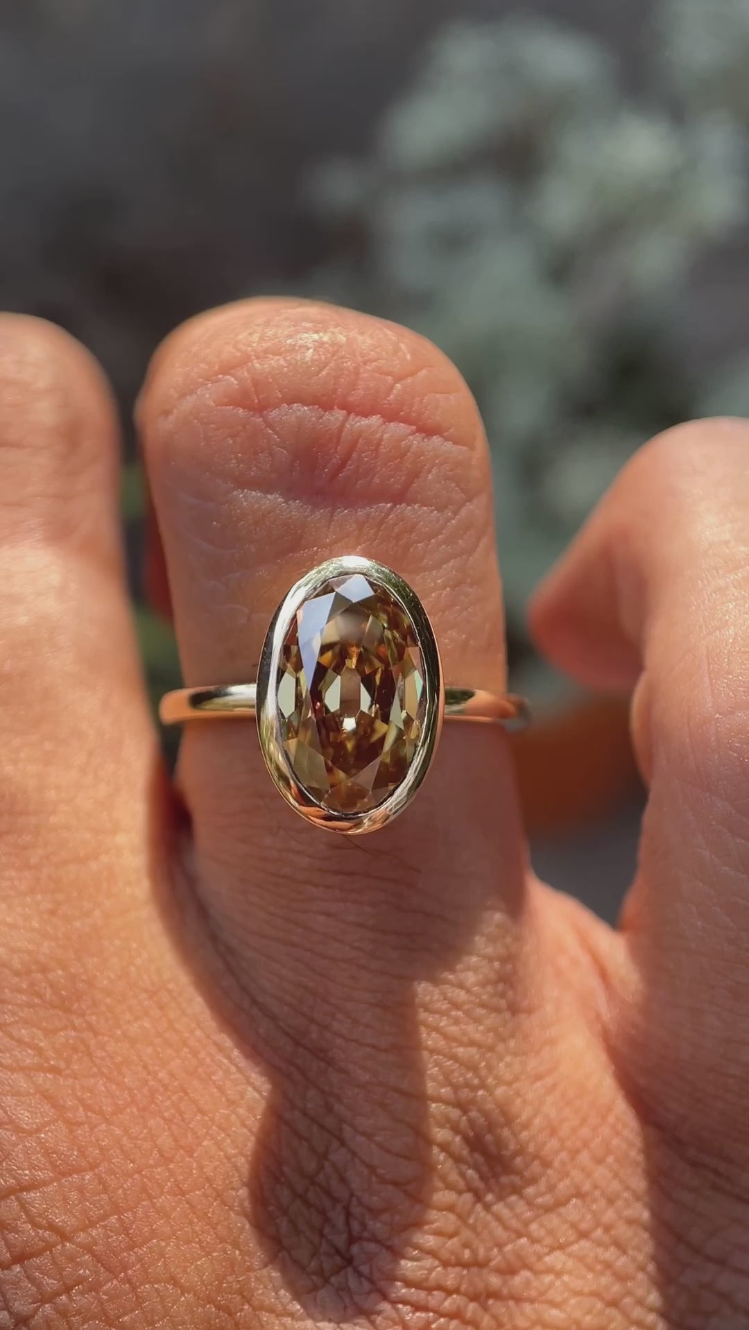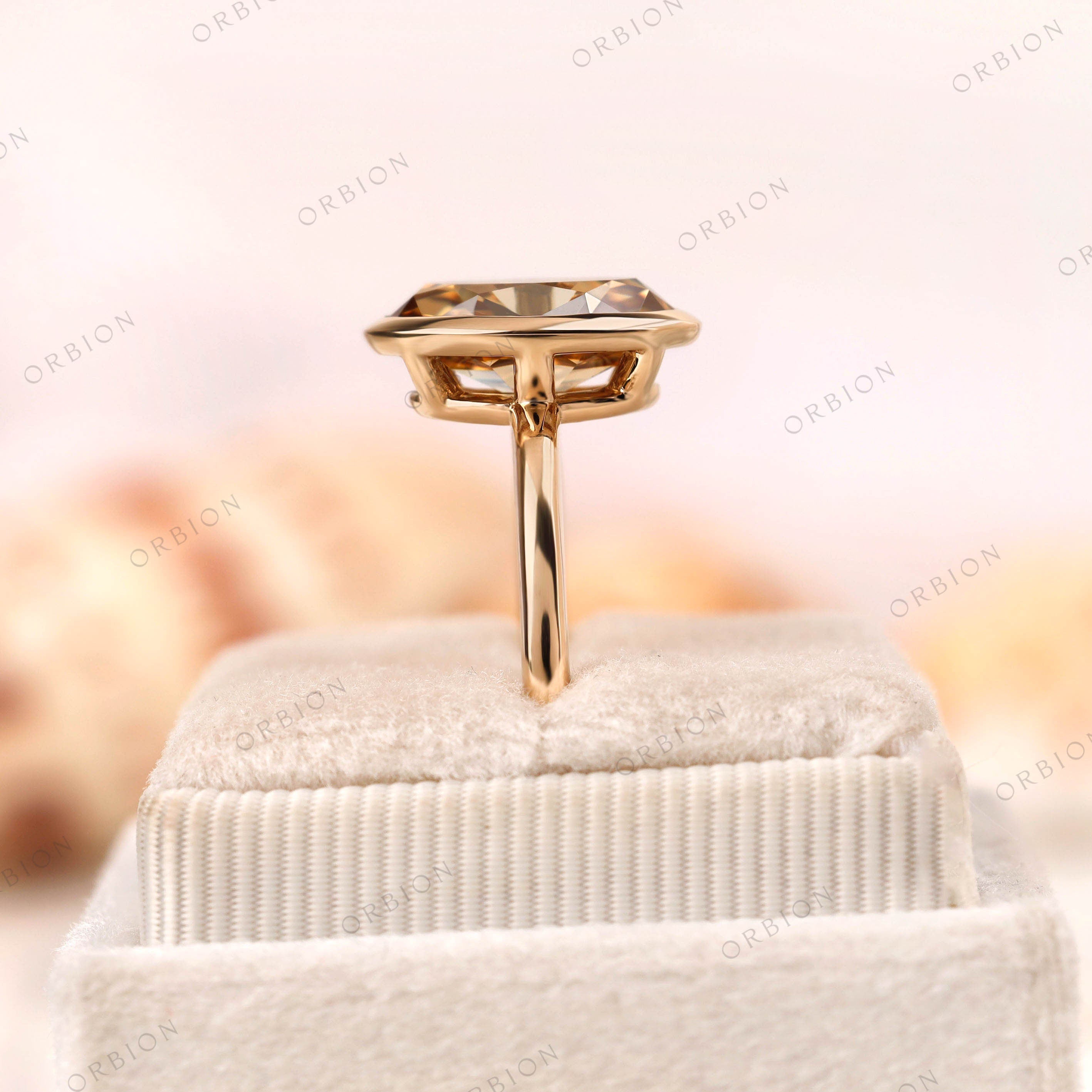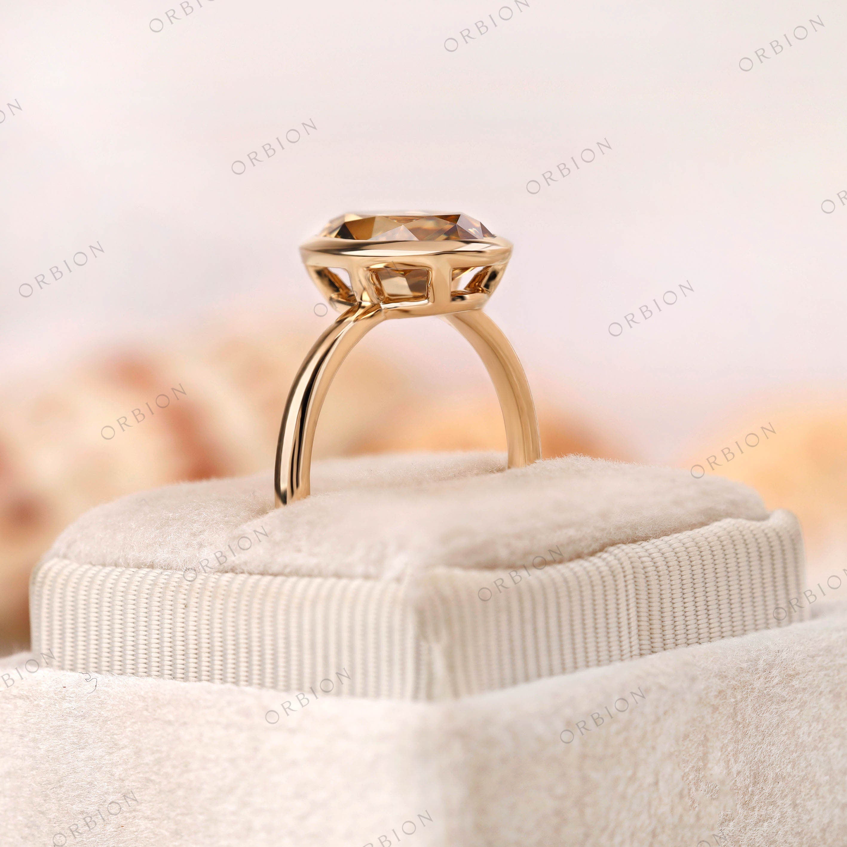 3.5 Ct Brownish Champagne Large Open Culet OMC Oval Moissanite Ring, Unique Bezel Low Profile Set Engagement Ring, Cognac Moissanite Ring, Vintage Style Solitaire Ring, Promise Ring For Her, Old Mine Cut Moissanite, Antique Oval Cut Ring, 14K Solid Gold Ring, Anniversary Gift, Vintage Jewelry, Antique Jewelry