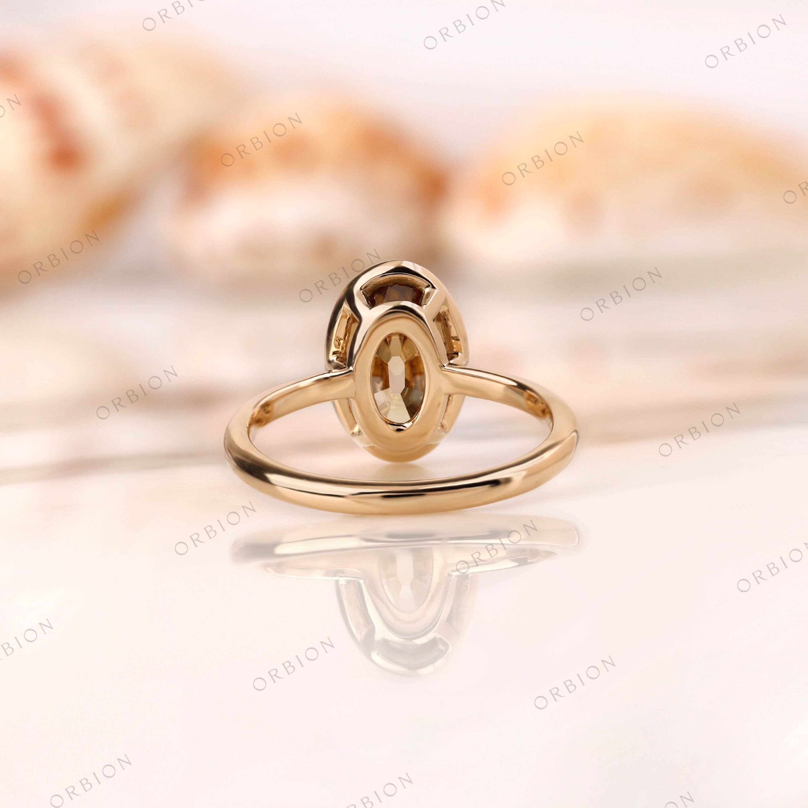 3.50 Carat Champagne Brownish Oval Cut Moissanite Engagement Ring in 18K Gold | Vintage Solitaire Ring | Statement Bridal Jewelry