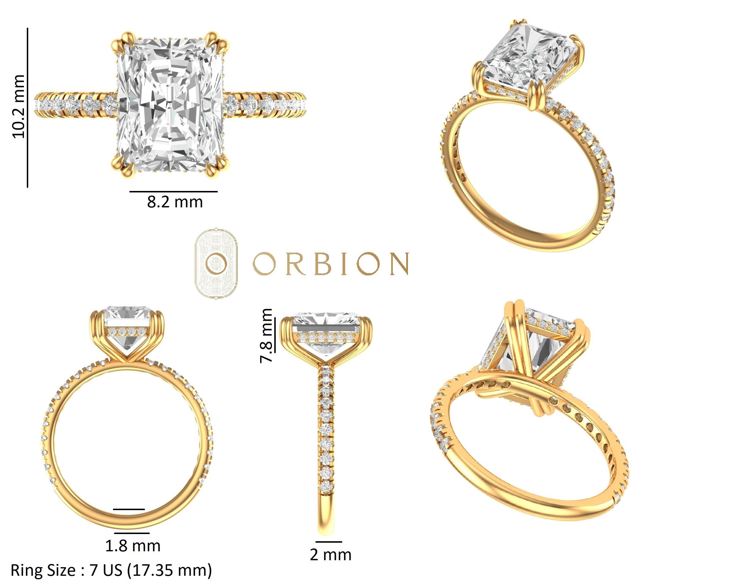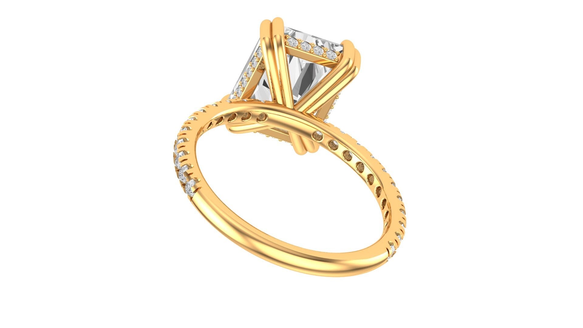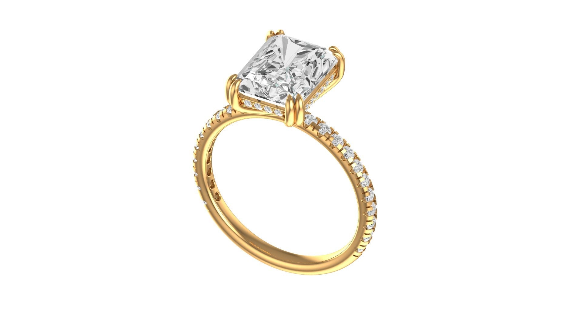 3.5 CT Brilliant Radiant Cut Moissanite Ring, 10K/14K/18K Yellow Gold Moissanite Pave Set Engagement Ring, Hidden Halo Ring, Wedding Ring