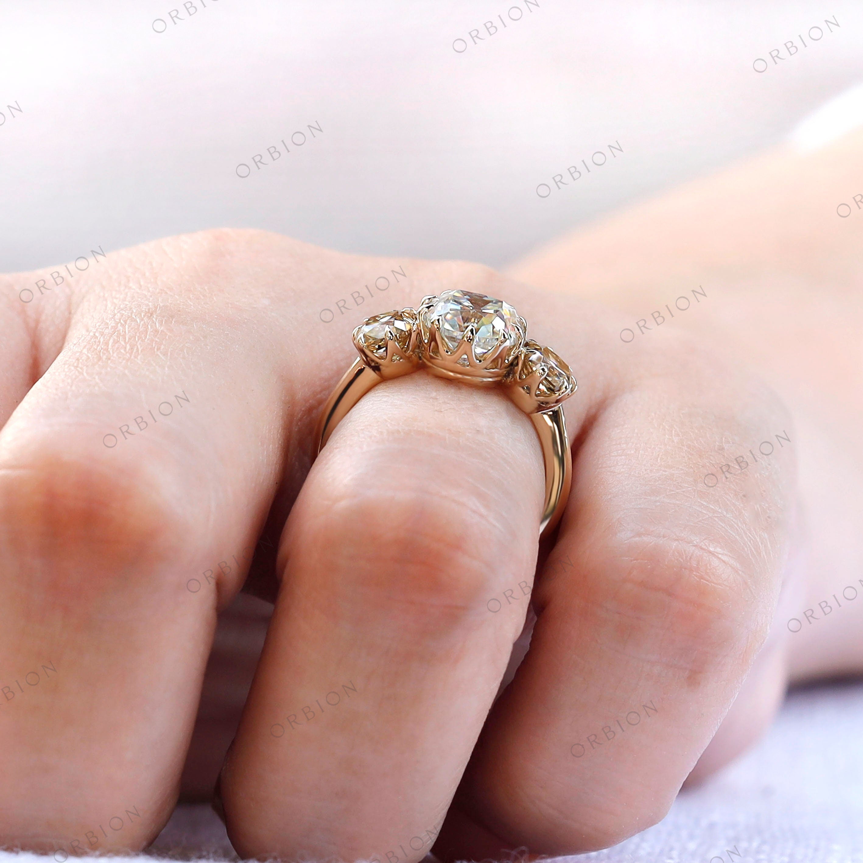 Three Stone Vintage Engagement Ring, Moissanite Ring, Georgian Ring, Old Mine Cut Moissanite, Antique Jewelry, Vintage Jewelry, Vintage Wedding Ring, Estate Jewelry, Antique Ring For Women, Handmade Jewelry, Claw Prong Set Ring, Unique Wedding Ring, Antique-Style Ring, 3 Stone Ring, Promise Ring for Her.