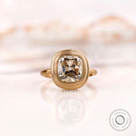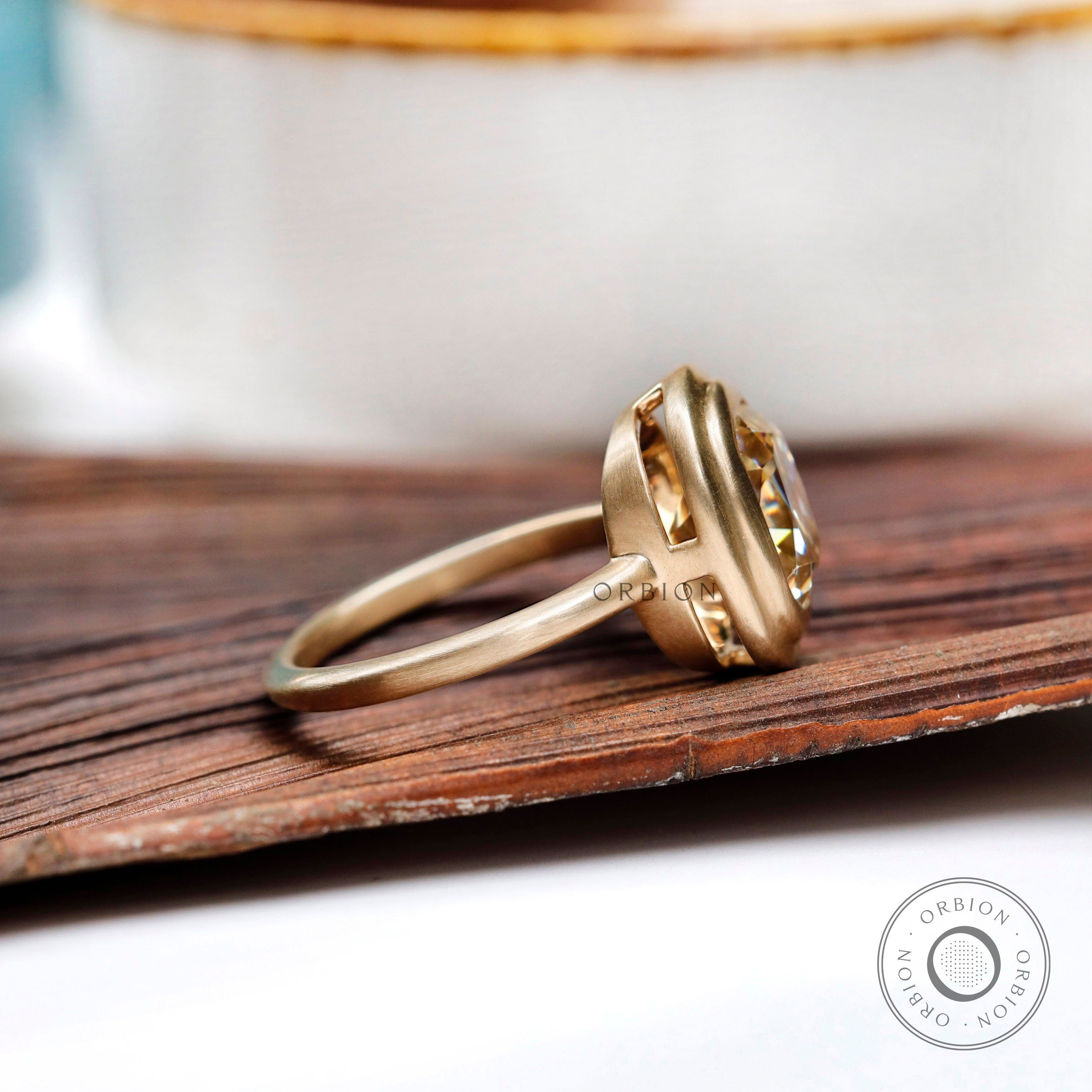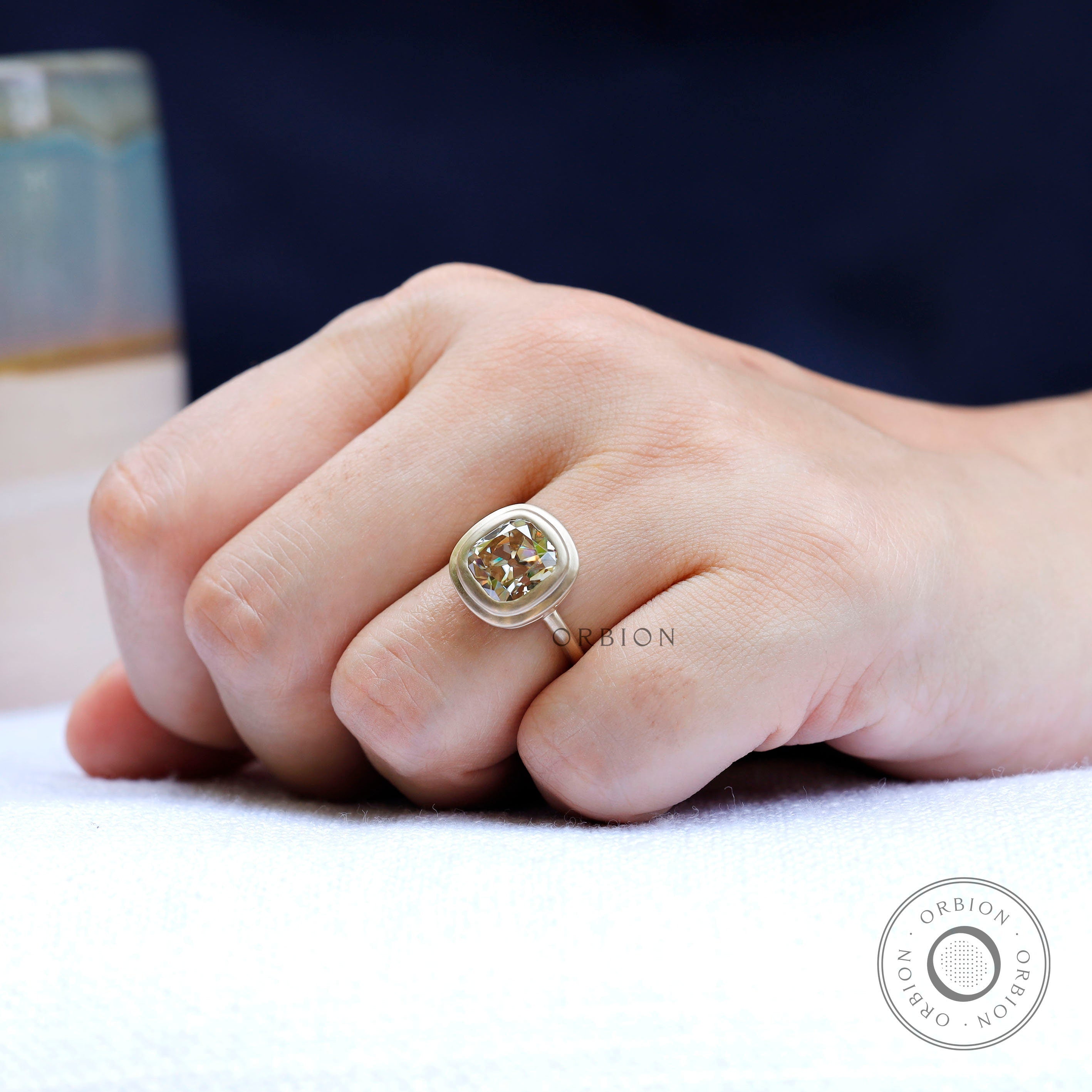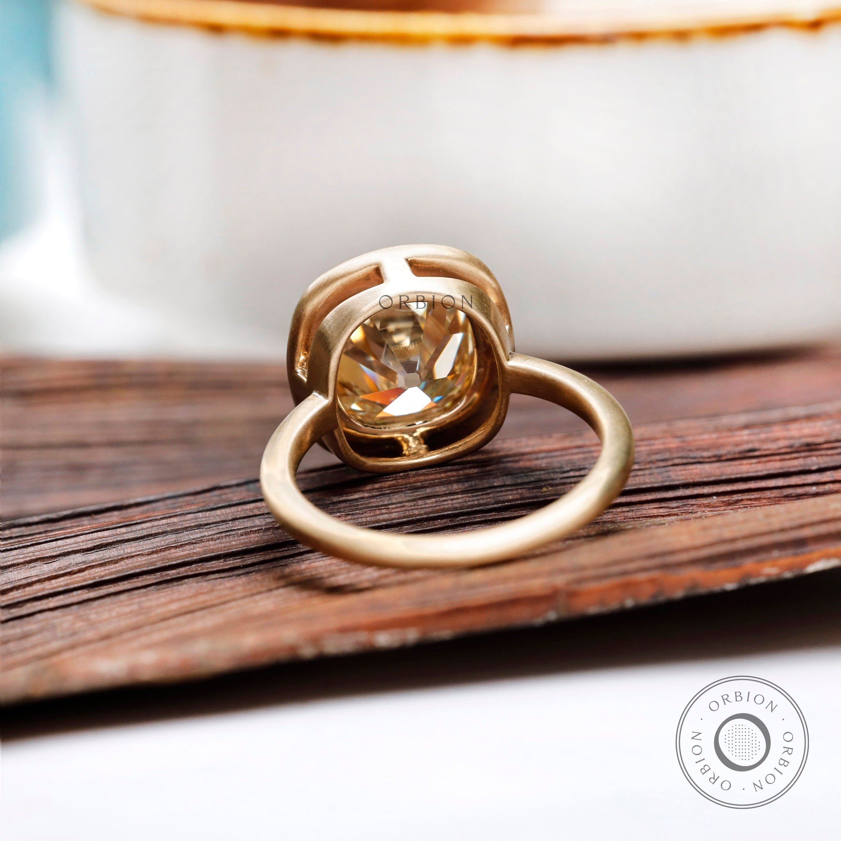OMC Cushion Champagne Moissanite Engagement Ring Brushed Matte Finish Double Bezel Set Ring Vintage Solitaire Ring Color Moissanite Ring