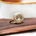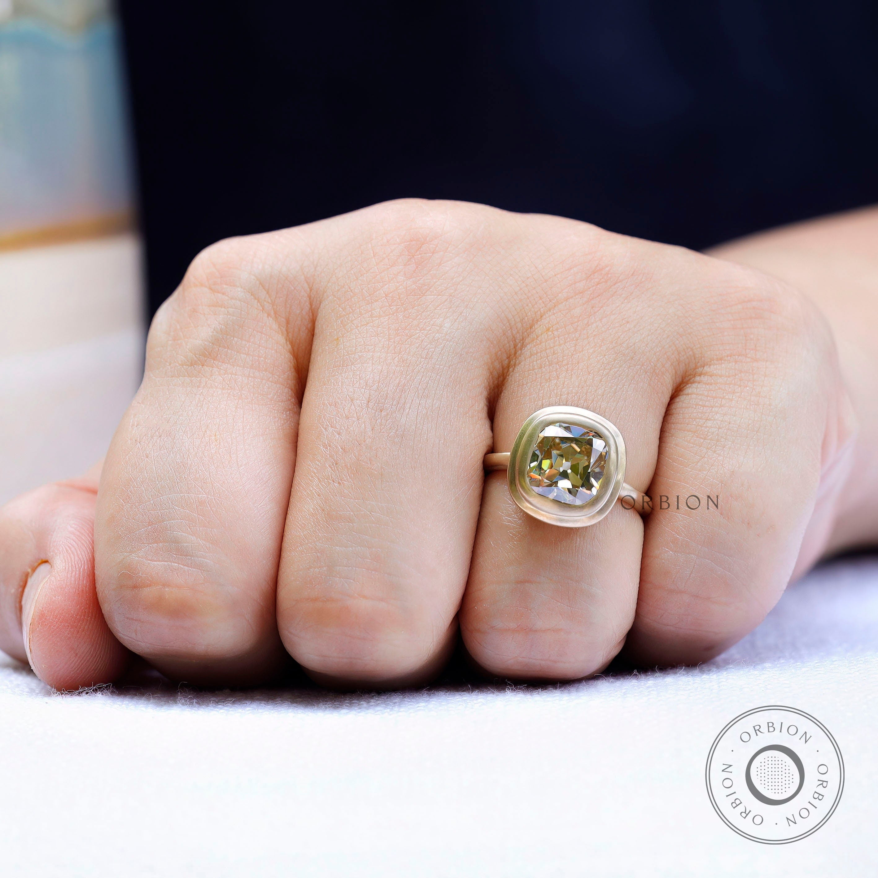 3.6 CT Light Champagne Old Mine Cushion Moissanite Engagement Ring, Brushed Matte Finish Double Bezel Set Ring, Heirloom Jewelry, Heirloom Engagement Rings, Vintage Solitaire Ring, 10k/14k/18k Solid Gold Ring, Handmade Jewelry, Estate Ring, Promise Ring, Proposal Ring, Large Moissanite Ring, Solitaire Ring, Low Profile Setting, Cushion Cut ring.