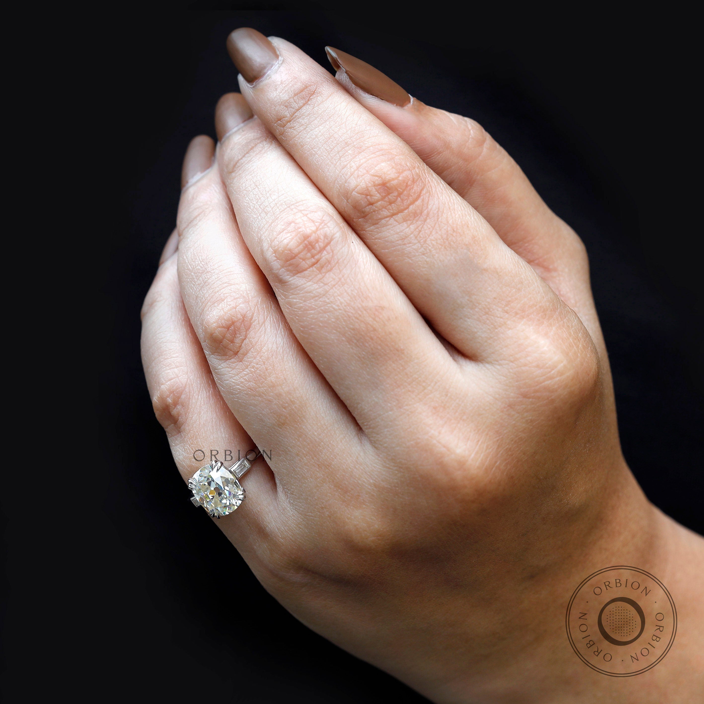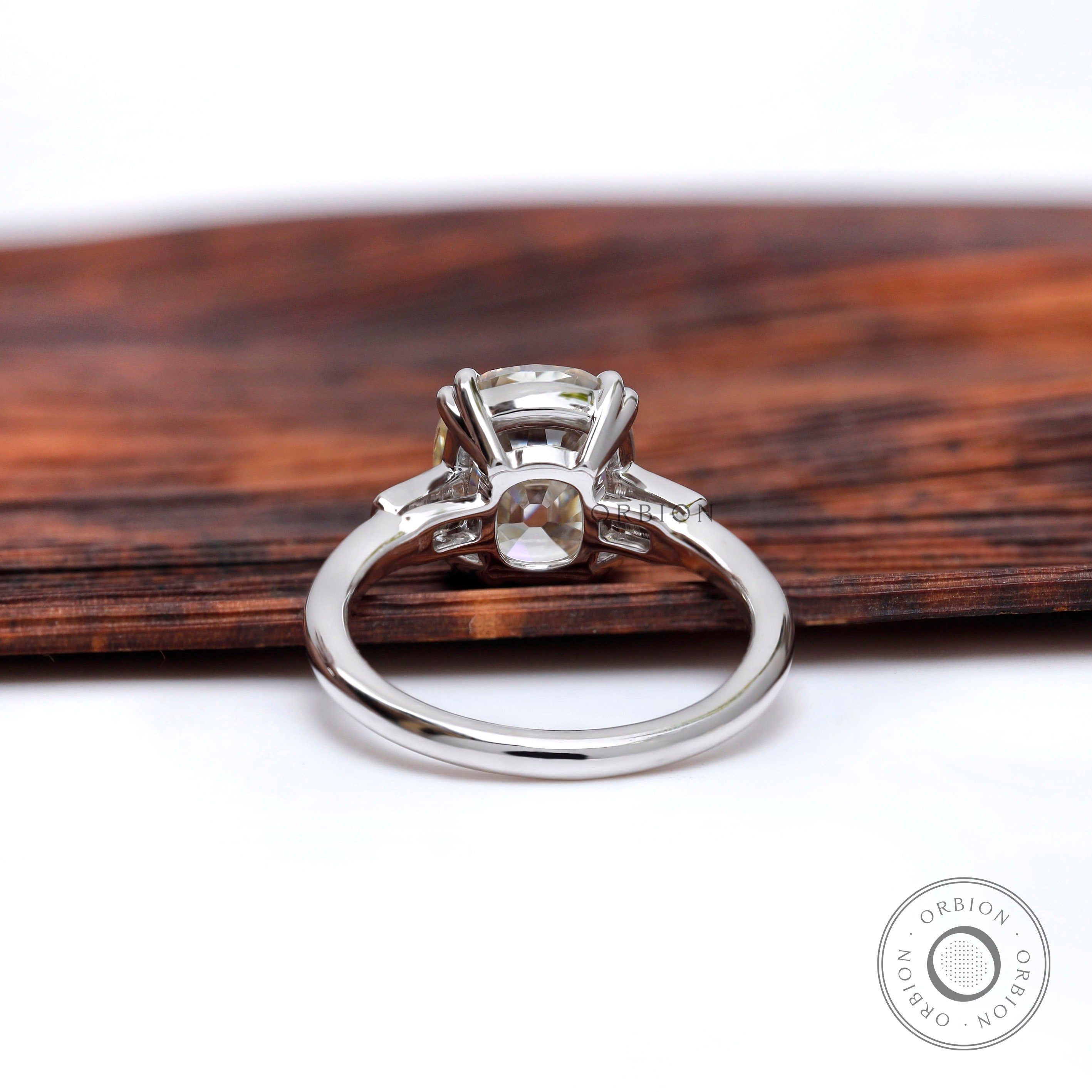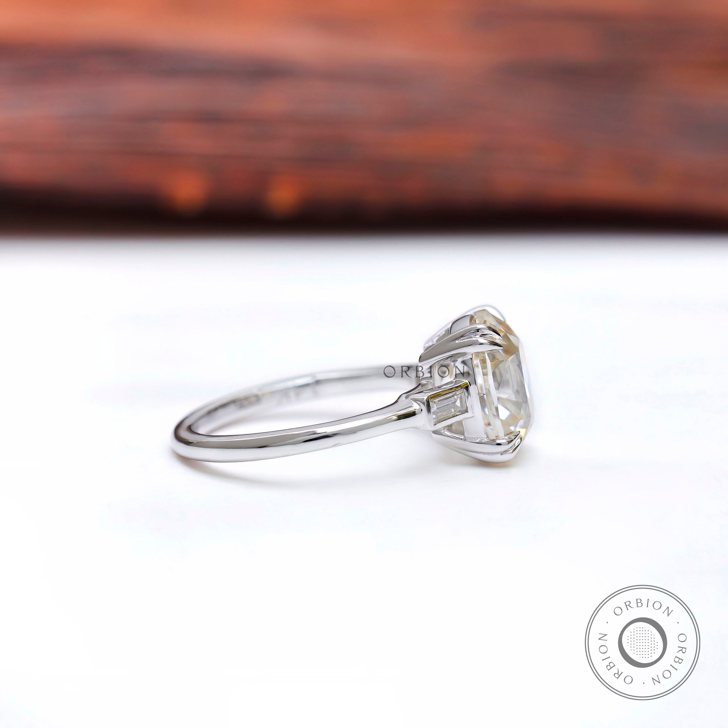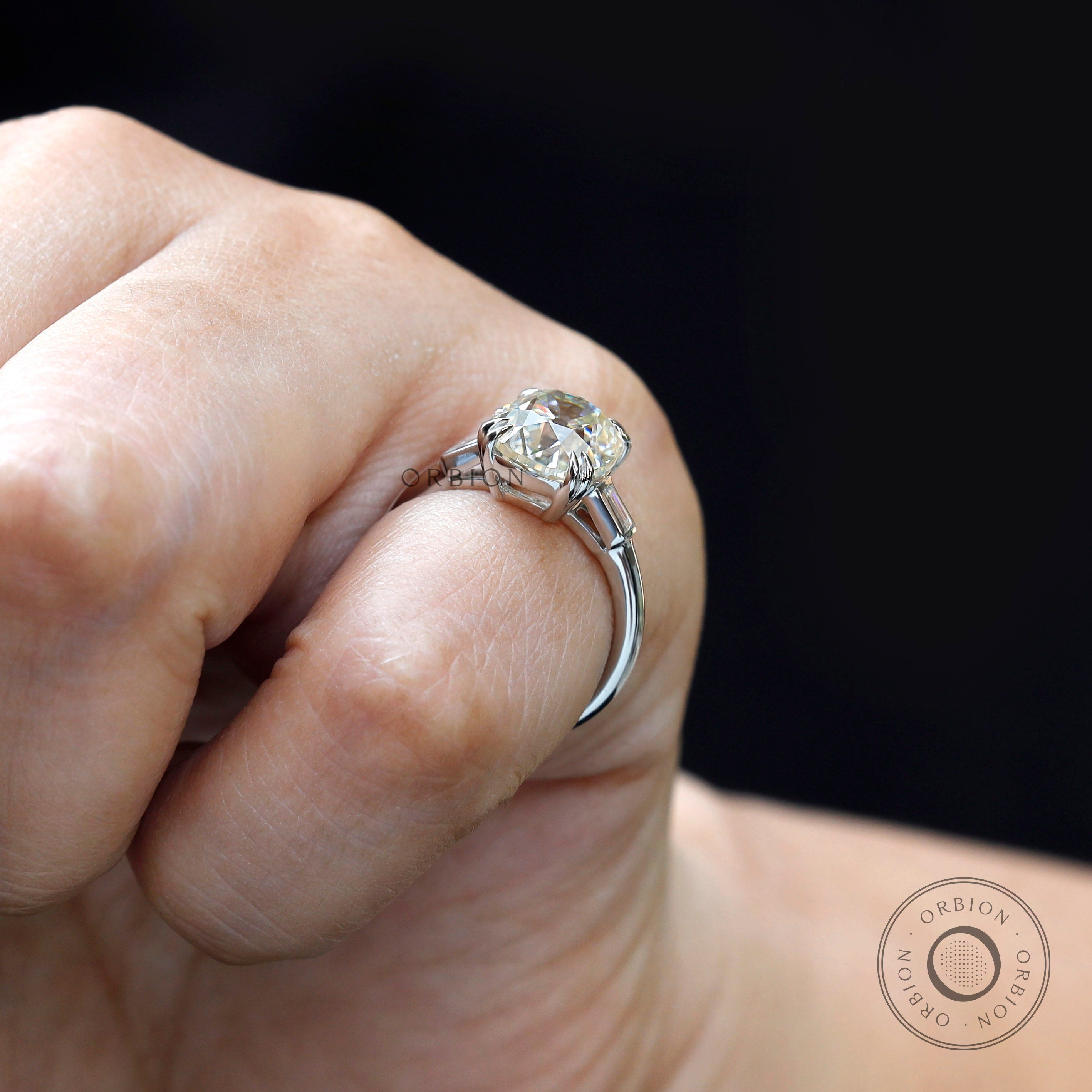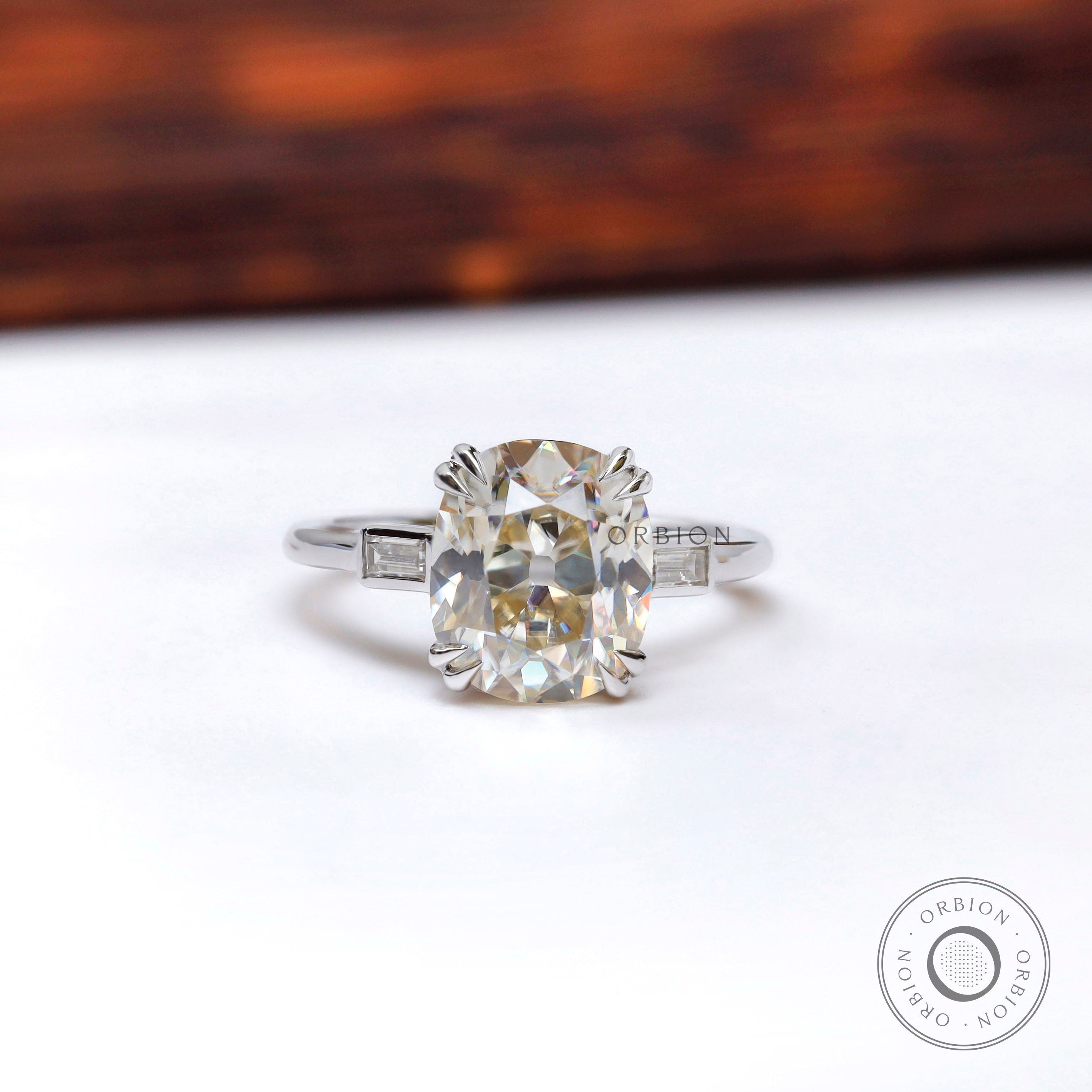 Old Mine Cut Elongated Cushion Moissanite Ring, GHI Moissanite Ring, Double Claw Prong Ring, Heirloom Jewelry, Heirloom Engagement Rings, 10k/14k/18k White Gold Ring, Three Stone Ring, Vintage Wedding Ring, Antique Ring For Women, Anniversary Gift, Baguette Side Stone Ring, Proposal Ring For Her, Old Cut Ring, Antique Cut Ring, Vintage Jewelry, Handmade Jewelry
