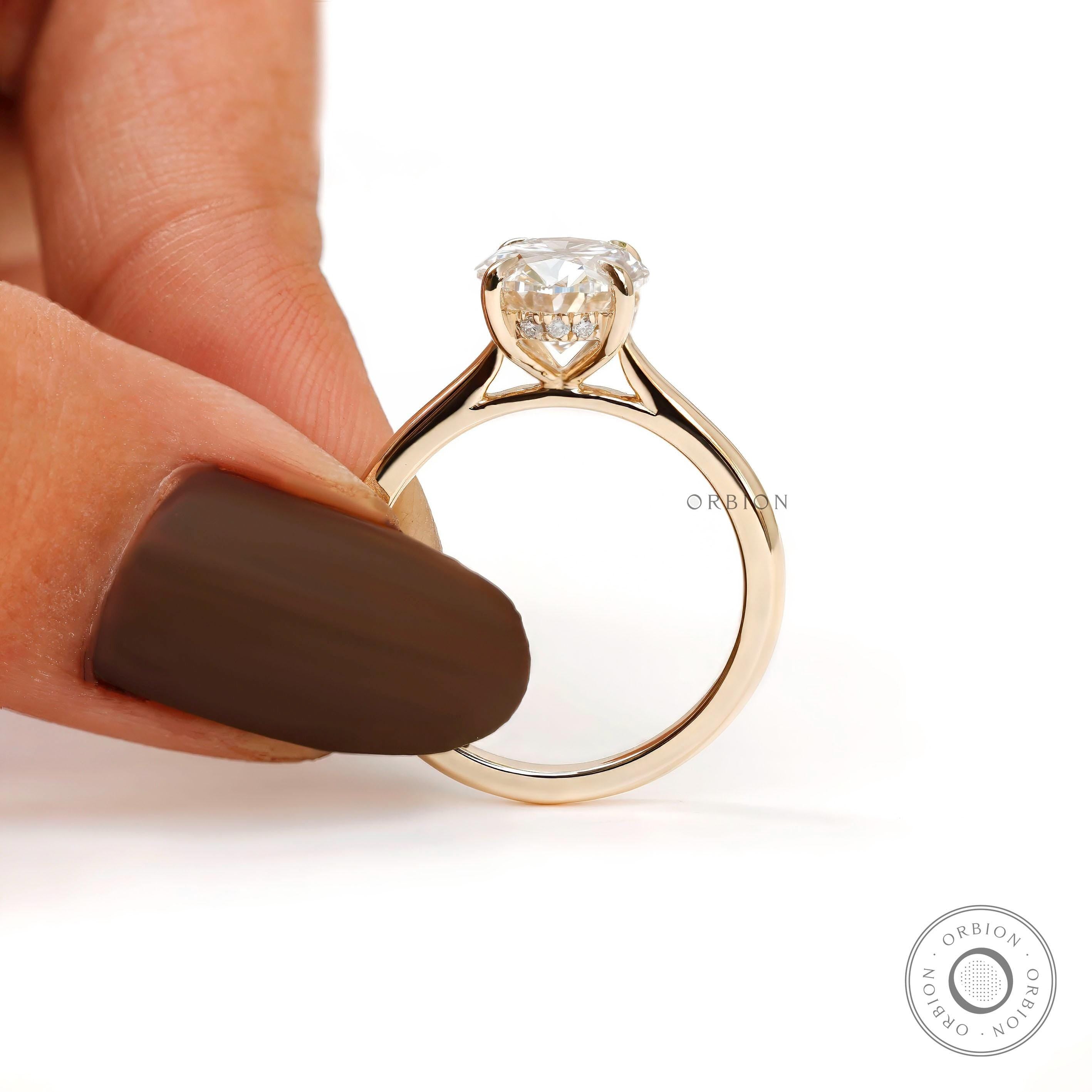 3 CT Oval Cut Diamond Ring, Oval Lab Diamond/Moissanite Engagement Ring, Hidden Halo Oval Moissanite Ring, 3 Carat Lab Diamond Ring