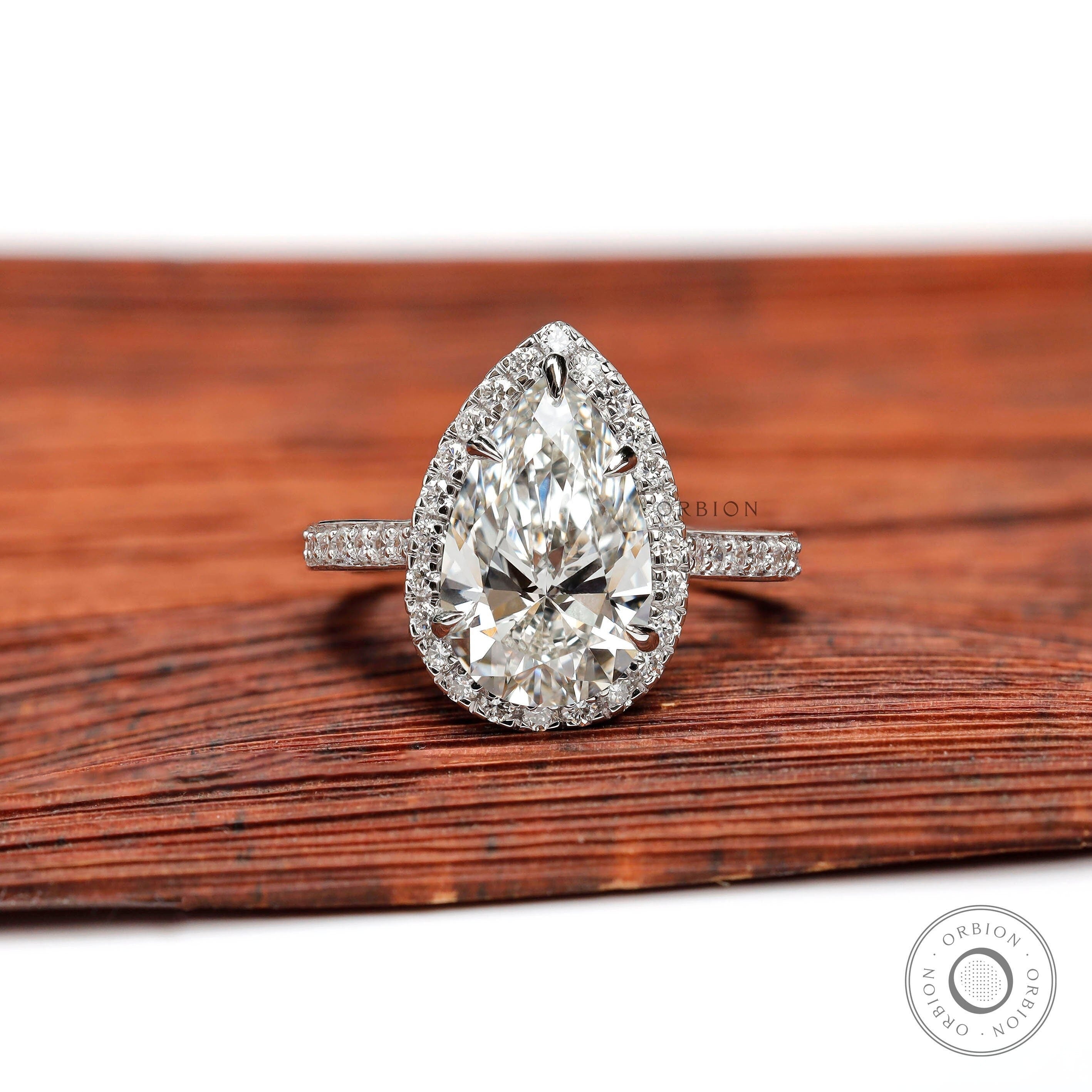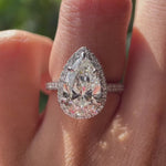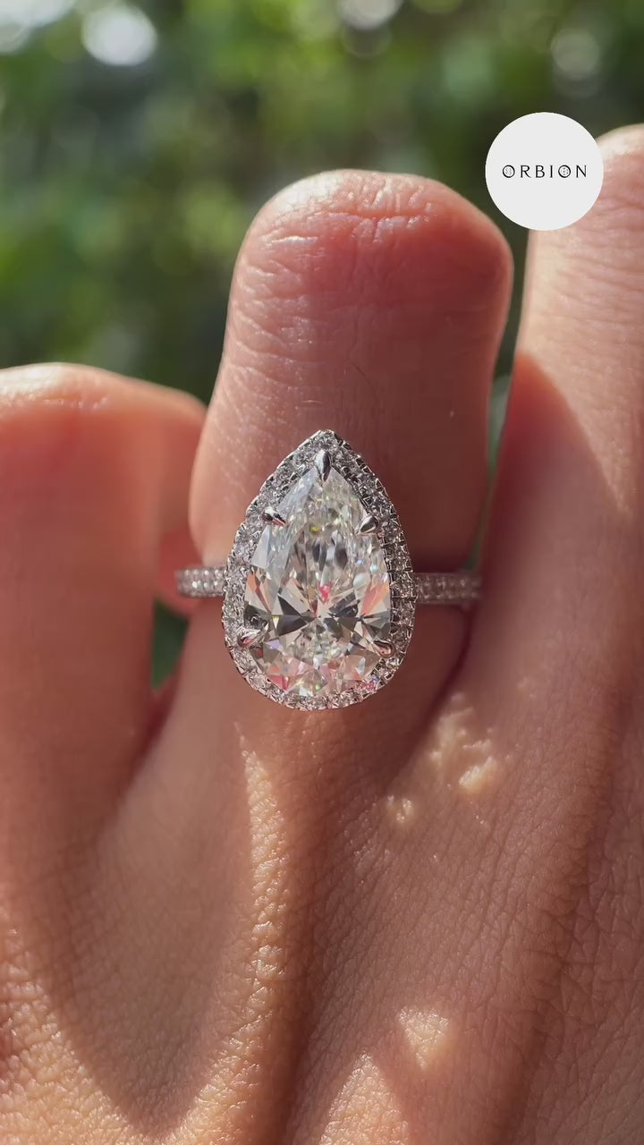3 Ct Pear Lab Grown Diamond Ring | 3 Ct Pear Ring With Halo | Pear Diamond White Gold Ring | Pear Diamond Engagement Ring | Pear Cut Halo Diamond Ring | Pear Cut Halo Wedding Ring | Pear Lab Grown Diamond Ring | Pear Halo Engagement Ring | 3 Carat Pear Shape Diamond Ring | Pear Cut Cathedral Set Ring.