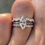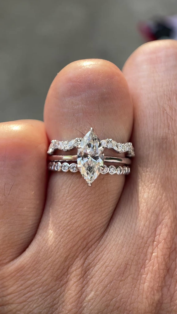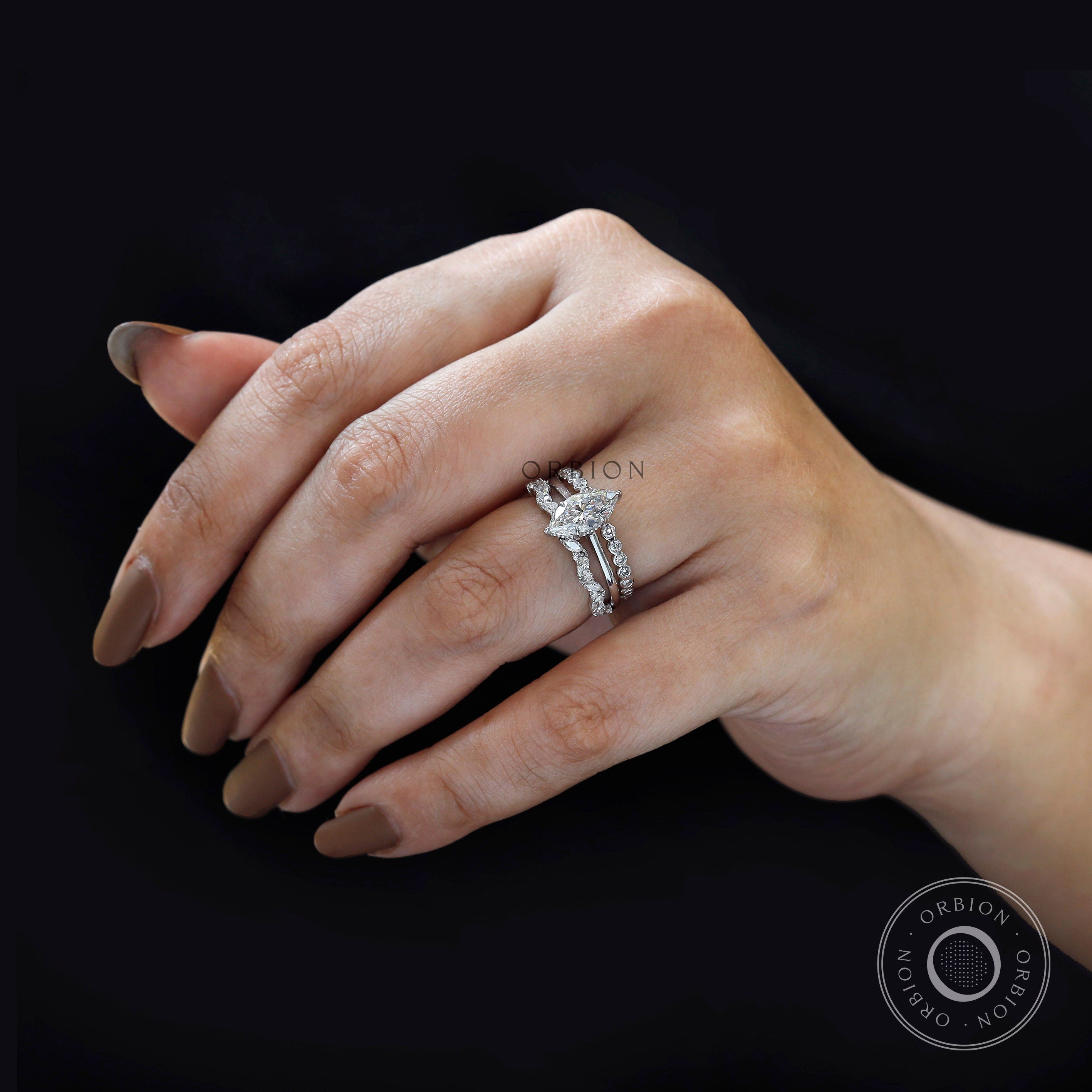 Marquise Lab Grown Diamond Engagement Trio Ring Set IGI Certified 14k White Gold Bridal Ring Set Solitaire Ring With Stacking Bands