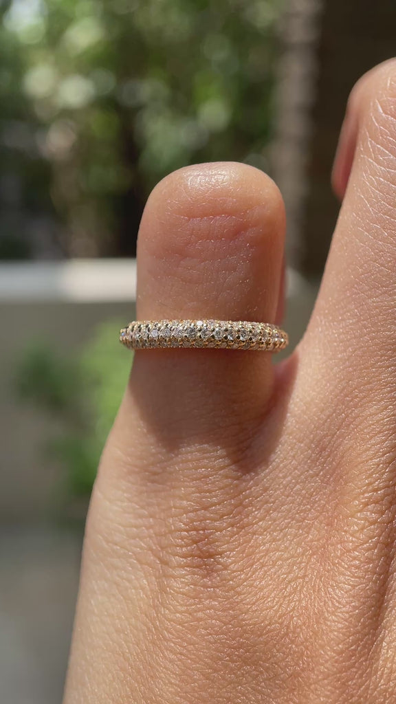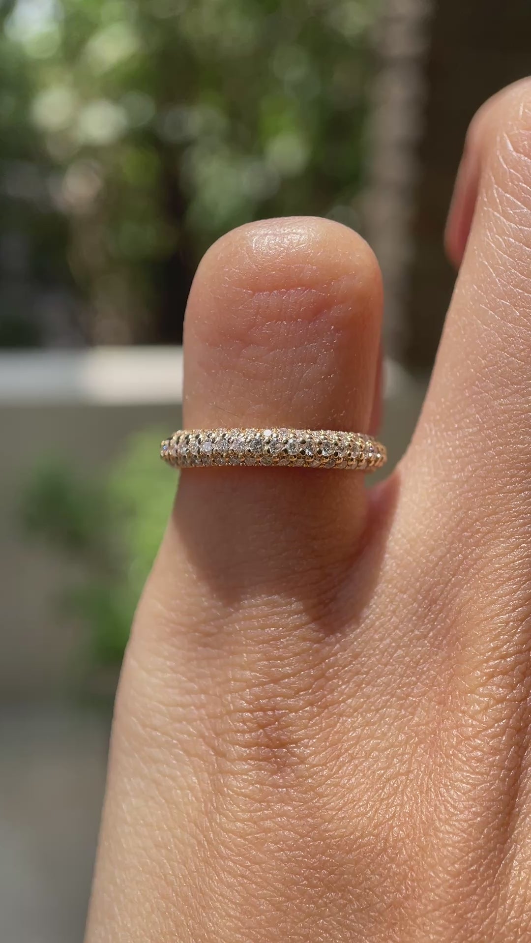 3 Row Full Eternity Wedding Band, Stackable Diamond Wedding Band, Three Row Diamond Band, Anniversary Ring, Elegant Stacking Ring