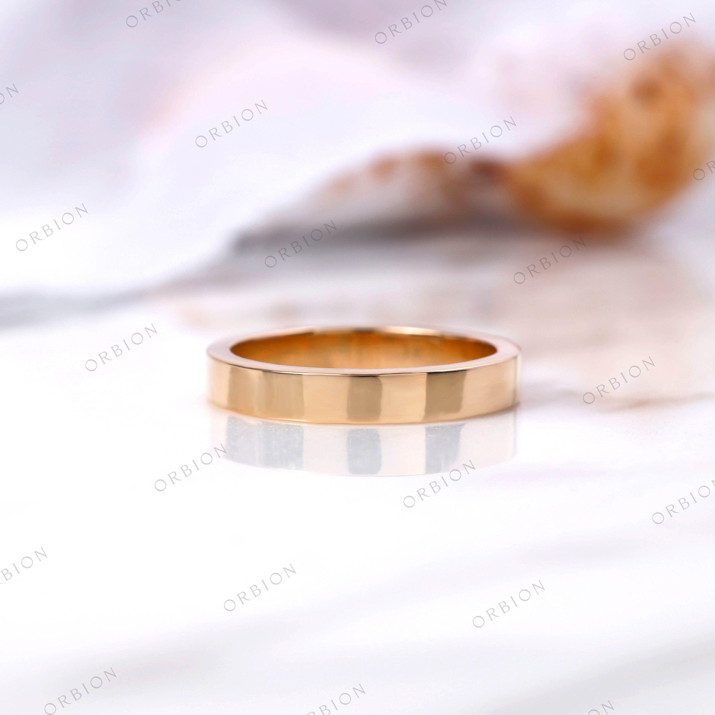 4 MM Wide Plain Gold Band, Flat Gold Band Ring, Simple Band Ring Women, Comfort Fit Wedding Band, Yellow Gold Band, Gold Band For Men