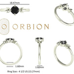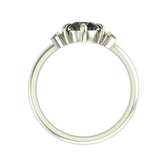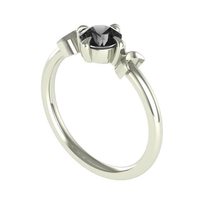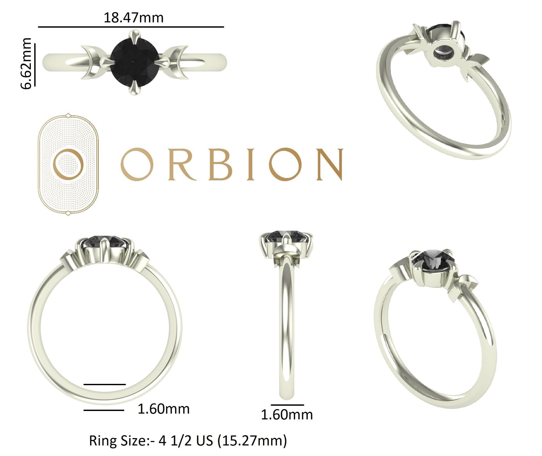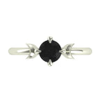 5 MM Brilliant Cut Round Black Moissanite Celestial Style Ring, 10k Solid White Gold Vintage Style Ring, Dainty Black Stone Ring