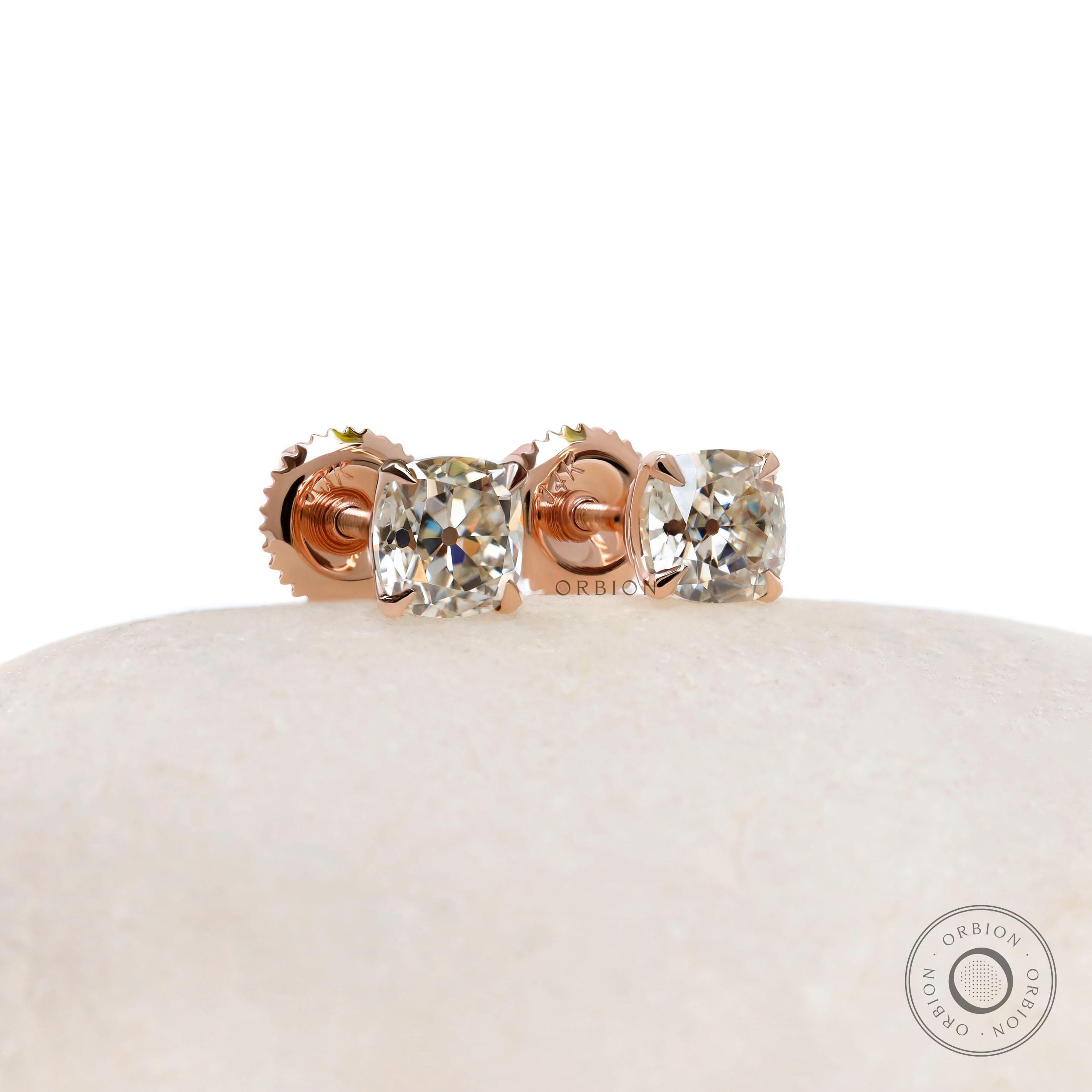 5 MM Old Mine Cut Cushion Moissanite Earrings, 14k Solid Rose Gold Ear Studs, Vintage Style Earrings, Dainty Earrings For Gifting Purpose