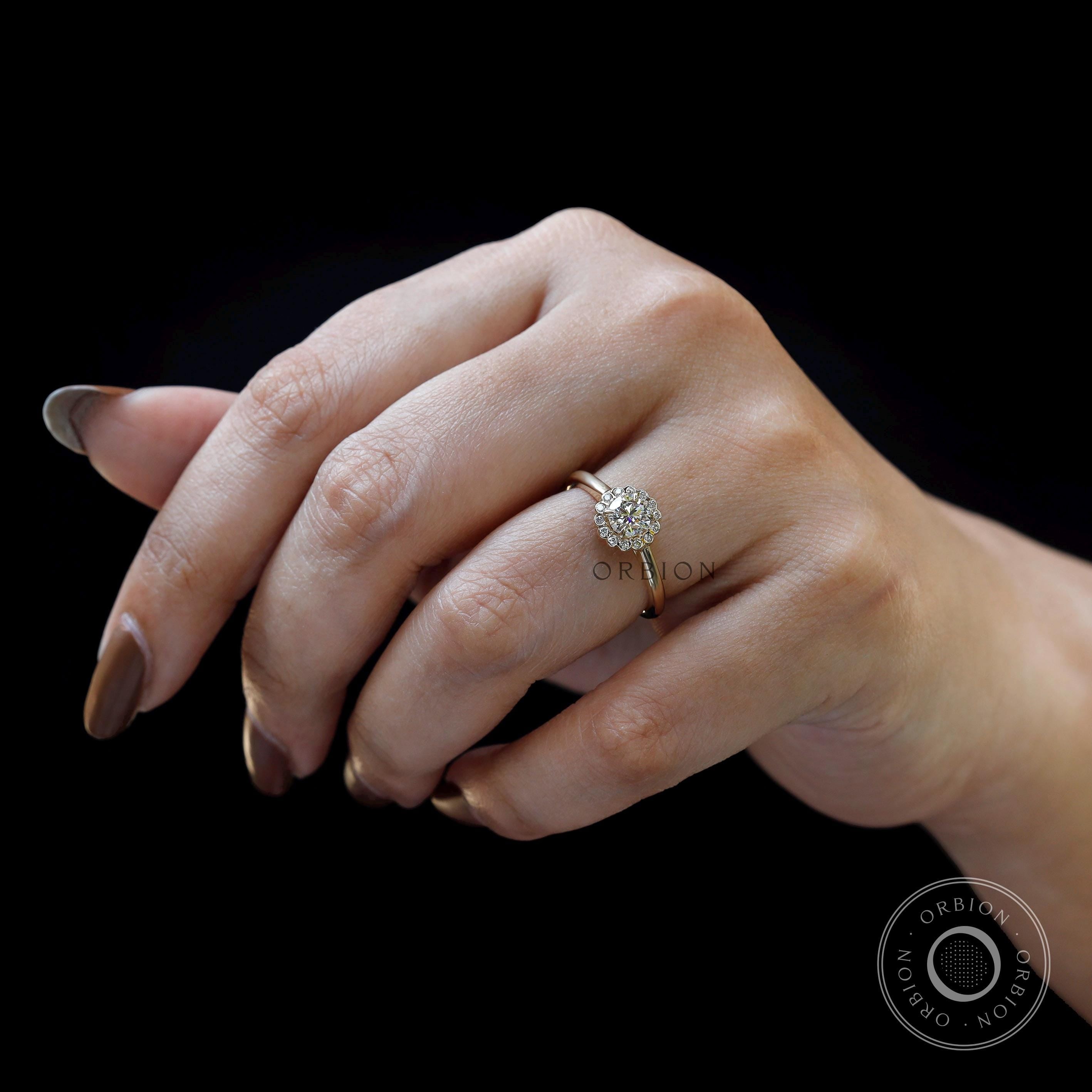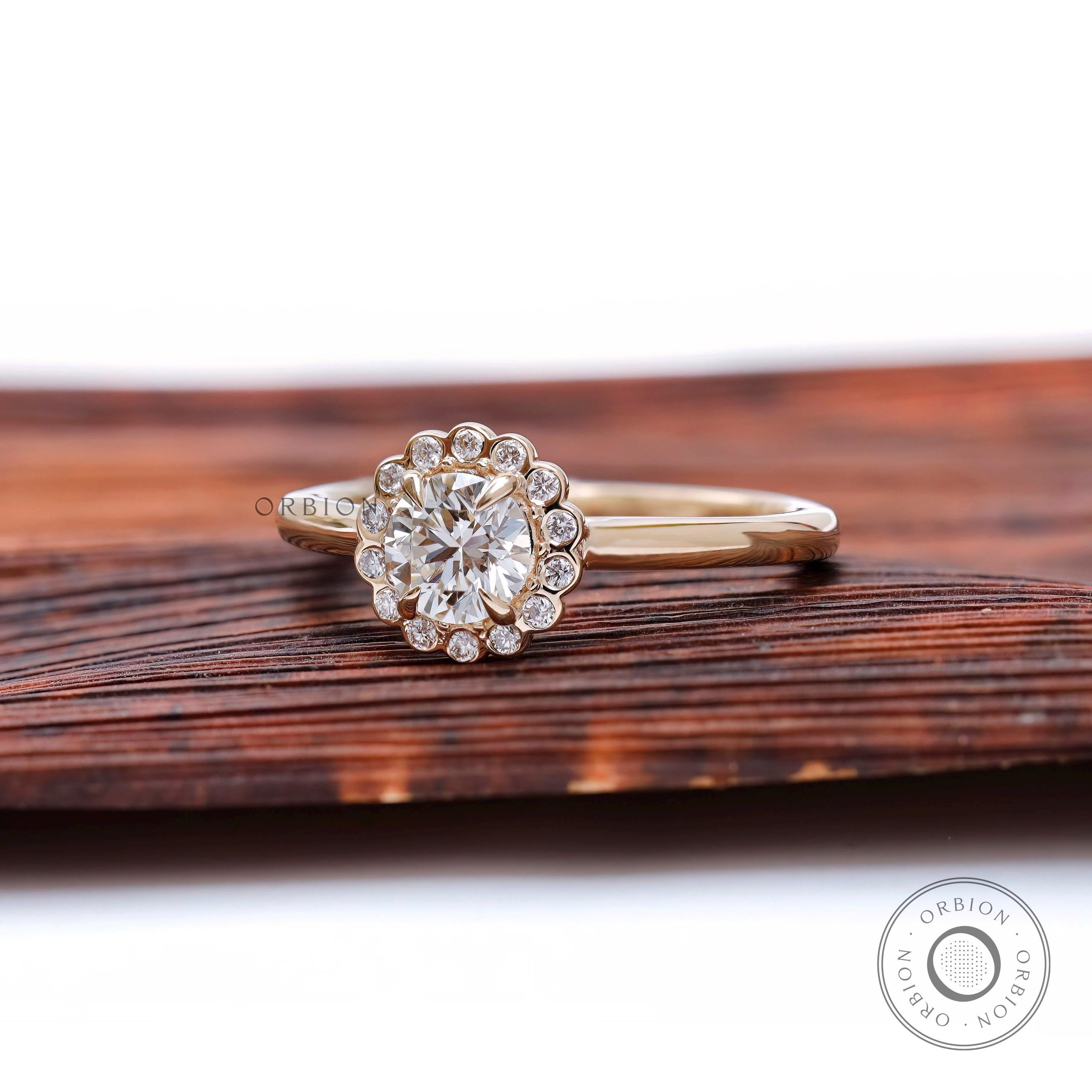 5MM Round Lab Grown Diamond 18K Yellow Gold Engagement Ring | Unique Snowdrift 4 Prong Diamond Cluster Promise Ring | Wedding Ring for Her