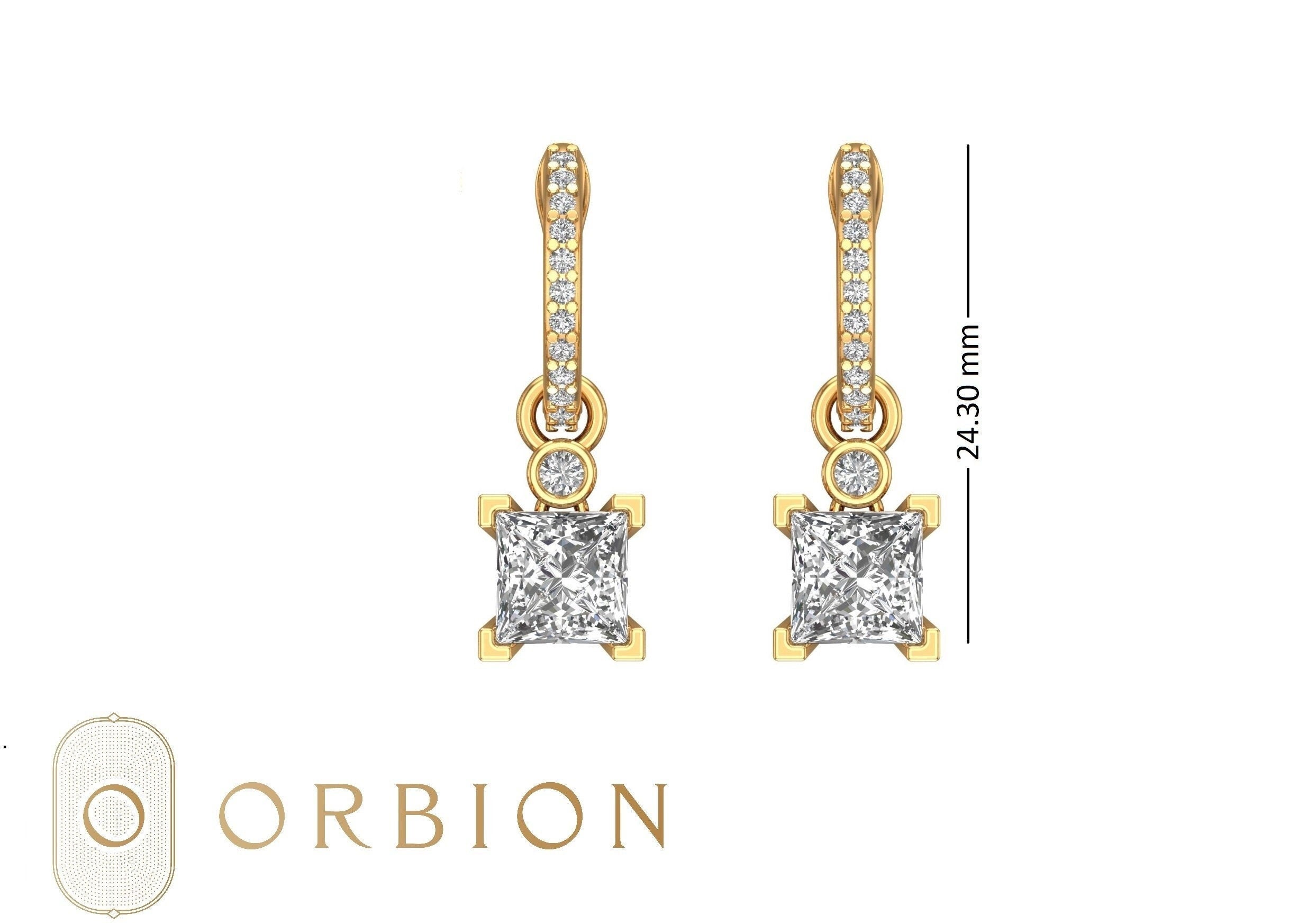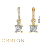 6MM Princess Cut English Lock Earrings, 14K Yellow Gold Earrings, Hoop Earrings, Drop Earrings, Moissanite Earrings, Gold Earrings for Women
