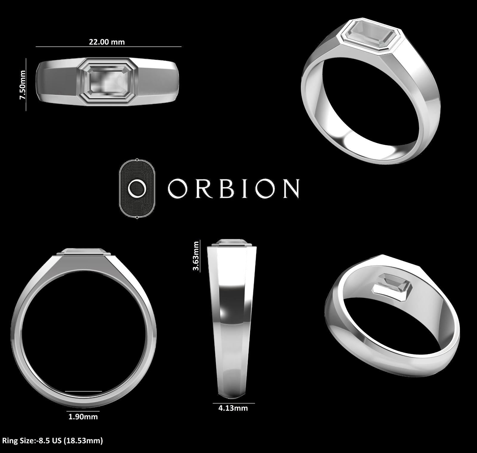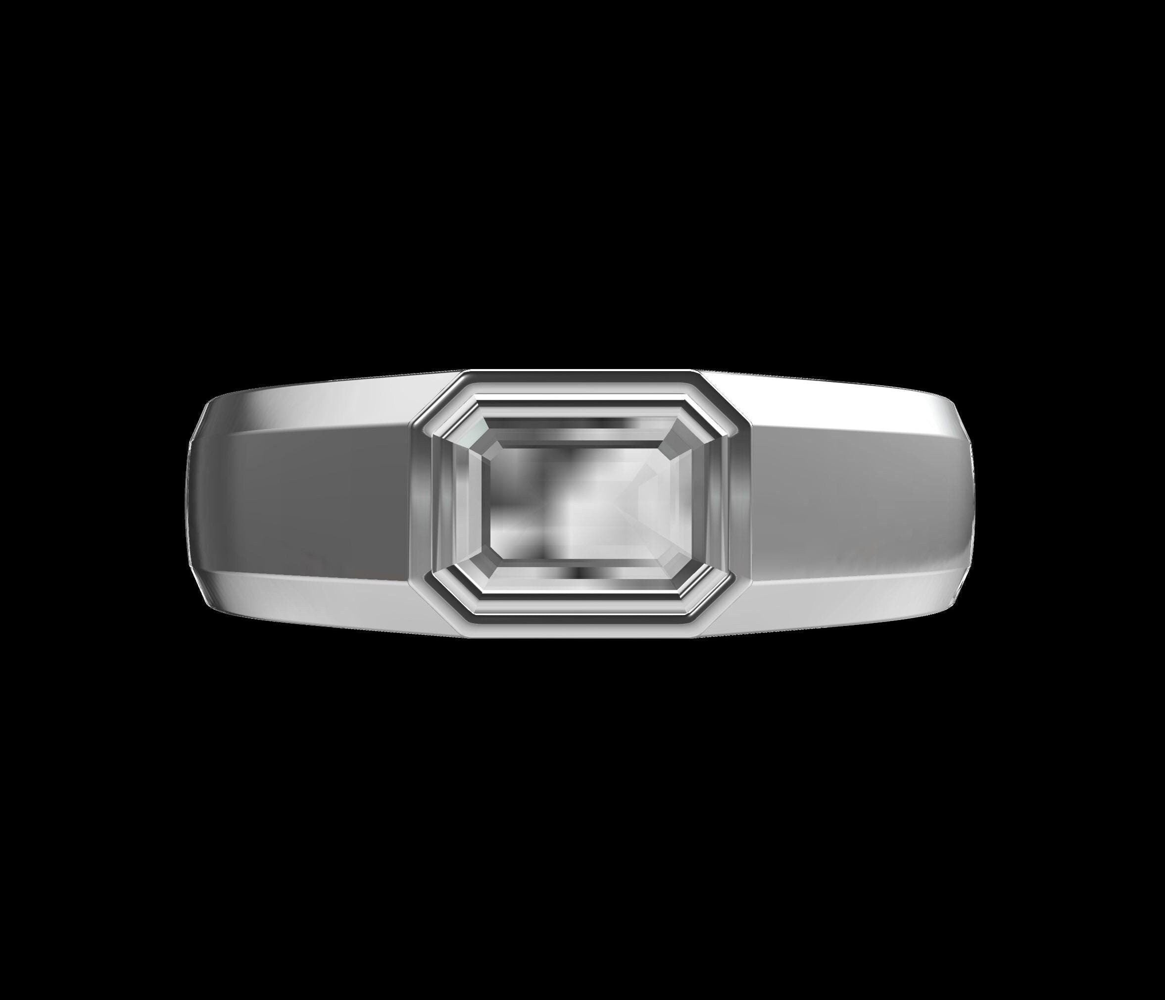 Emerald Step Cut Lab Diamond Signet Ring, Unique East West Setting Men's Ring in 14k White Gold, Mens Diamond Ring