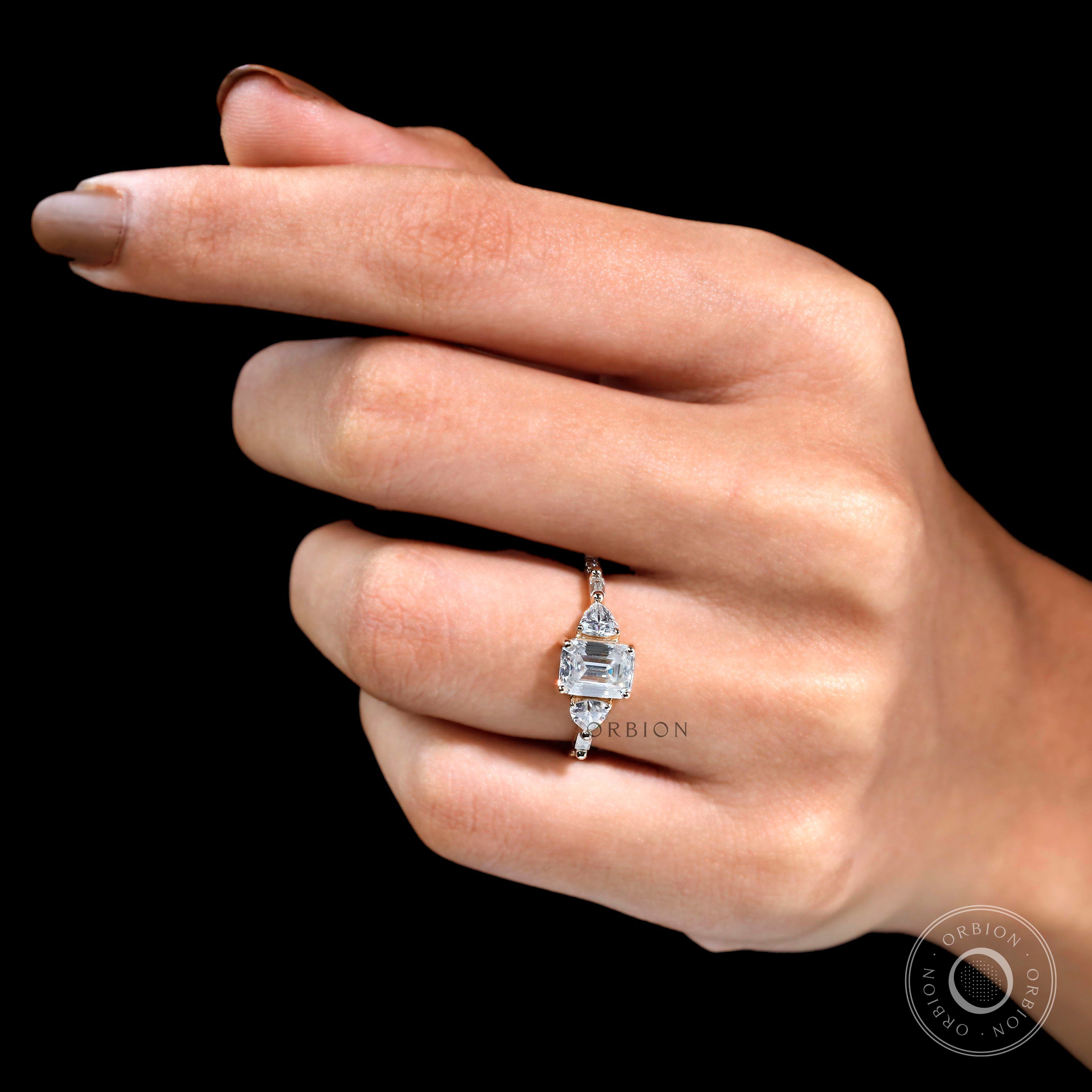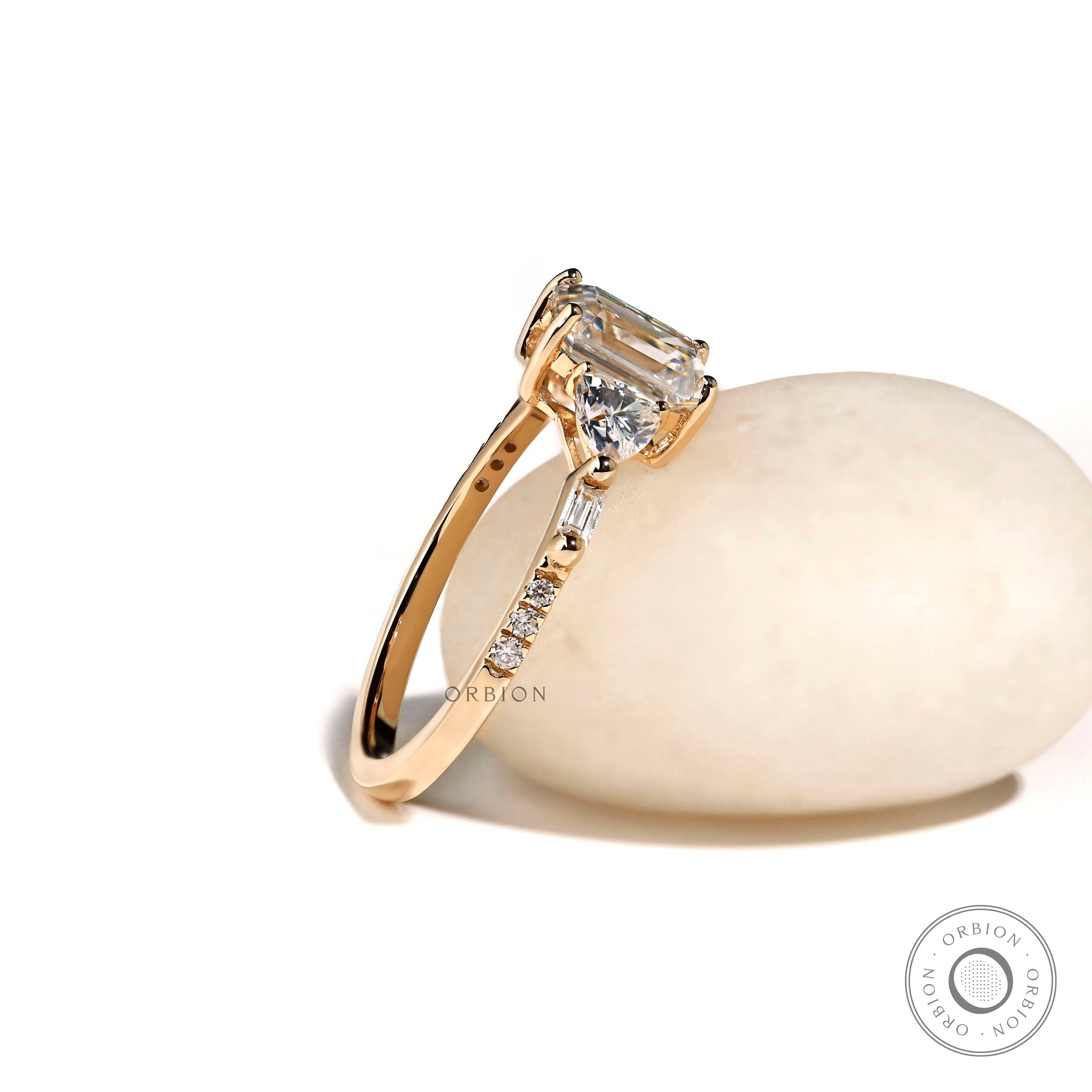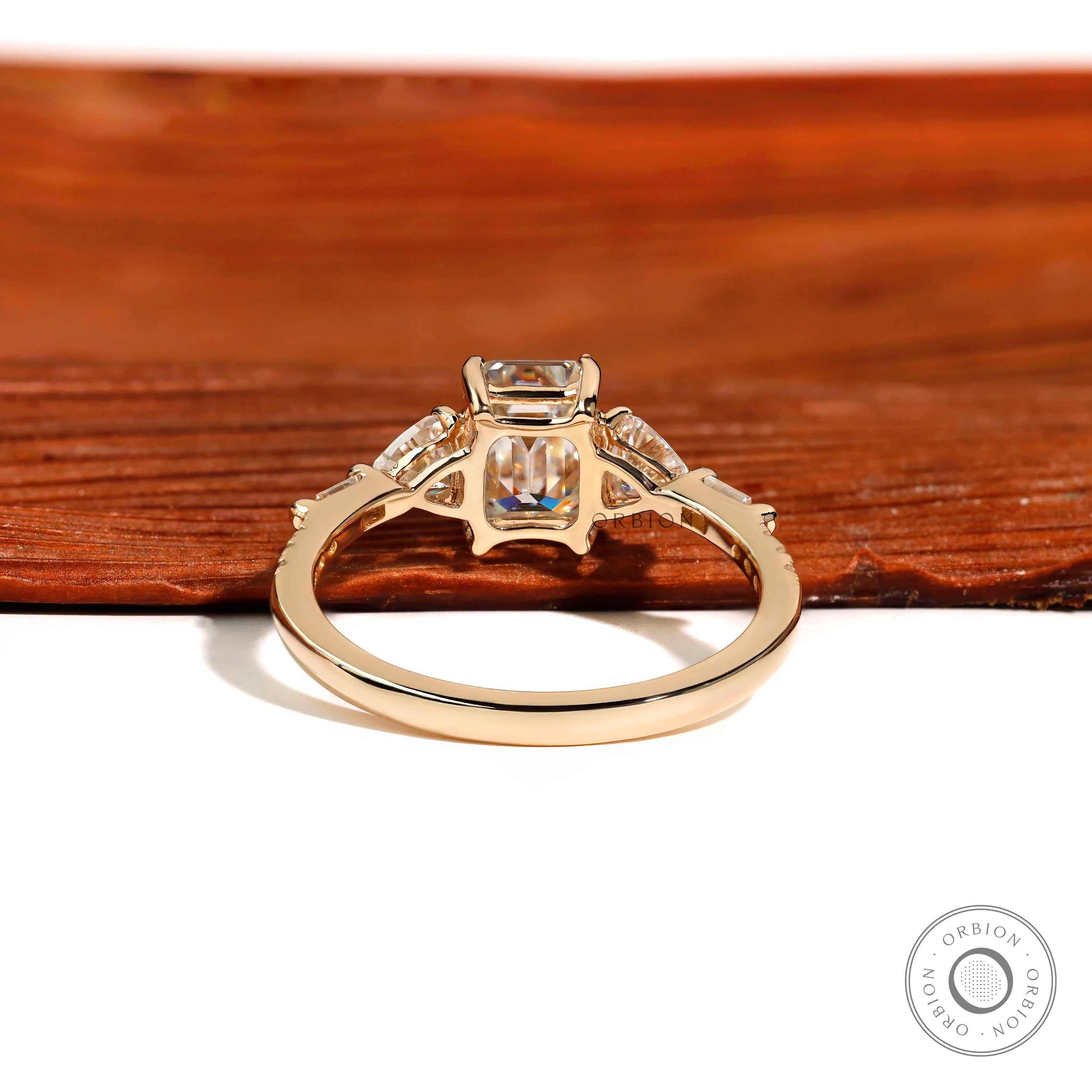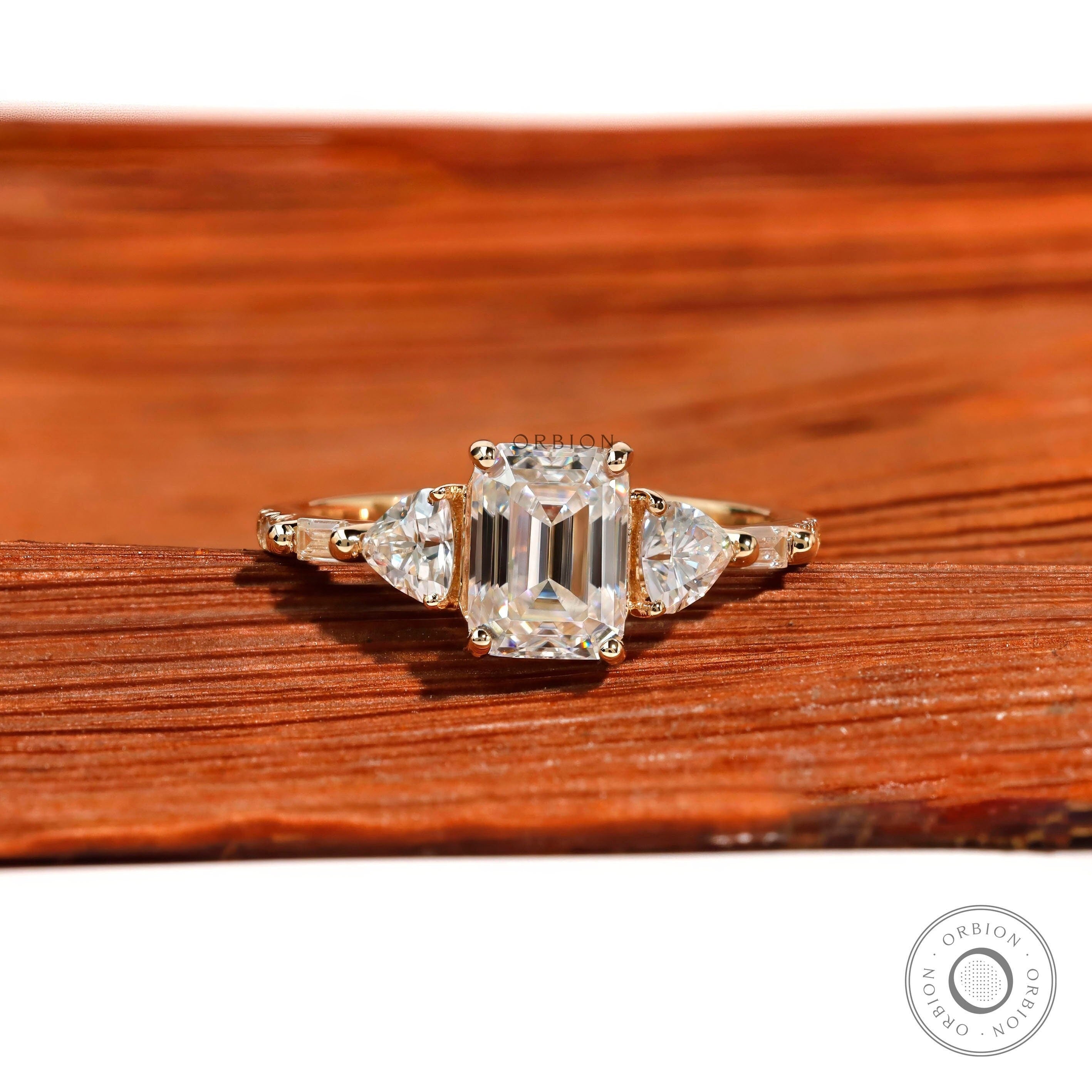 Three Stone Moissanite Engagement Ring Emerald Cut Moissanite Wedding Ring Solitaire Ring With Side Stones 14k Yellow Gold Multi Stone Ring