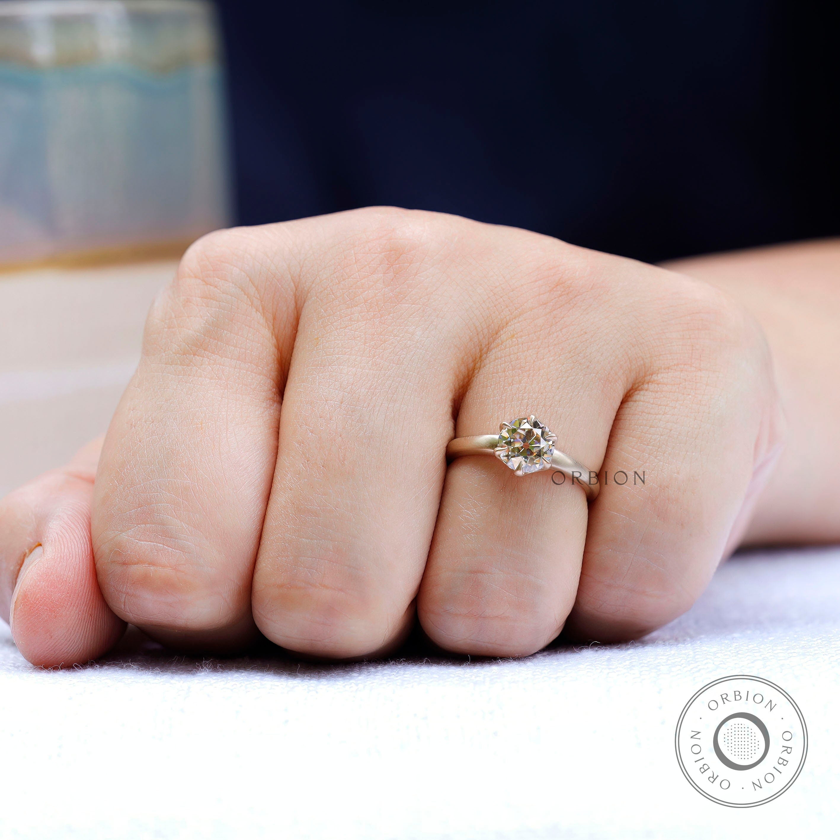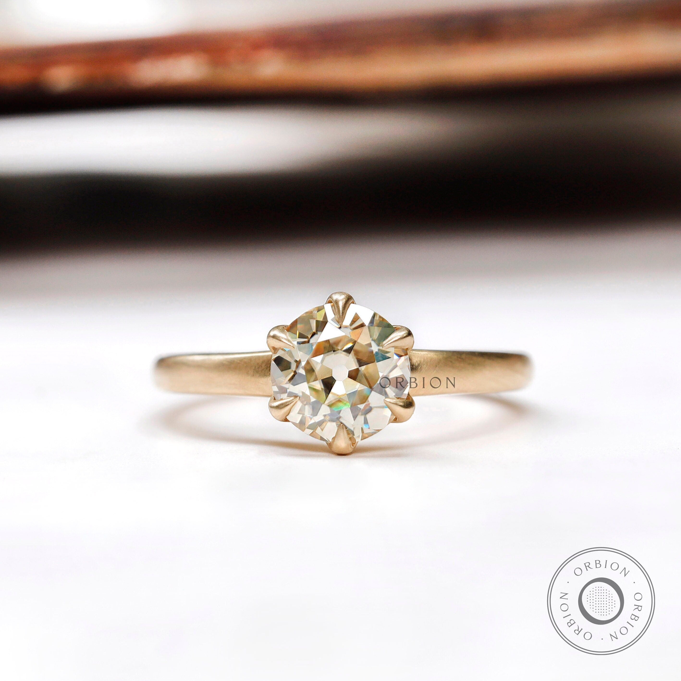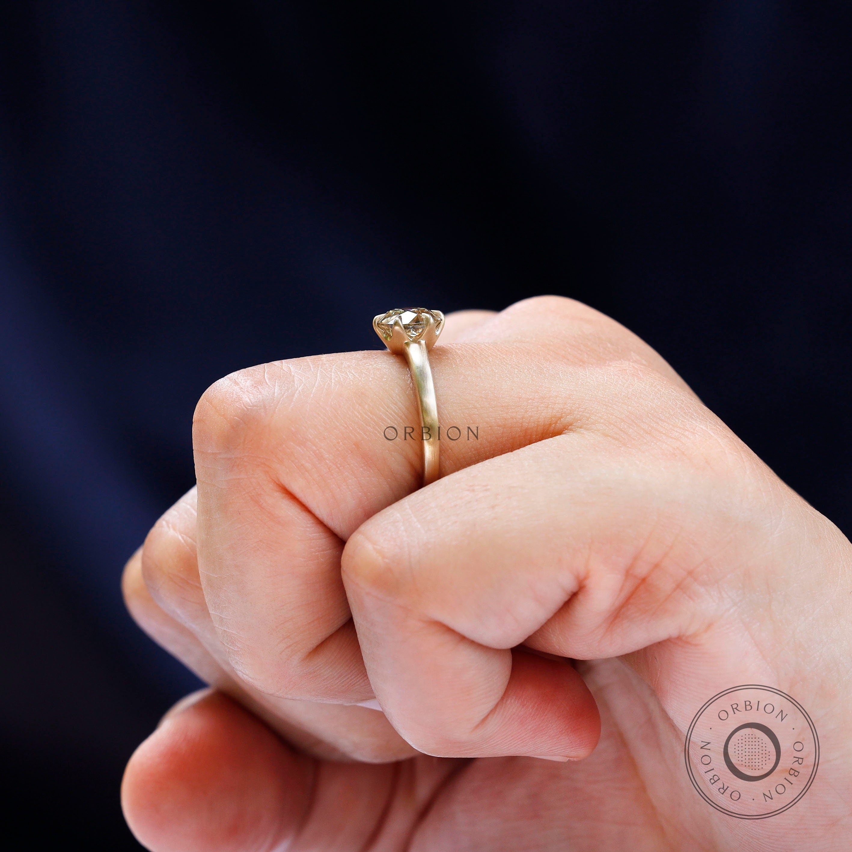 Old European Cut Light Champagne Moissanite Ring, Brushed Matte Finish Gold Ring, Thick Band Ring, Chunky Ring Women, Vintage Engagement Ring, Moissanite Ring Gold, Old European Cut, 14k Yellow Gold Ring, Handmade Jewelry, Bridal Ring, Champagne Moissanite, Round Solitaire Ring