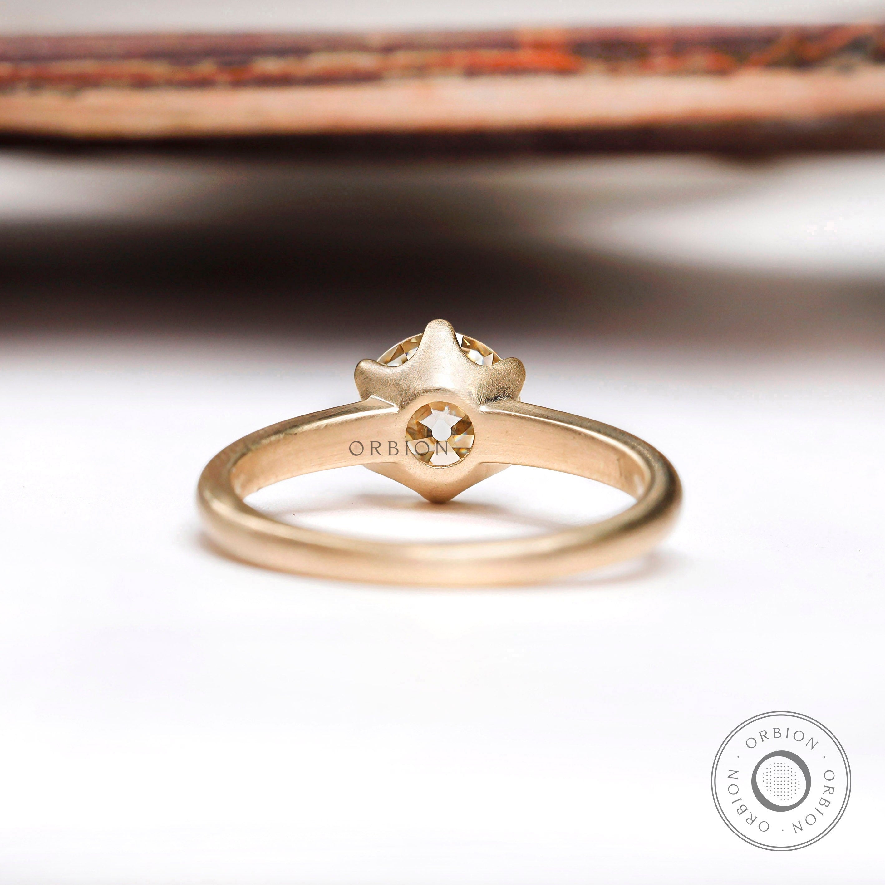 OEC Light Champagne Moissanite Engagement Ring 10k Yellow Gold Brushed Matte Finish Georgian Style Vintage Solitaire Promise Chunky Ring