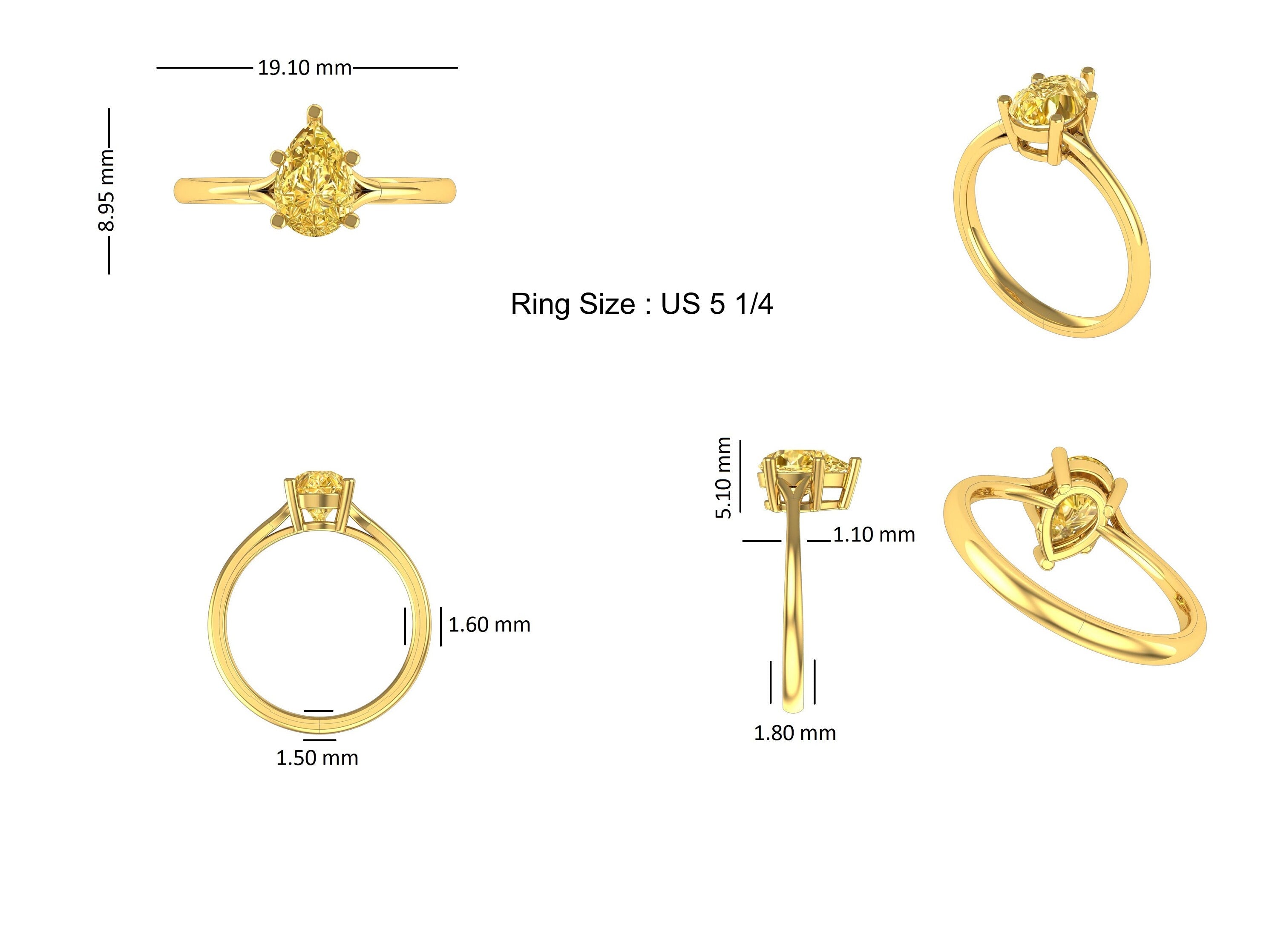 Champagne Pear Cut Moissanite Ring, 14K Yellow Gold Engagement Ring, Dainty Ring Gold, Minimalist Ring, Anniversary Ring for Her