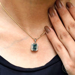 Blue Green Emerald Cut Moissanite Double Bezel Pendant, Statement Pendant, Emerald Moissanite Pendant, Pendant for her, Β Necklace pendant, Custom Pendant, Solid Gold Pendant, Chunky Pendant, Glossy Finish Statement Pendant, Gift for mom, Anniversary gift, Gift for her