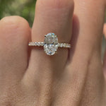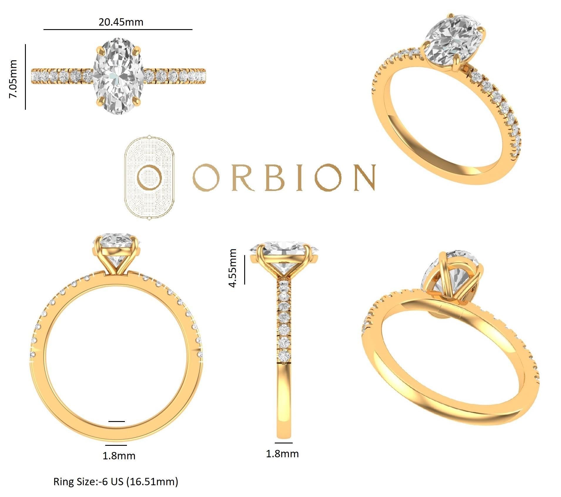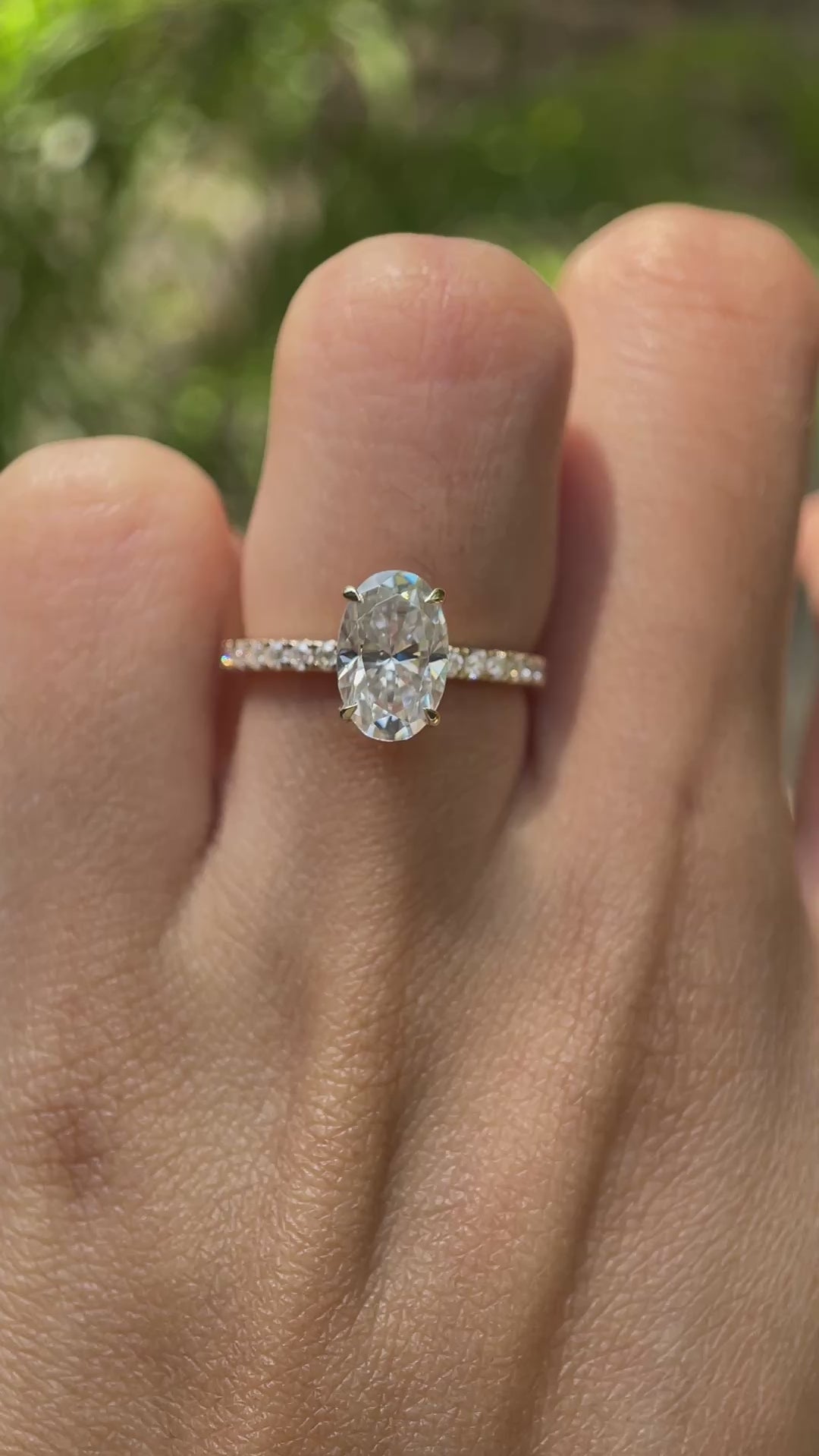 Oval Brilliant Cut Moissanite Engagement Ring, Half Eternity Wedding Band For Women, Oval Solitaire Promise Ring, 14K Solid Yellow Gold Ring