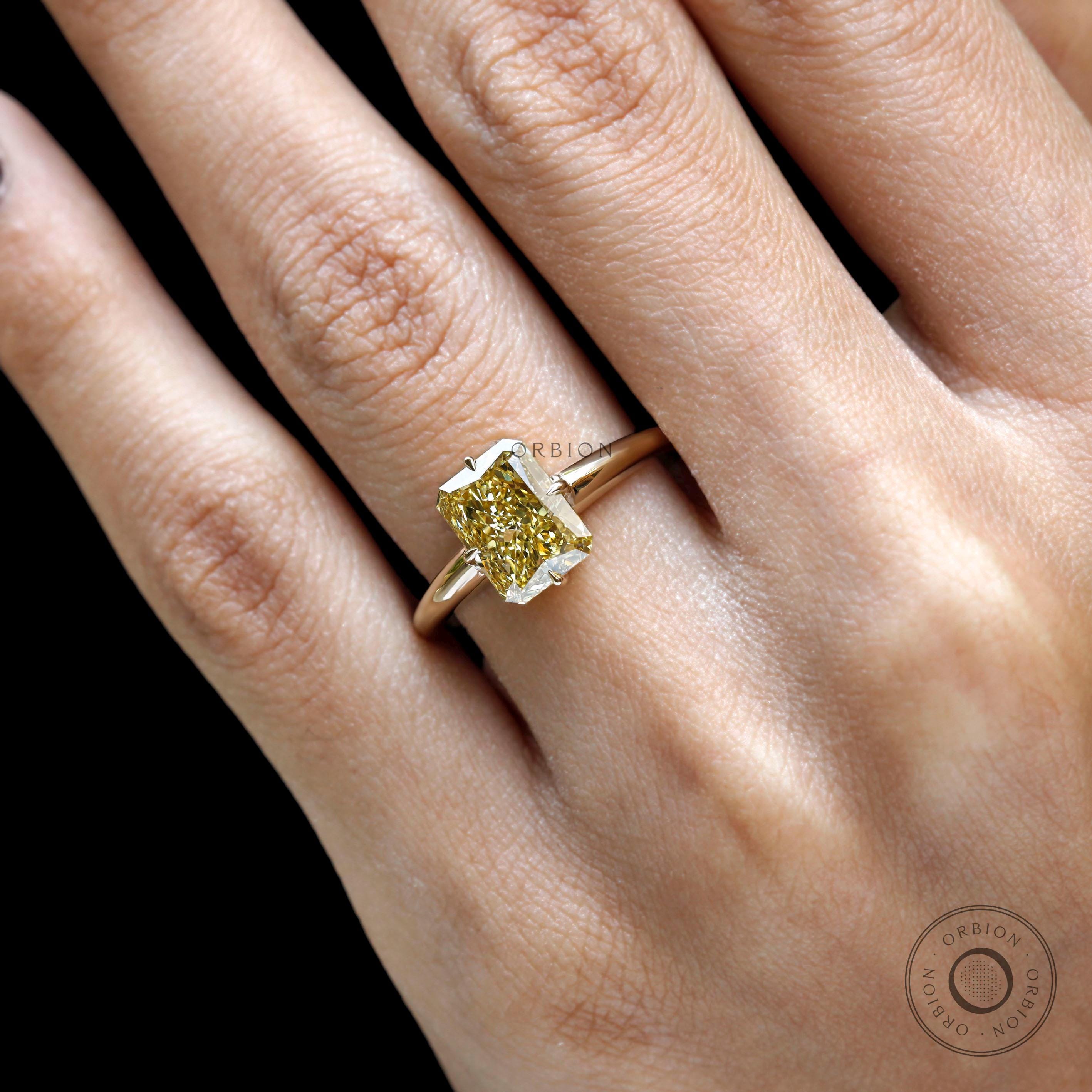 Yellow Diamond Engagement Ring, Yellow Lab Diamond Ring, Radiant Cut Yellow Diamond Ring, Compass Setting Ring, Yellow Stone Ring, Yellow Gemstone Ring, 10k/14k/18k Solid Yellow Gold Ring, Fancy Color Stone Ring, Statement Ring For Women, Unique Wedding Ring.