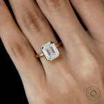 Emerald Cut Moissanite Hidden Halo Bezel Engagement Ring in 18K Yellow Gold Step Cut Solitaire Promise Wedding Anniversary Ring For Women