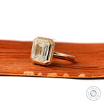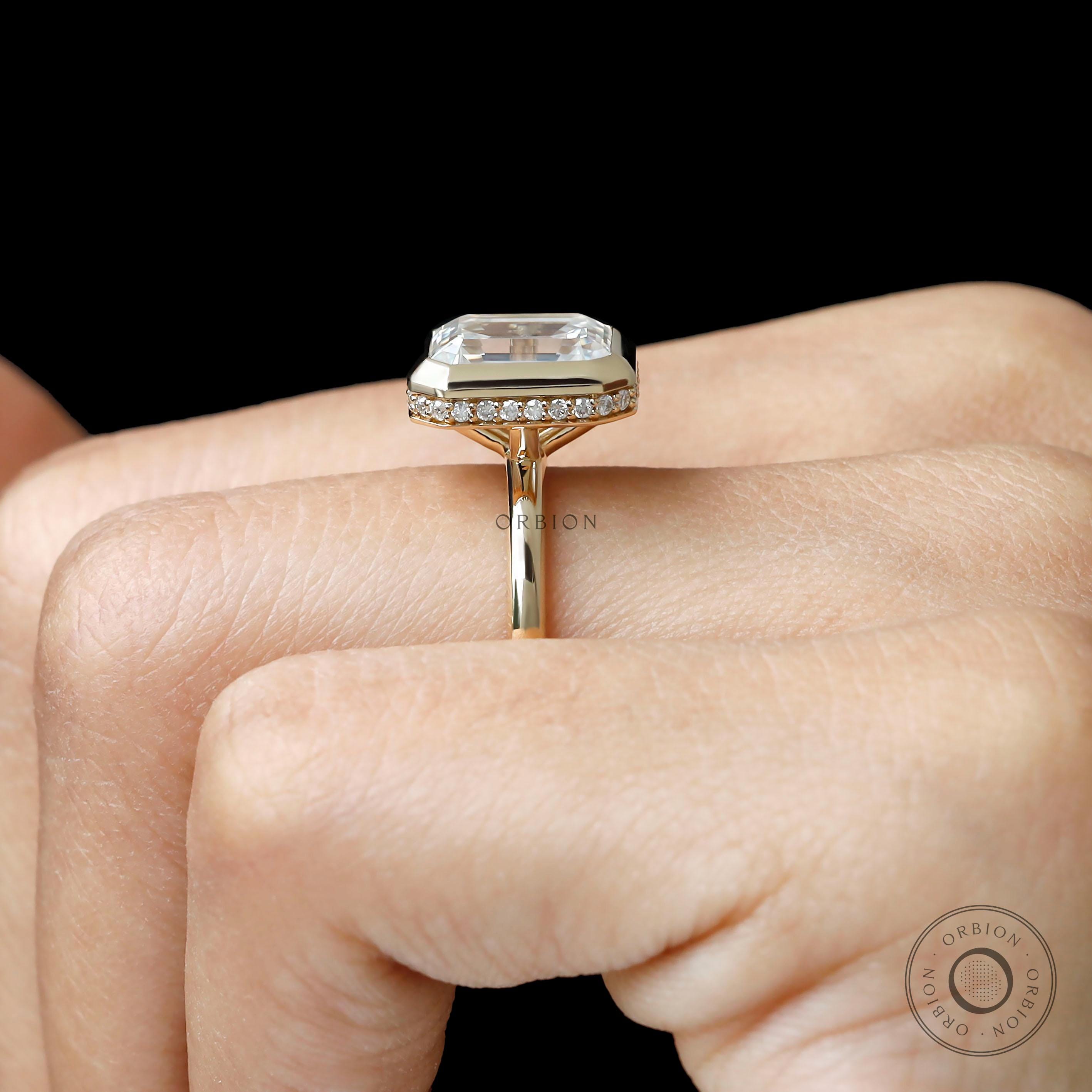 Emerald Cut Colorless Moissanite Engagement Ring, Emerald Cut Bezel Set Ring, Solid Yellow Gold Solitaire Moissanite Ring, Hidden Halo Wedding Ring, Unique Promise Ring For Her, Right Hand Ring, Bridal Ring, Anniversary Ring For Women, Bridesmaid Gift, Gift For Wife, 1 Year Anniversary Gift.
