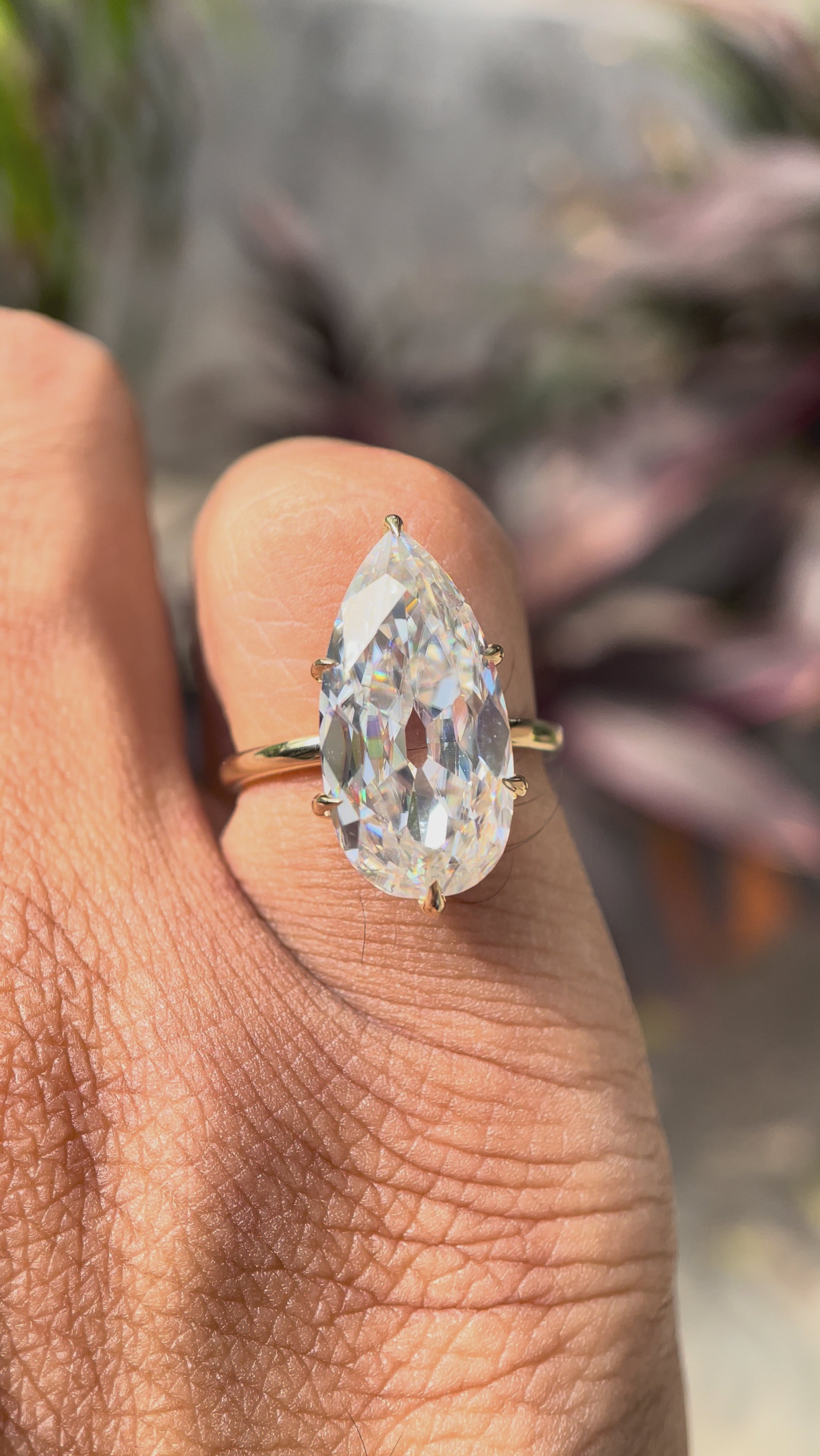 6 Ct Antique Large Pear Old Mine Cut Solitaire Moissanite Engagement Ring Teardrop Wedding Ring Big Moissanite Vintage Style Pear Cut Ring