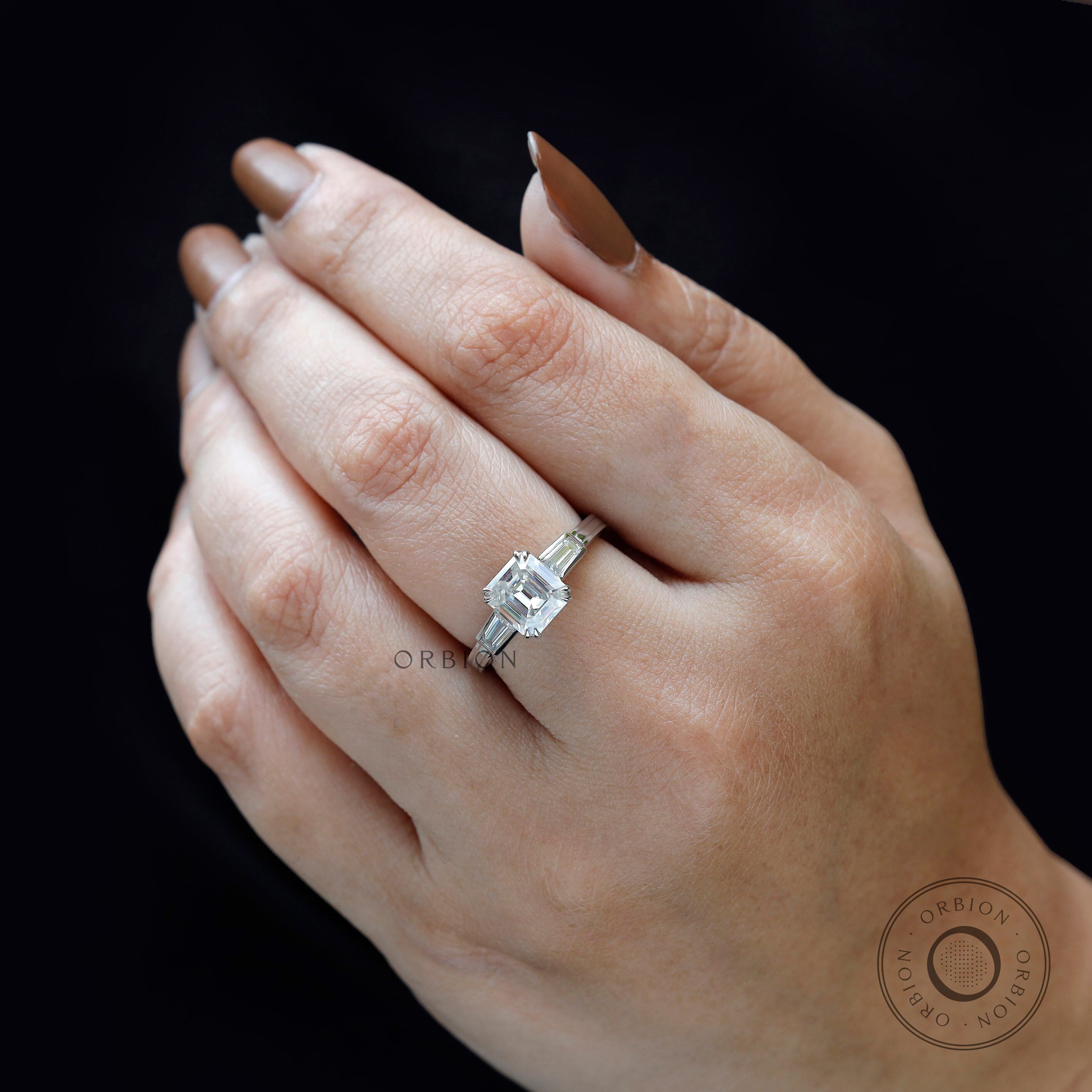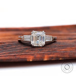 Old Mine Asscher Cut Three Stone Engagement Ring, 14K Solid Gold Wedding Ring, Asscher Cut Moissanite Trilogy Ring for Women, Tapered Baguette Side Stones, Old Cut Rings,