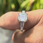Asscher Three Stone Ring, Old Cut Three Stone Ring, Three Stone Moissanite Ring, Triology Engagement Ring Moissanite, 14k White Gold Ring