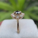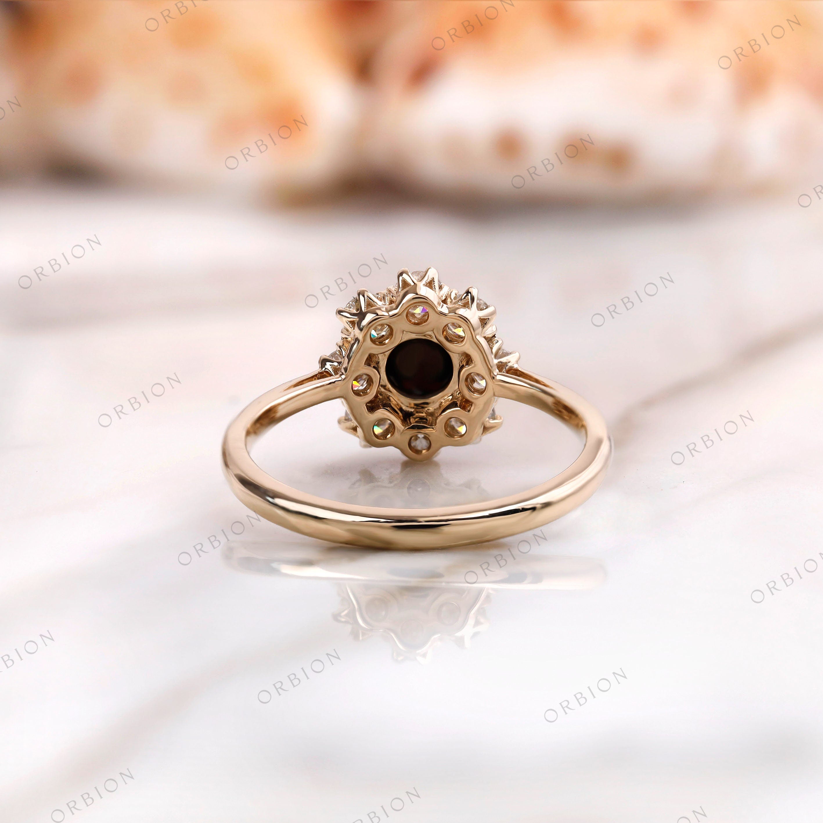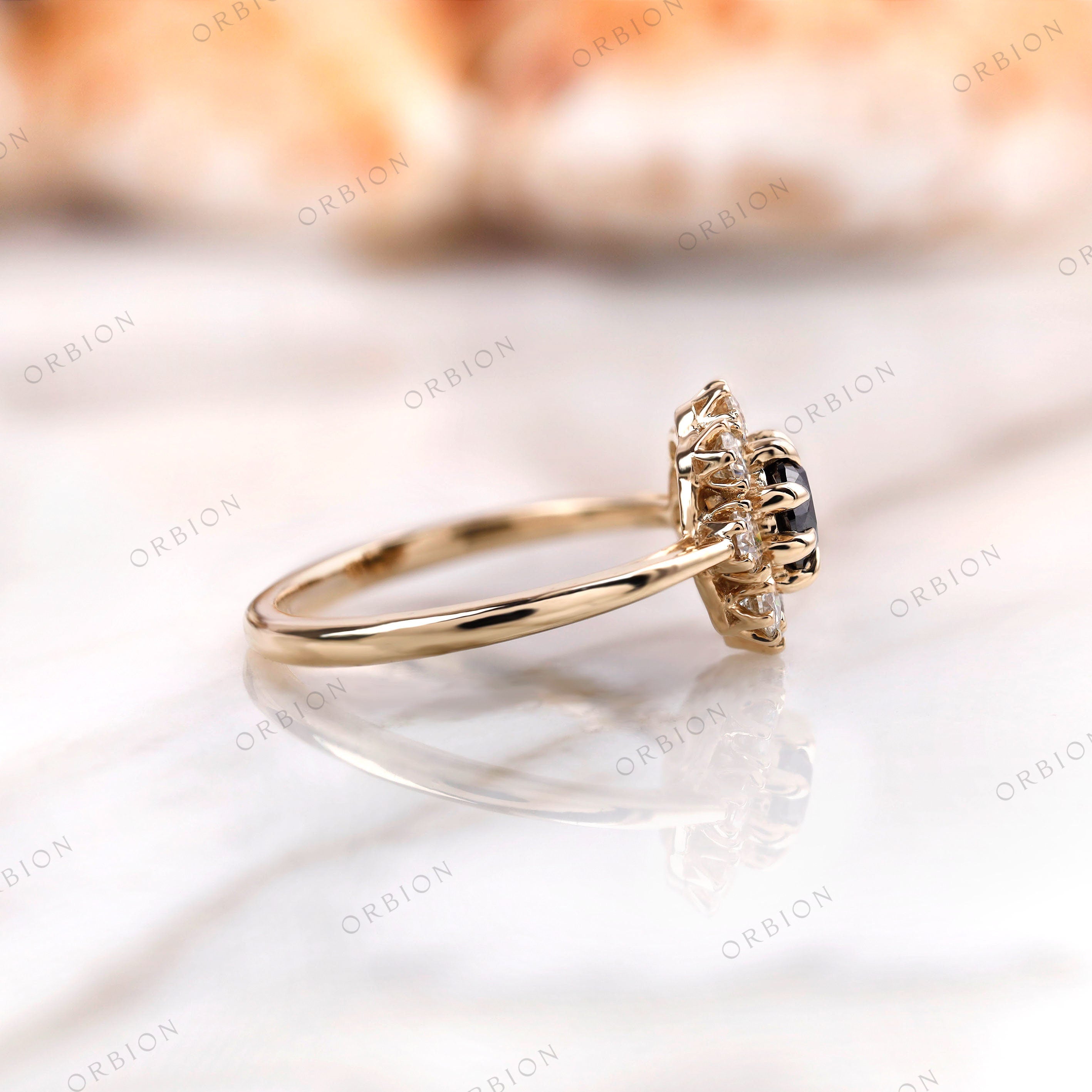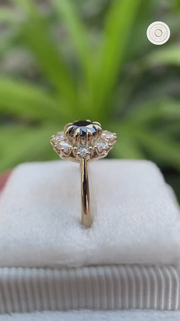 Vintage engagement ring, Black & white moissanite ring, Cluster wedding ring, 10k/14k/18k solid gold ring, Old european cut, Vintage jewelry, OEC wedding ring, Estate jewelry, Antique ring, Handmade jewelry, Unique engagement ring, Georgian ring, Old cut moissanite, Antique-style ring, Black moissanite, Halo ring.