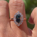 Bold and Beautiful Dark Blue Green Marquise Moissanite Ring - Stunning Rose Gold Cluster Ring for Her, Elegant Rose Gold Engagement Ring