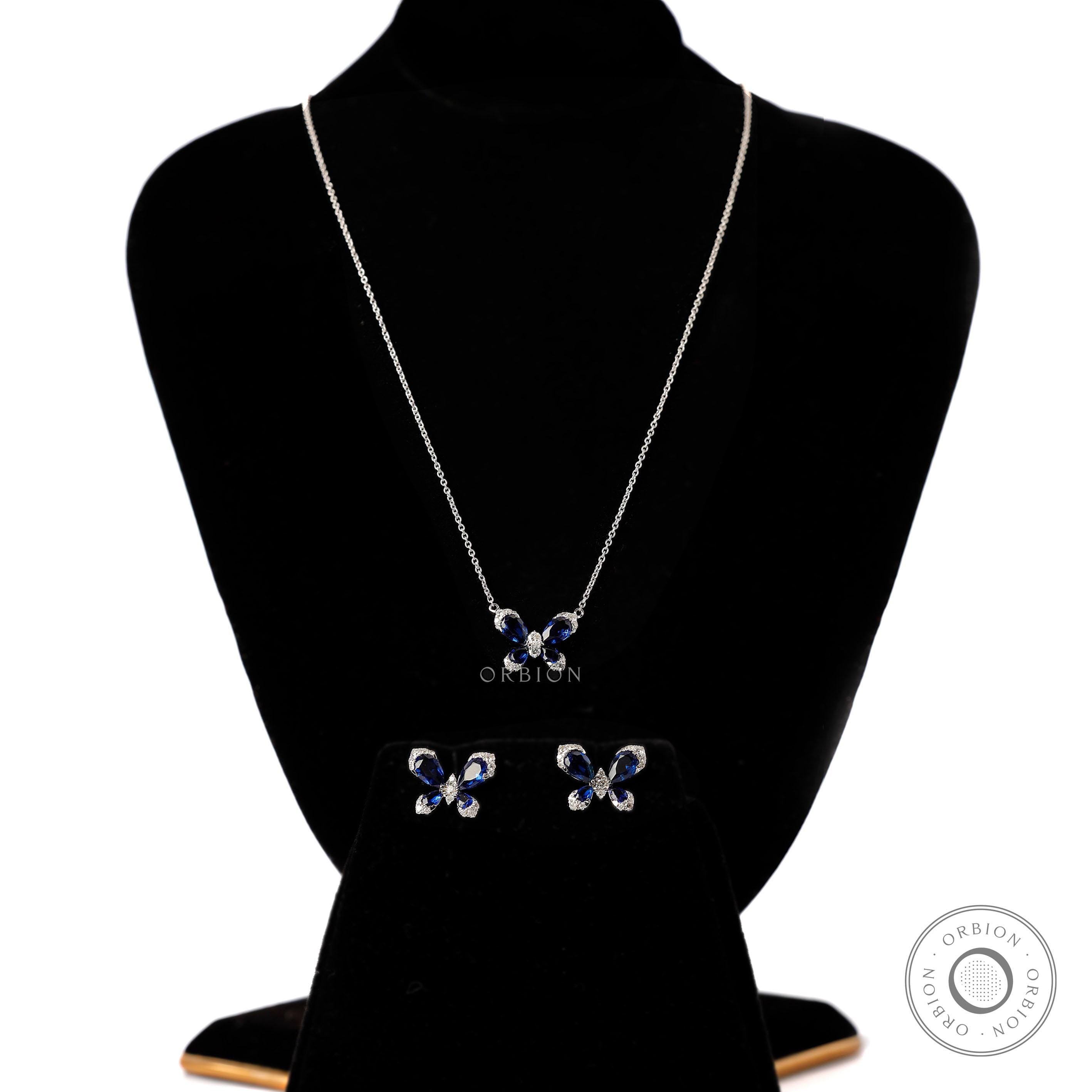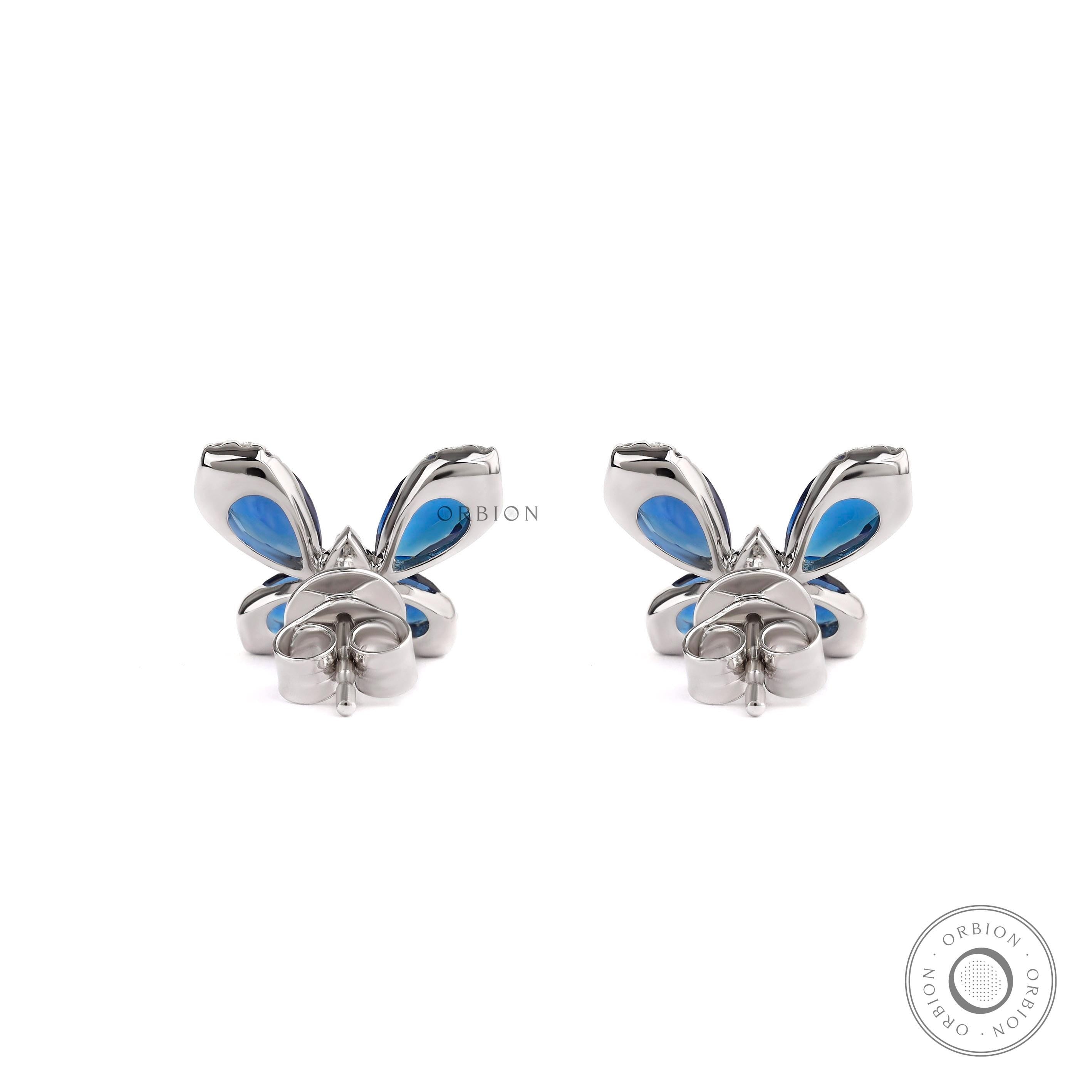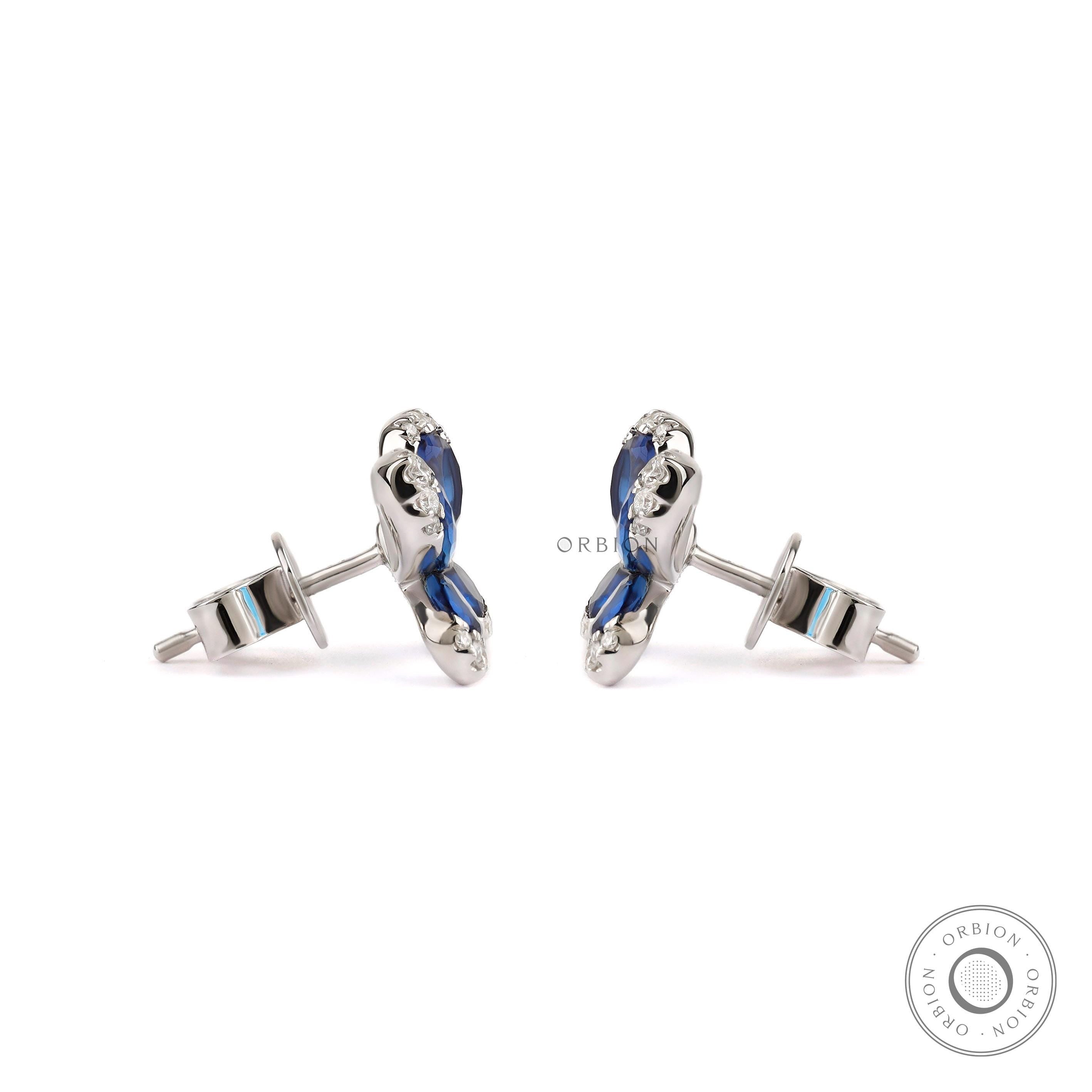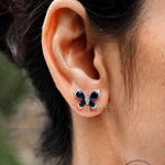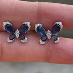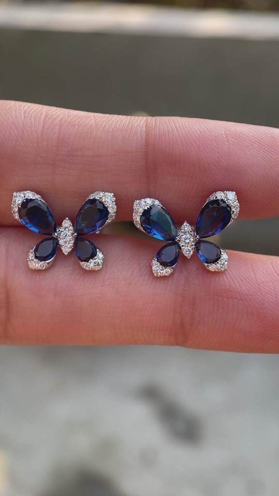 Butterfly Stud Earrings, Blue Sapphire & Lab Grown Diamond Earrings, White Gold Earrings, Push/Screw Back Stud Earrings, Insect Earrings