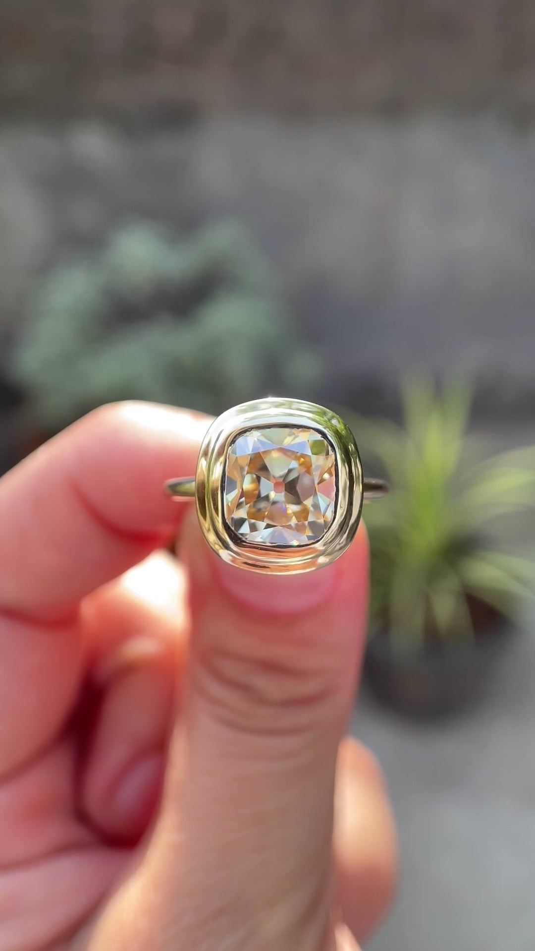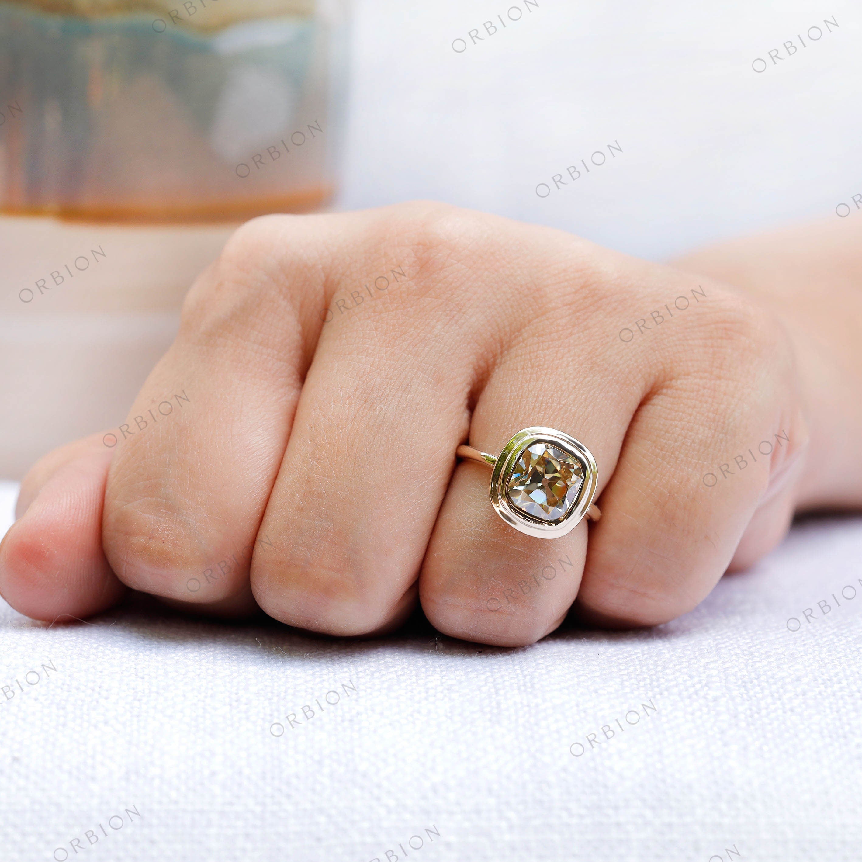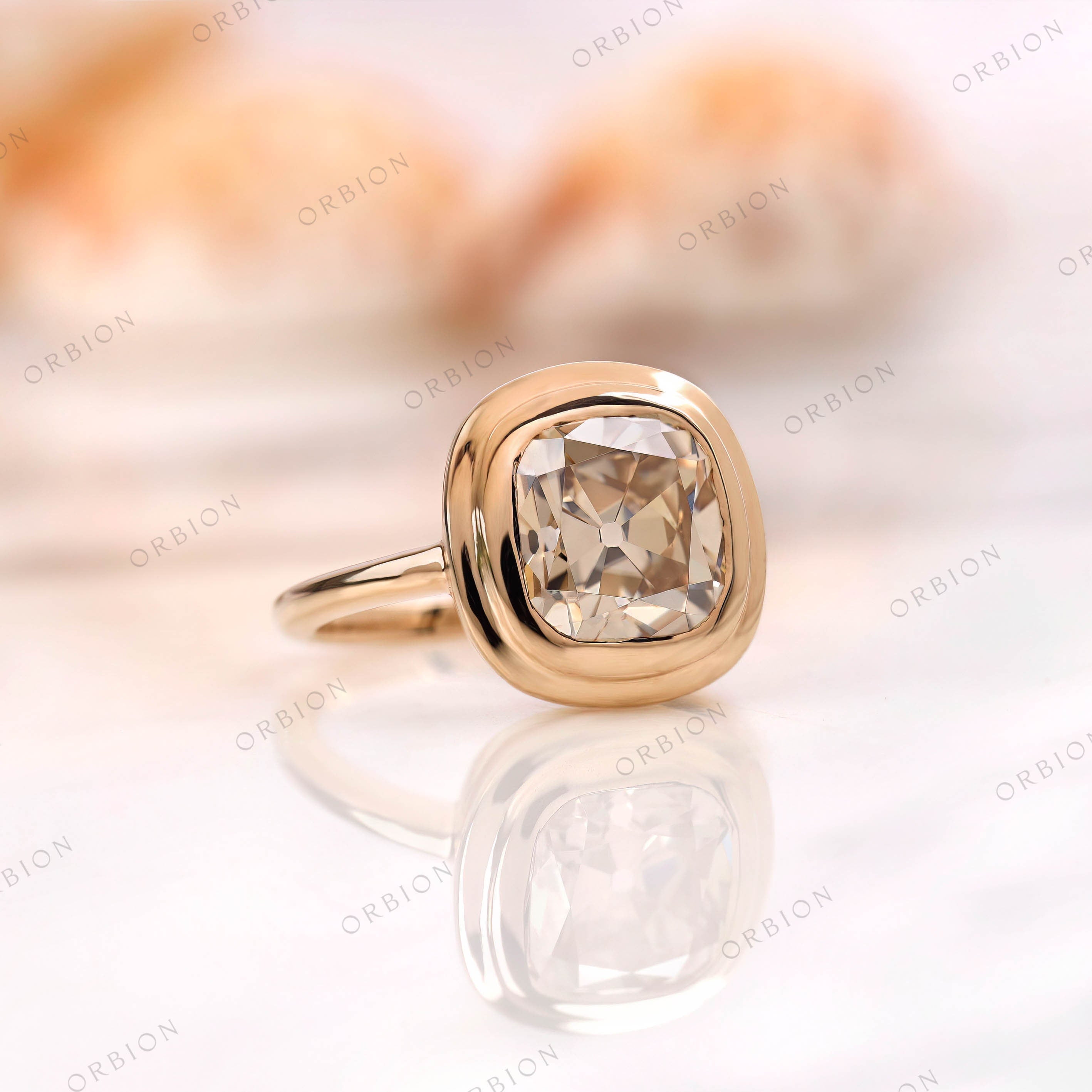 Light Champagne Elongated Cushion Moissanite Ring, Champagne Cushion Cut Ring, Cushion Champagne Ring, 10k/14k/18k Solid Gold Ring, Old Mine Cut Ring, Double Bezel Ring, Vintage Wedding Ring, Estate Ring, Unique Ring For Her, OMC Moissanite, Antique Style Ring, Promise Ring, Proposal Ring, Large Moissanite Ring, Solitaire Champagne Ring, Low Profile Ring, Classic Ring