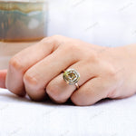 Double Bezel Champagne Moissanite Ring 14k Yellow Gold OMC Elongated Cushion Large Stone Ring Women Color Moissanite Wedding Promise Ring