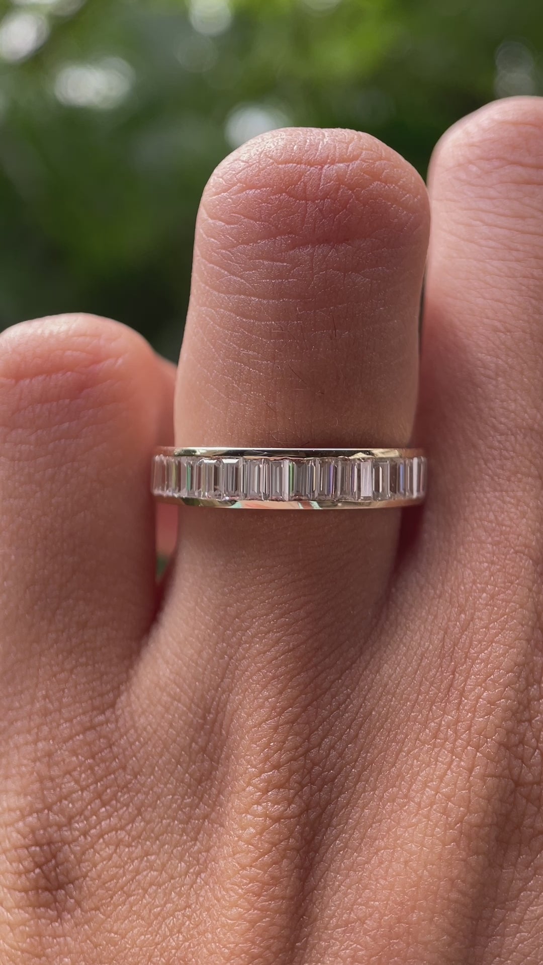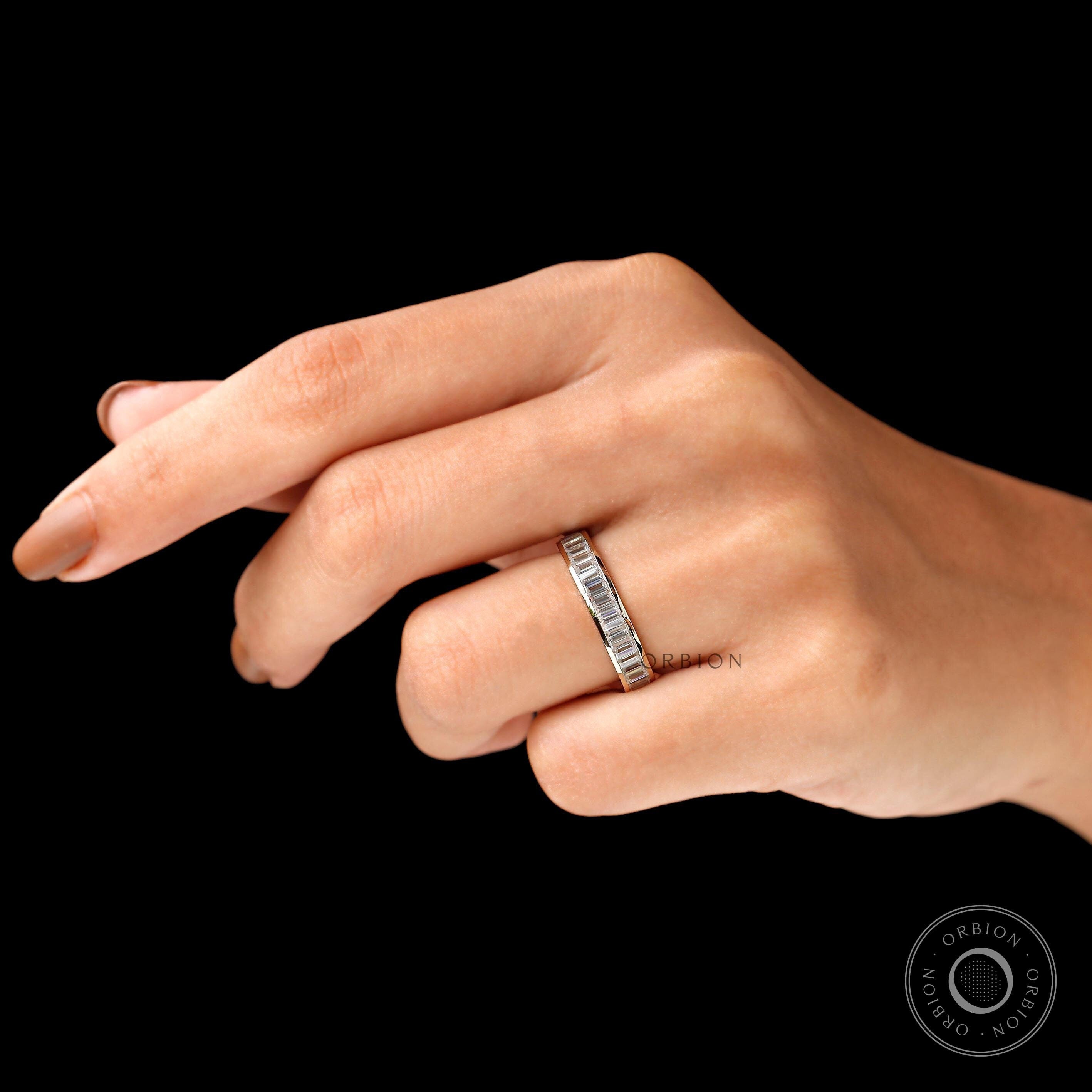 Channel Set Baguette Ring, Vertical Baguette Eternity Ring, Baguette Stacking Band, 3/4 Eternity Ring, 14k Yellow Gold Moissanite Band