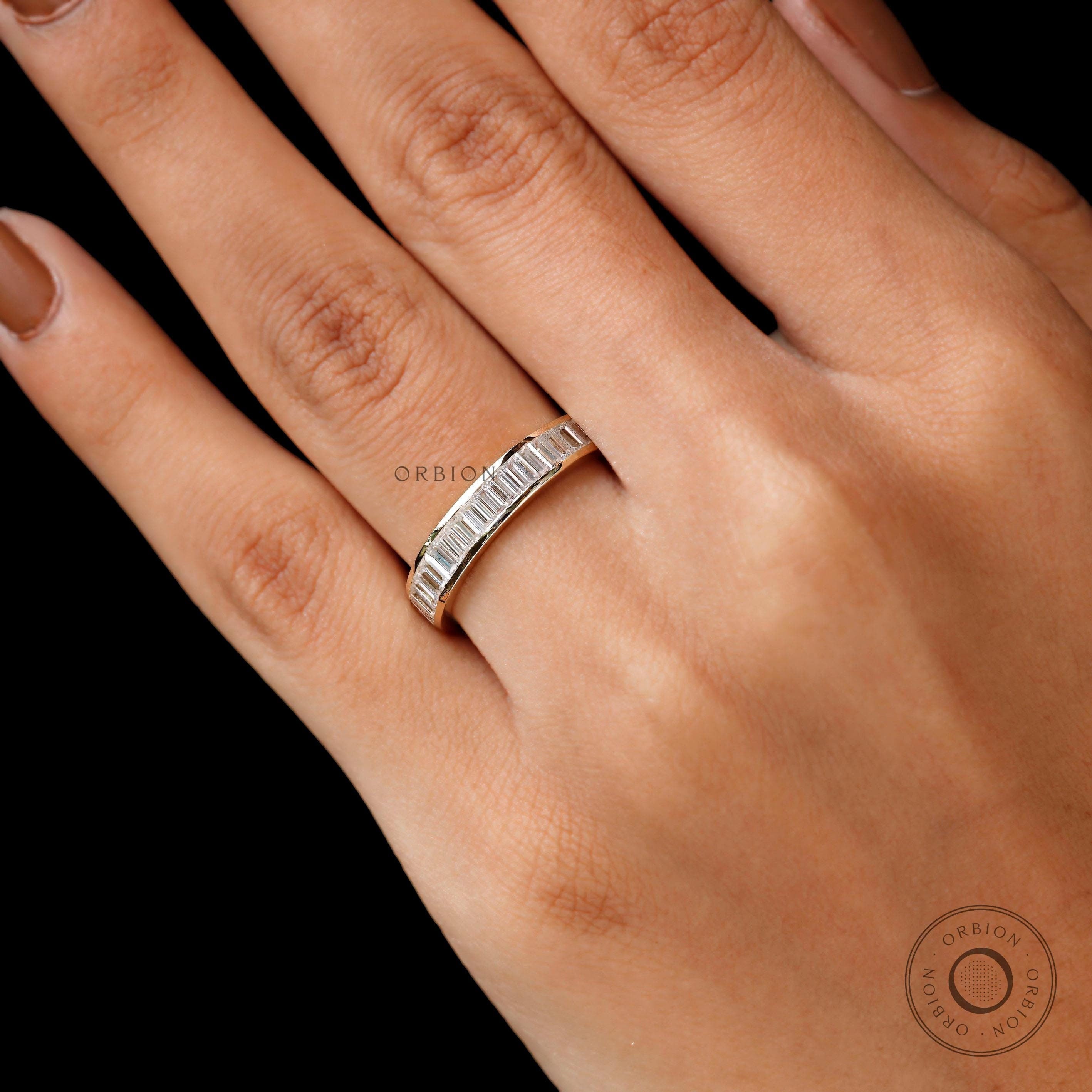 10k/14k/18k Solid Gold Baguette 3/4 Eternity Channel Setting Anniversary Band, Unique Vertical Baguette Wedding Band, Moissanite Stacking Band, Unique Stacking Baguette Band, Women Wedding Band, Anniversary Gift, Statement Band Women, Stackable Band For WomenΒ