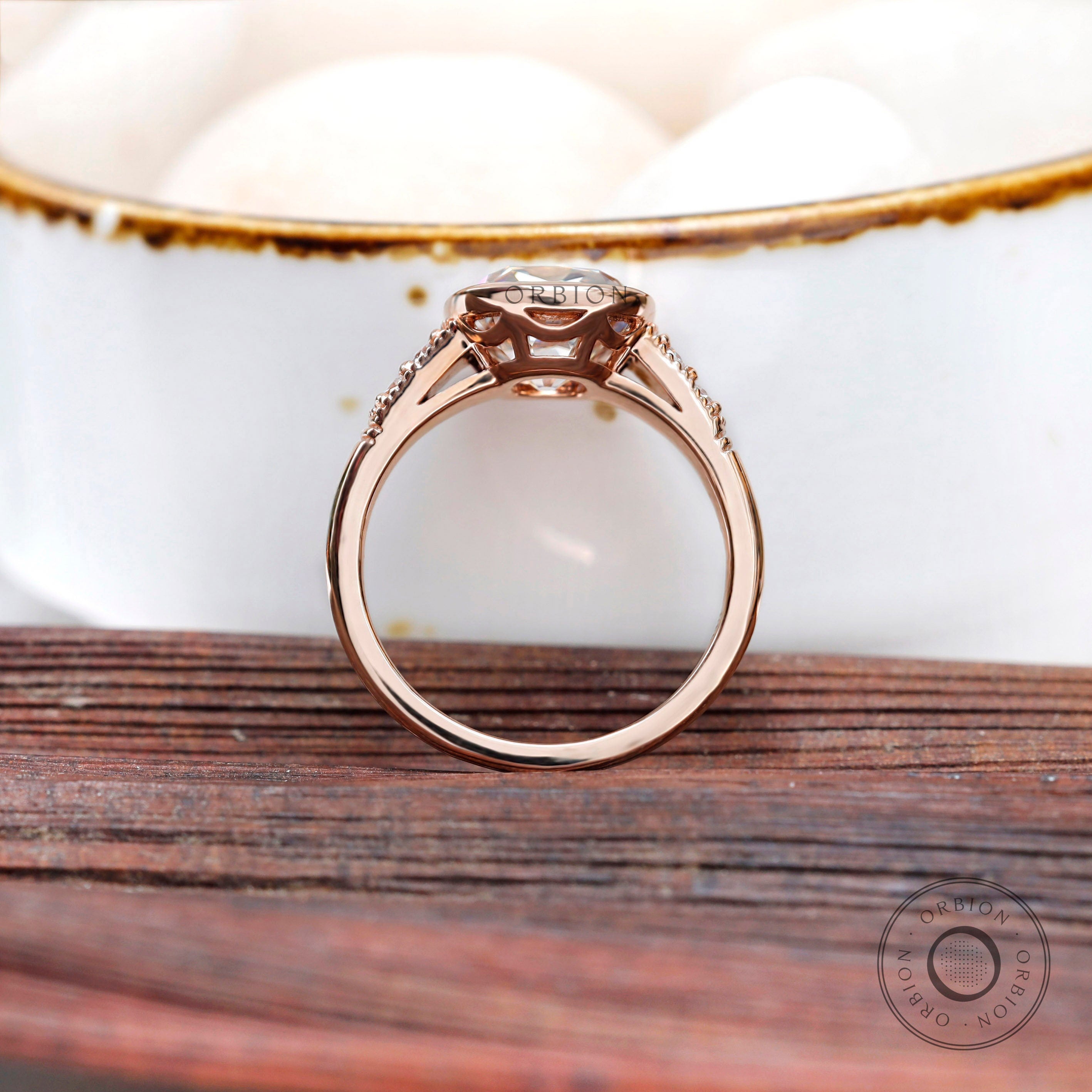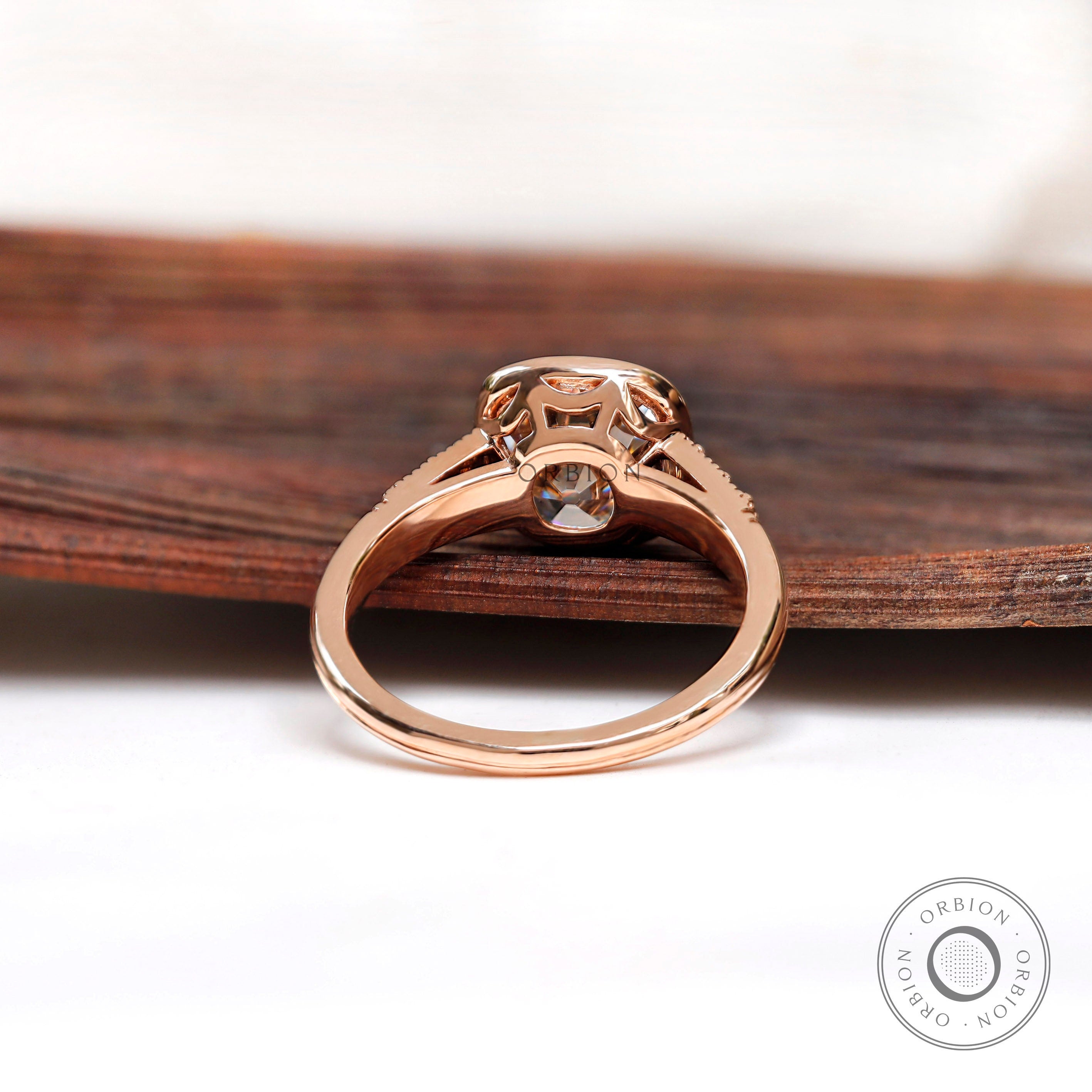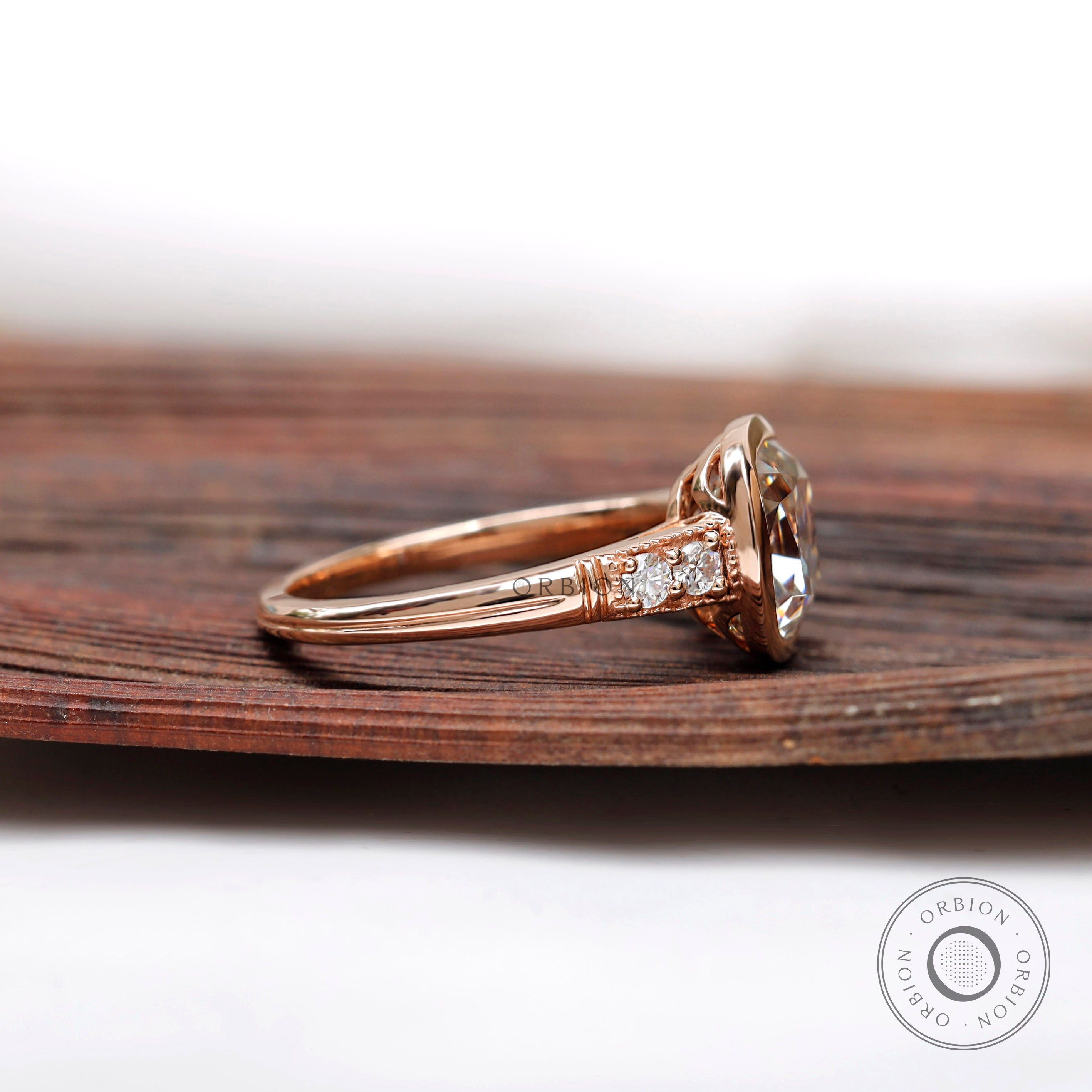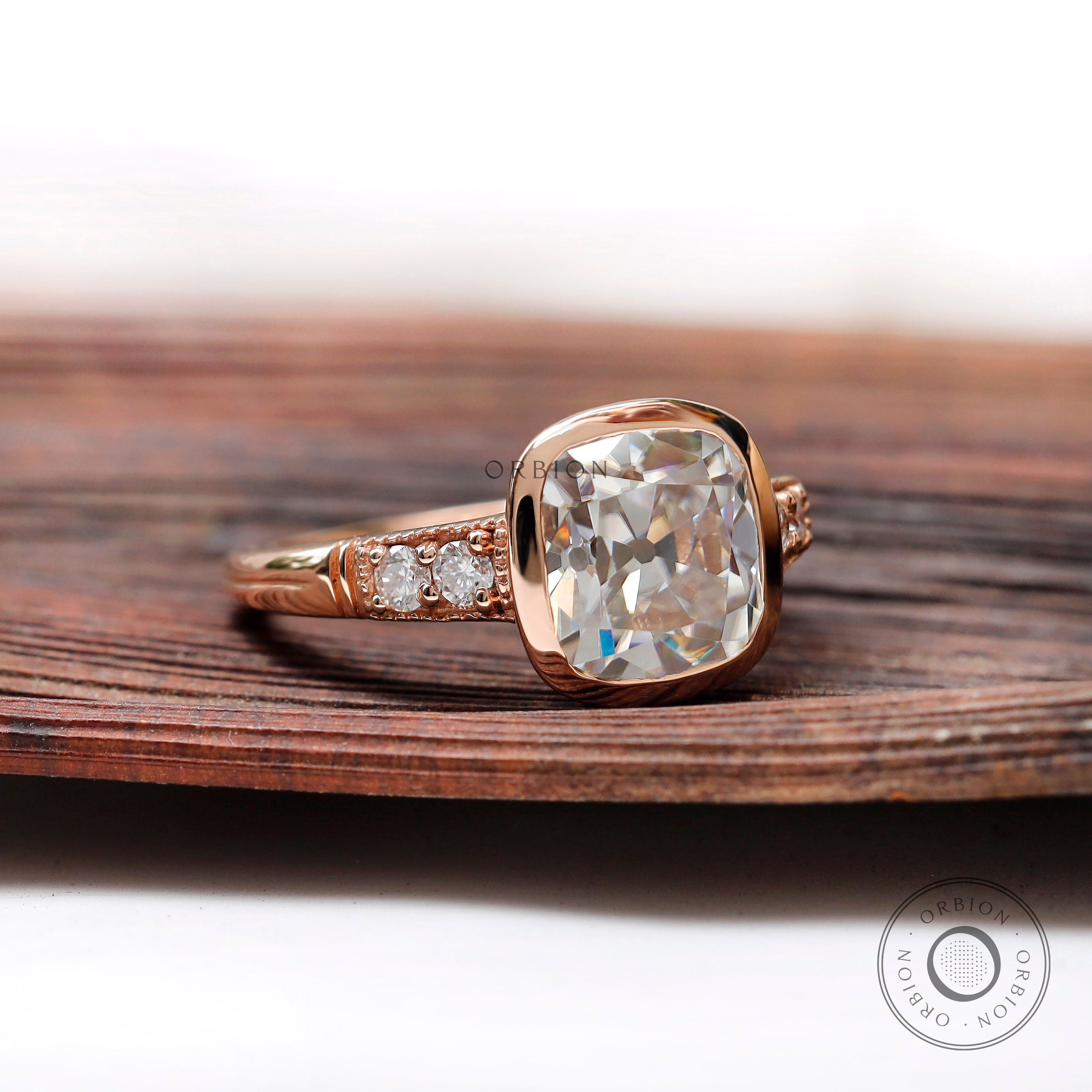 Old Mine Cut Cushion Moissanite Ring, Georgian Ring, 14k Rose Gold Vintage Ring, Heirloom Jewelry, Heirloom Engagement Rings, OMC Colorless Moissanite Collection, Unique Pave Ring, Art Deco Jewelry, Vintage Wedding Ring, Estate Jewelry, Antique Ring Gold, Handmade Jewelry, Proposal Ring For Women, Antique Style Milgrain Ring, Anniversary Gift, Promise Ring, Old Cut Elongated Cushion Ring, Bezel Set Moissanite Ring.