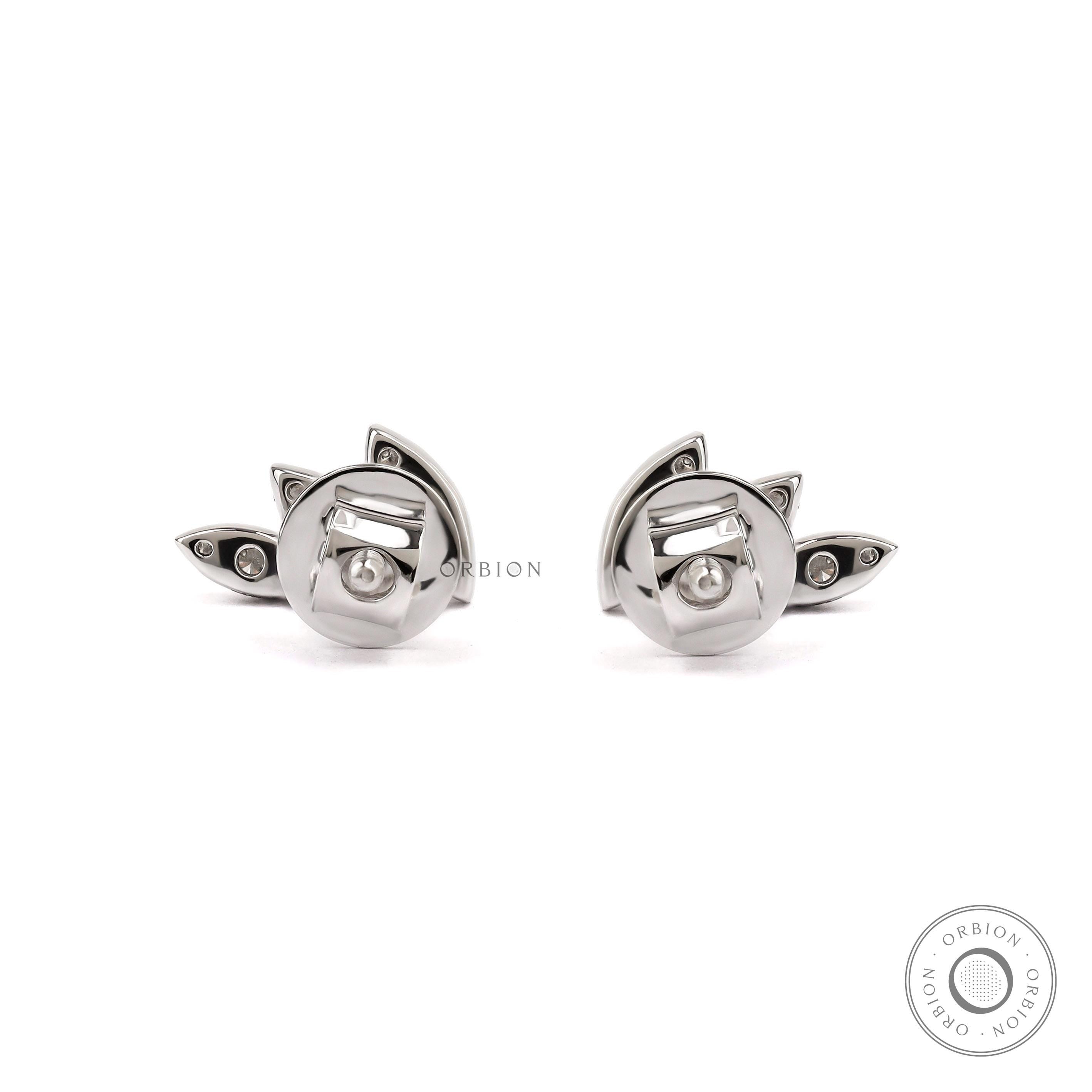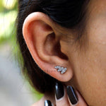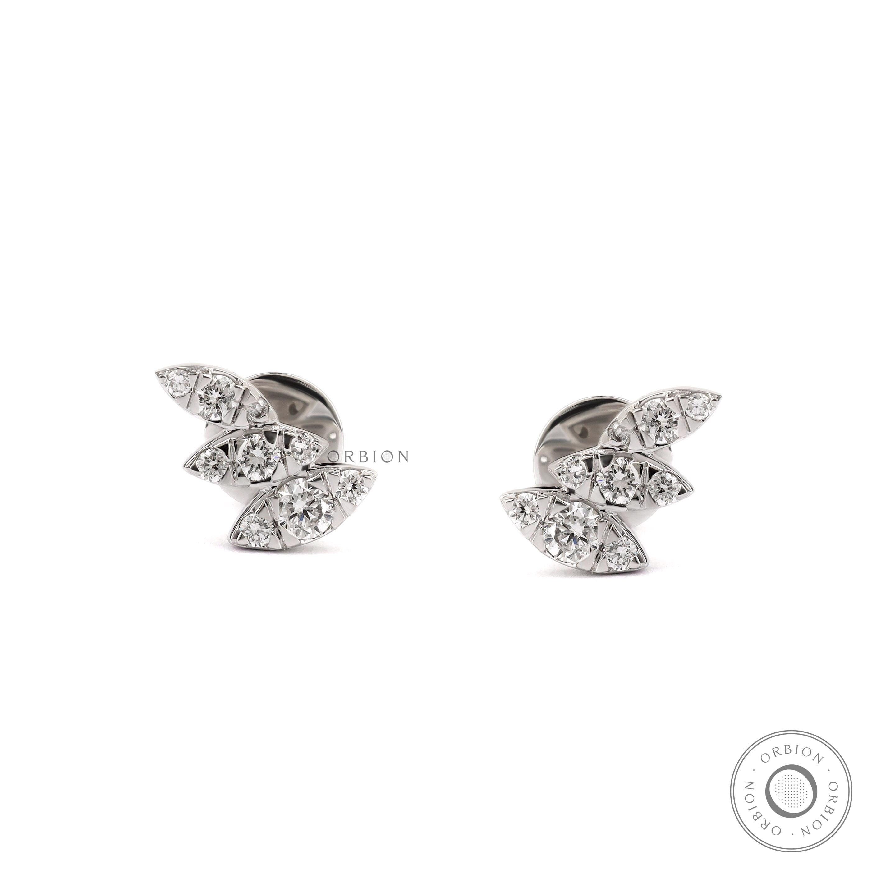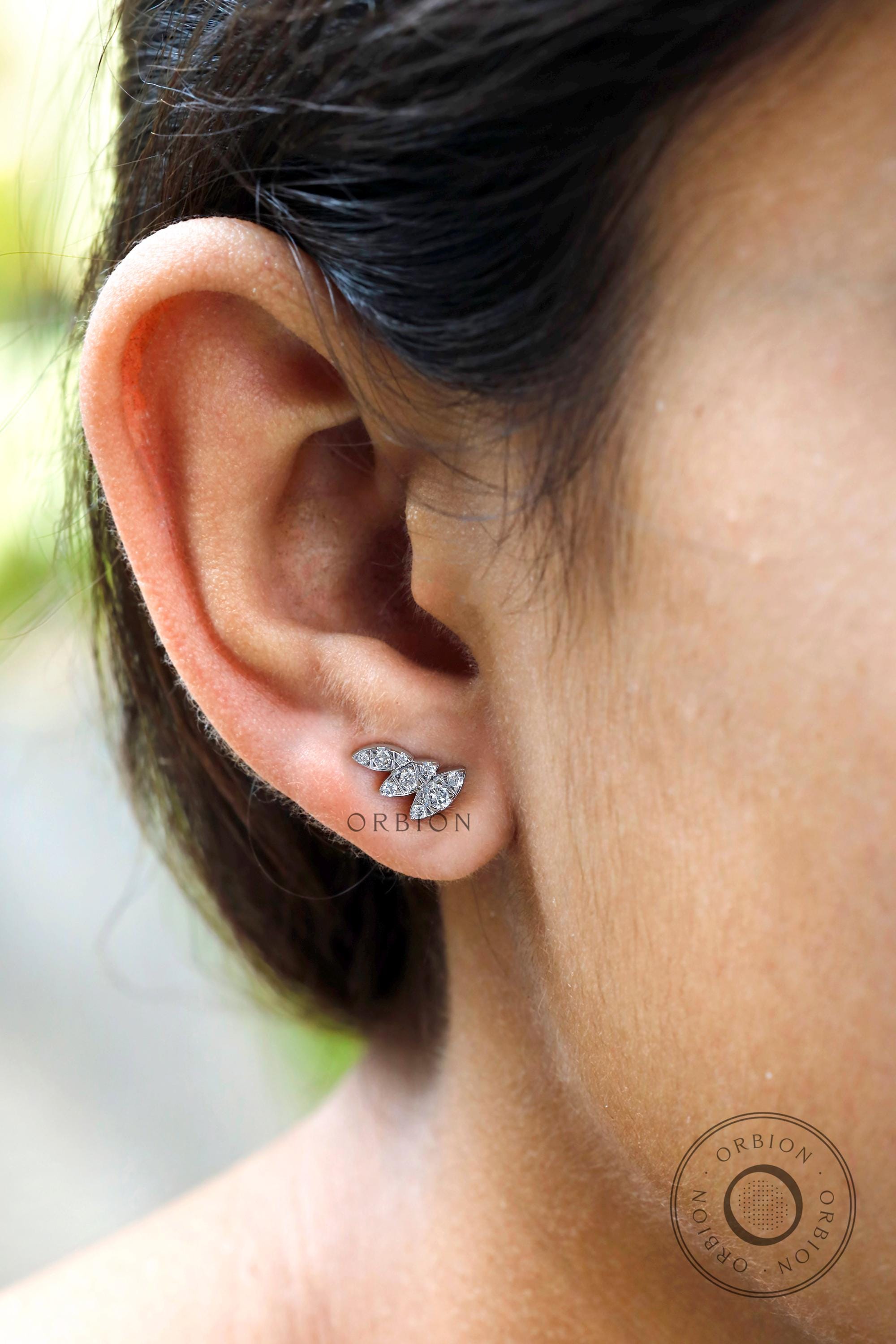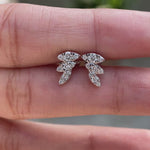 Contemporary Flying Angel Ear Stud, Angel Wing Earrings, Lab Grown Diamond Earrings, White Gold Stud, Dainty Stud Earrings, Leaf Earrings