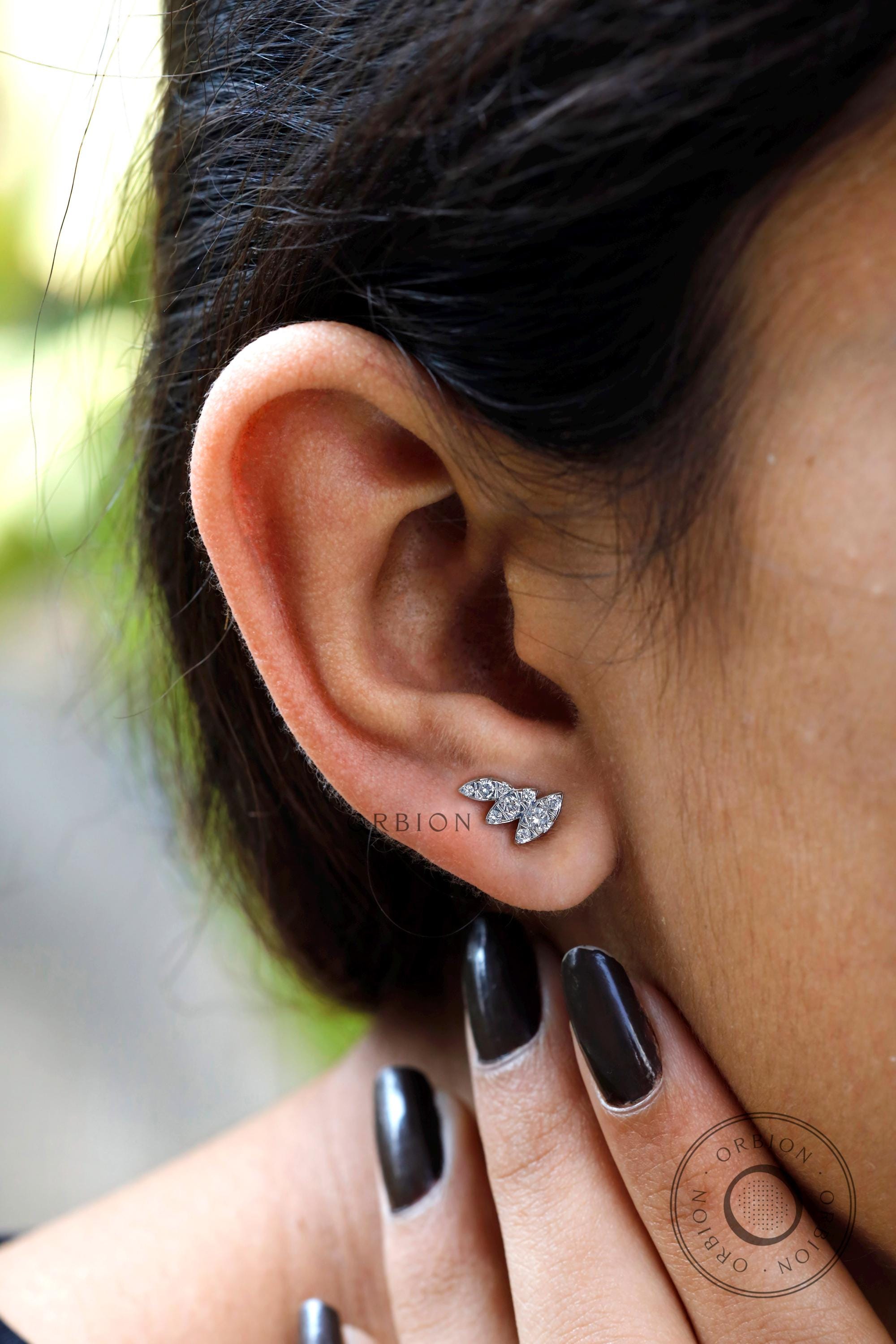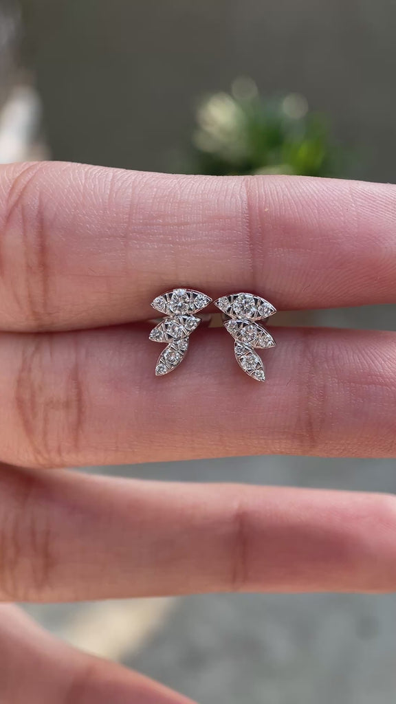 Classic Lab Grown Diamond Stud Earrings, Angel Earrings Gold, Wing Shaped Earrings, Leaf Earrings Studs, Leaf Shaped Earrings, Statement Earrings, Dainty Diamond Earrings, Diamond Earrings For Women, Solid Gold Delicate Diamond Earrings, Lab Grown Diamond Earrings, Daily Wear Diamond Earrings, Diamond Earrings For Girl, Handmade Jewelry, Diamond Jewelry