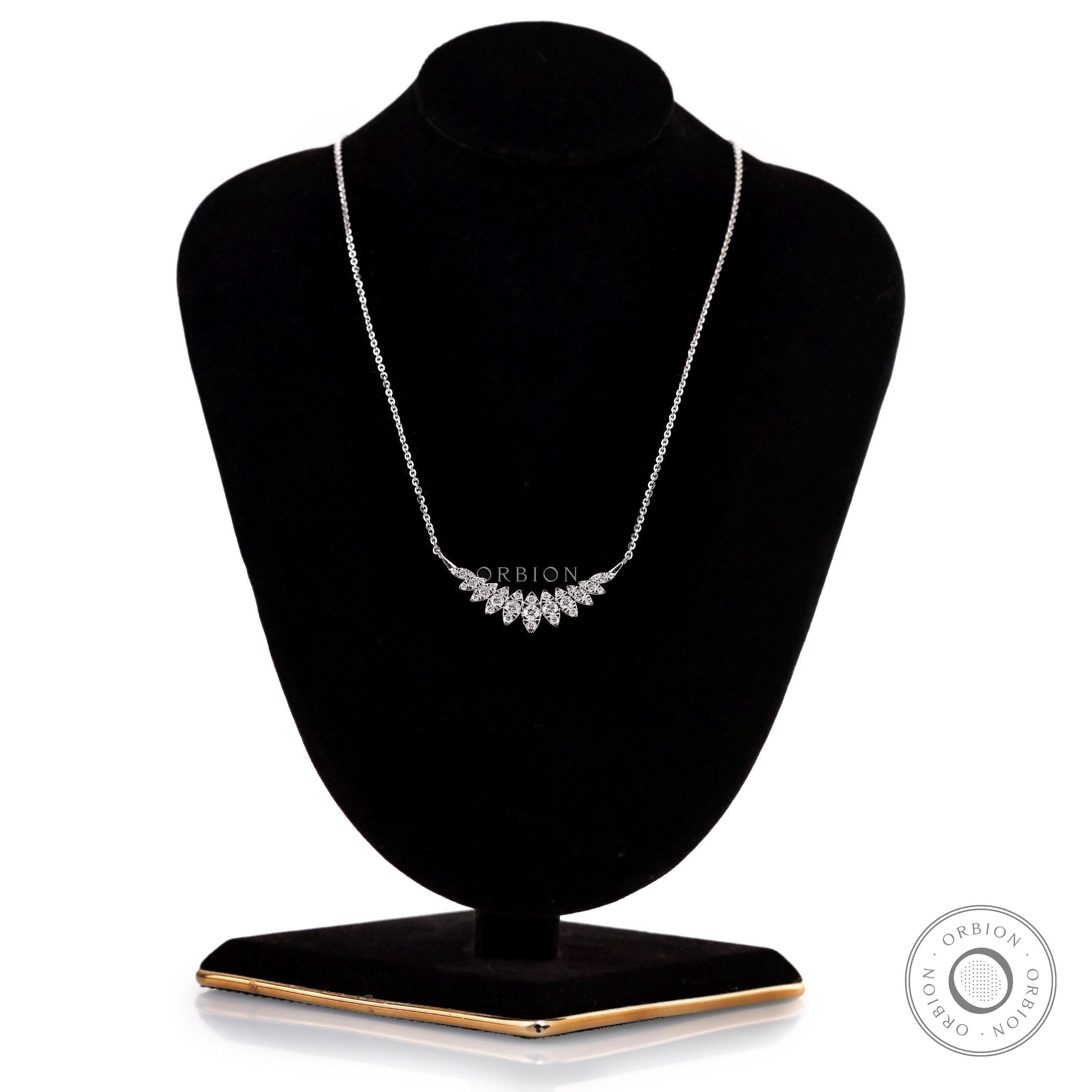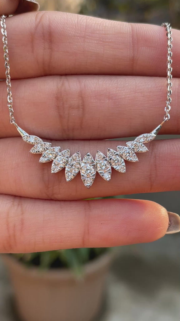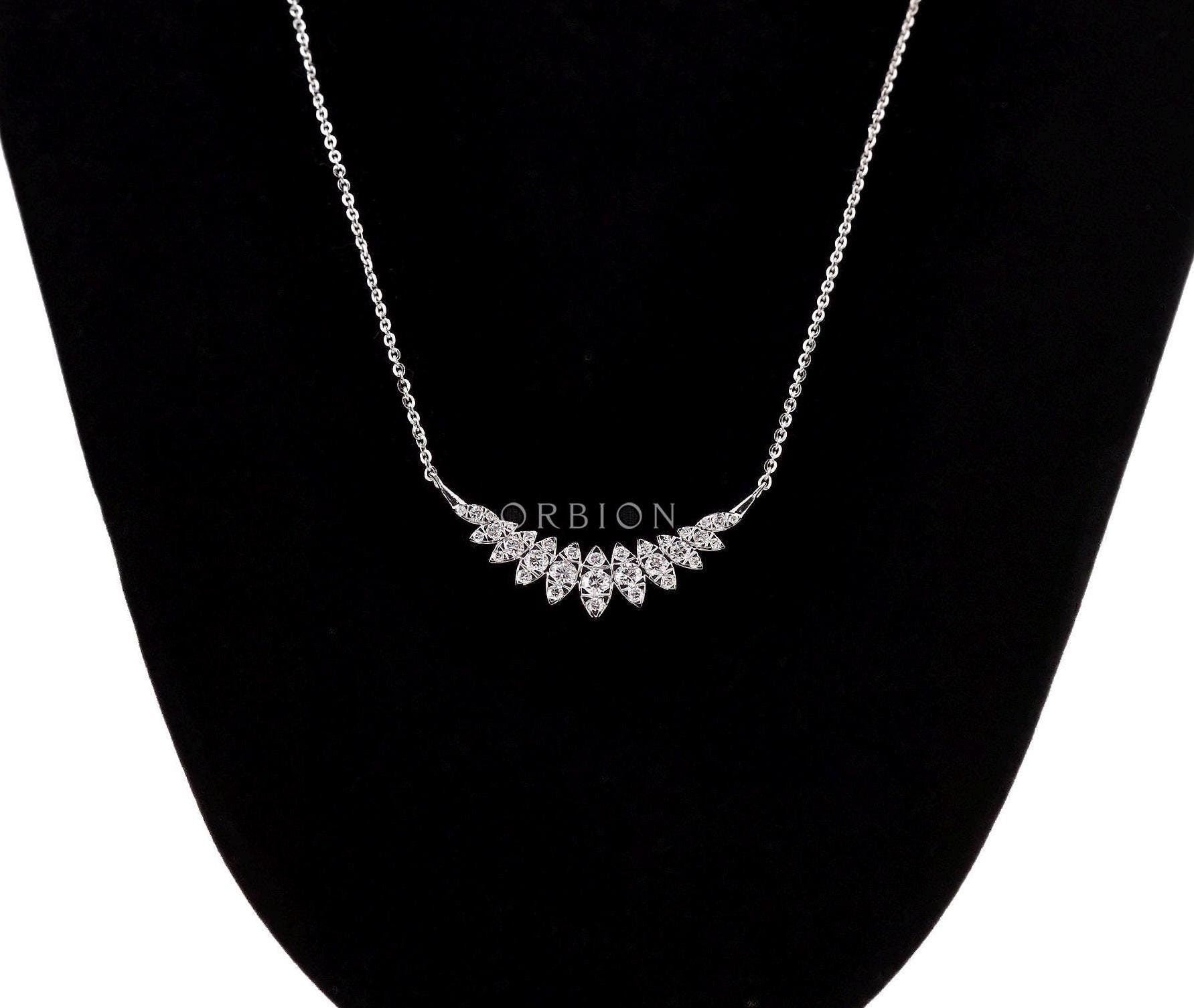 Feather Shaped Pendant Necklace, Marquise Design Flying Angel Lab Grown Diamond Necklace, Curved Marquise Necklace, 10K/14K/18K Gold Lab Diamond Chain Necklace, Dainty Diamond Necklace For Women, Gift For Her, Anniversary Gift, Gift For Mom, Delicate Diamond Necklace, Chain Necklace, Pendant Necklace, Solid Gold Necklace