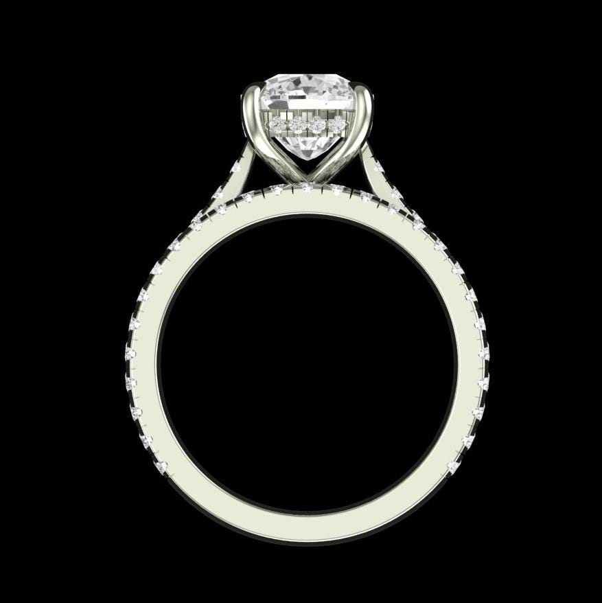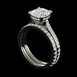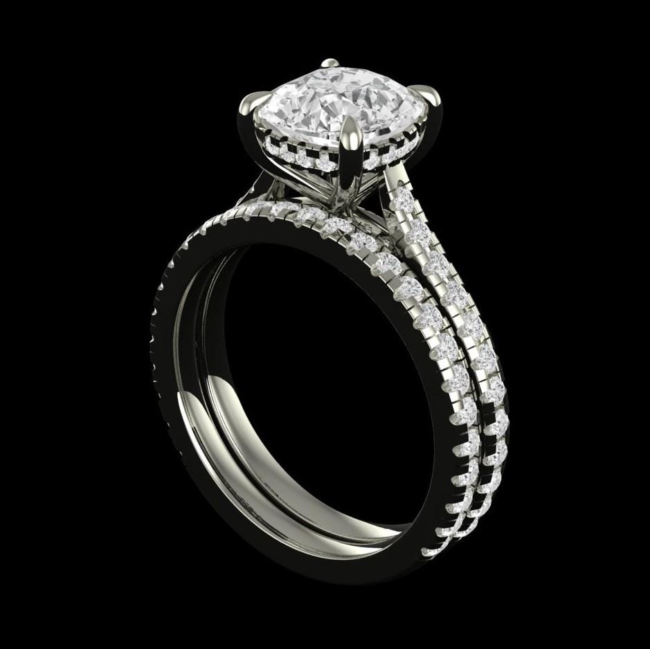 Cushion Cut Engagement Ring With Band, Hidden Halo Ring, Cathedral Shank Rings, Lab Diamond Matching Band, Moissanite Bridal Ring Set