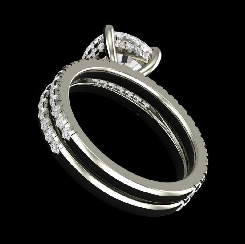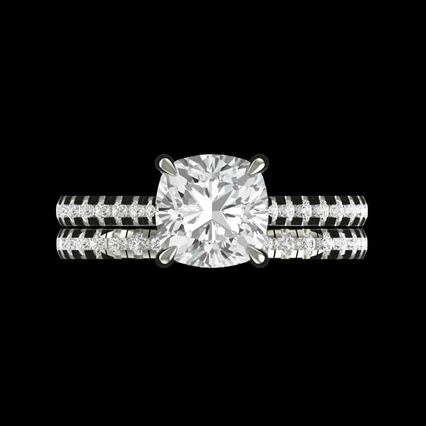 Solitaire Cushion Moissanite Engagement Ring With Matching Lab Diamond Band, Lab Diamond Accents, Hidden Halo Wedding Rings, Cathedral Shank White Gold Rings, 10k/14k/18k Solid Gold Ring Set, Anniversary Ring Set, Bridal Ring Set, Bridesmaid Rings