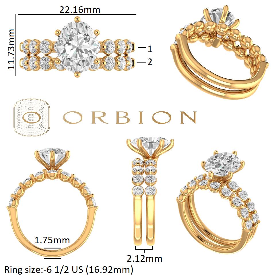 Oval Lab Diamond Ring Set Engagement Ring With Matching Shared Prong Setting Wedding Band 18k Yellow Gold Moissanite Bridal Ring Set