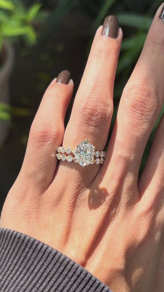 Oval Lab Diamond Wedding Ring Set, Oval Bridal Ring Set, Oval Wedding Ring Set Moissanite, Lab Grown Ring Set, Bubble Band Wedding Ring, Bubble Band Wedding Ring Shared Prong, Solitaire Ring Set Lab Grown, Perfect Rings For Wedding, Unique Rings For Women, 1 Year Anniversary Gift, Wedding Jewelry, Bridal Jewelry.