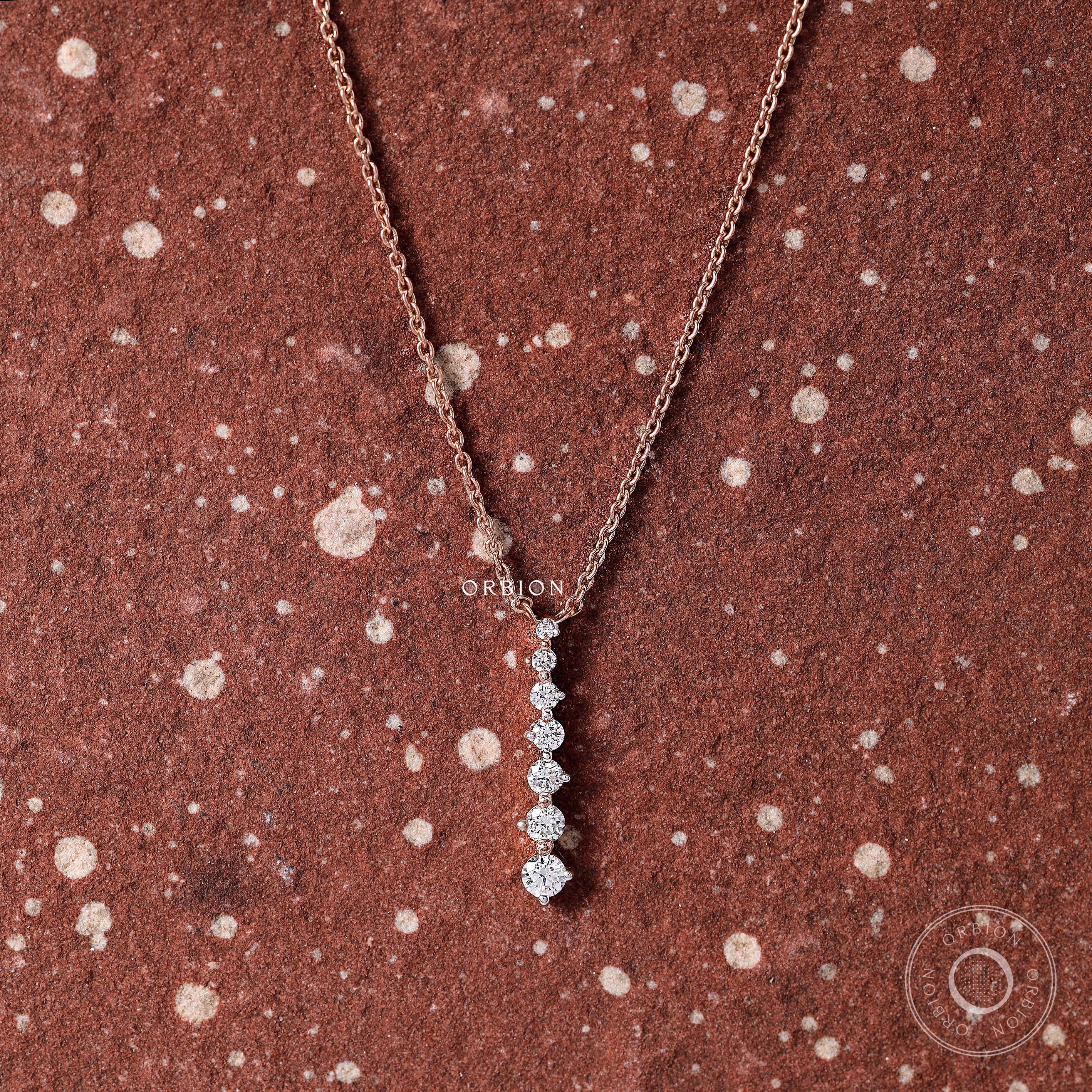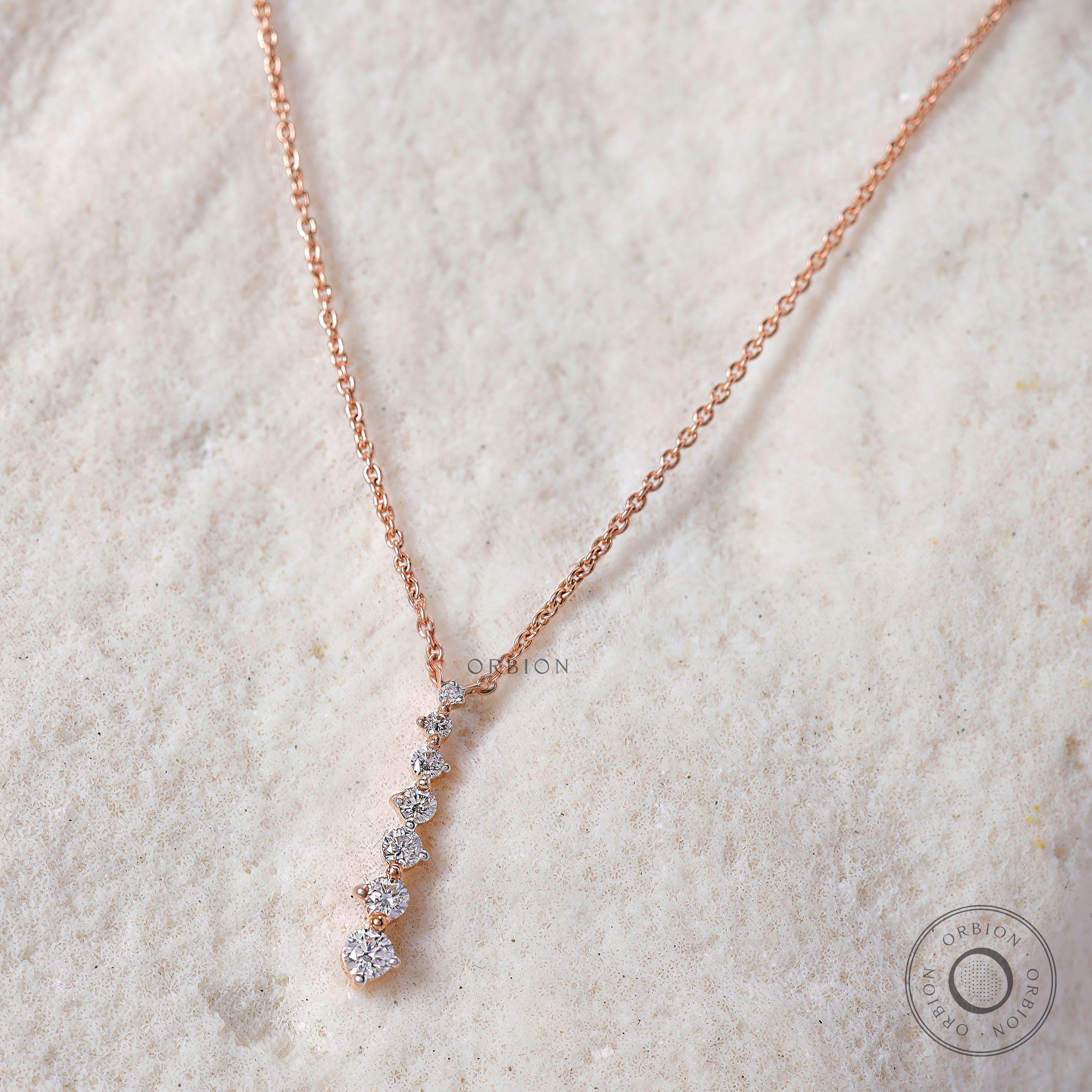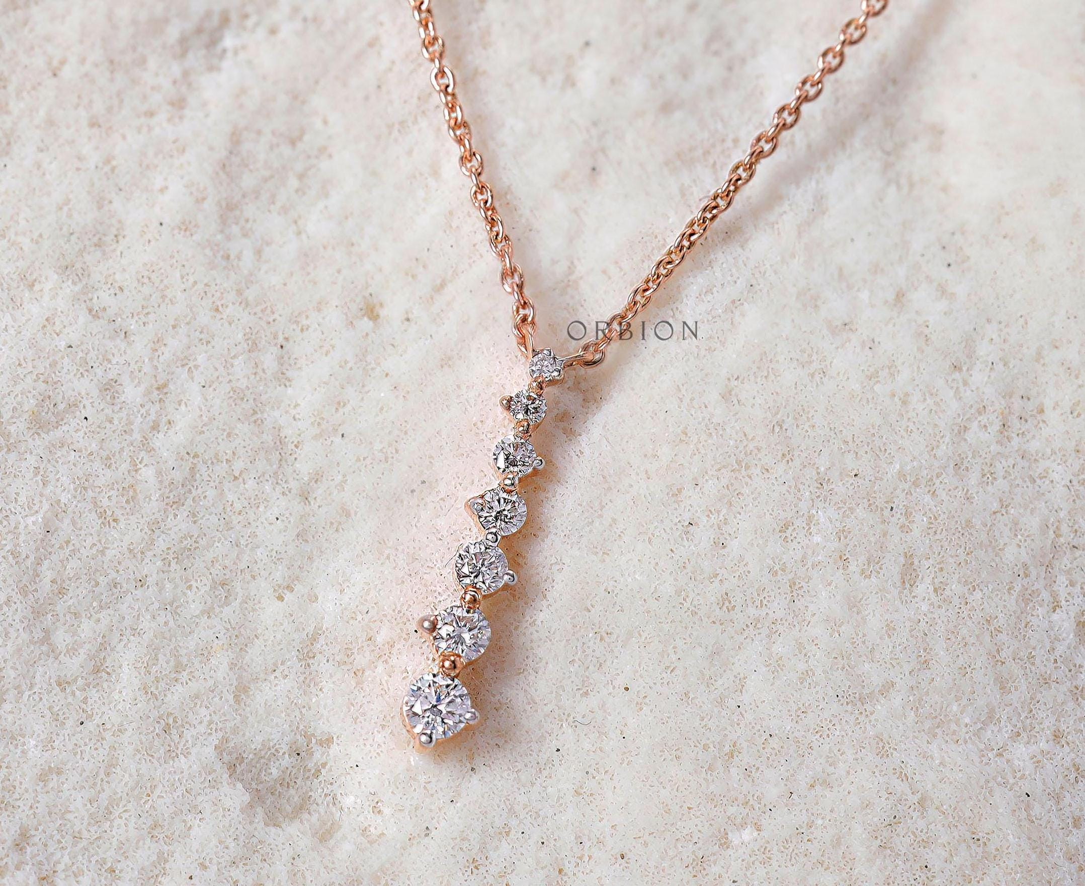 Dainty drop diamond pendant, Graduated diamond necklace, Long drop diamond pendant, 10k/14k/18k Solid gold pendant chain necklace, Vertical diamond pendant necklace, Seven stone vertical drop diamond pendant, Dainty diamond necklace for women, Delicate diamond necklace, Chain necklace, Pendant necklace, Solid gold necklace