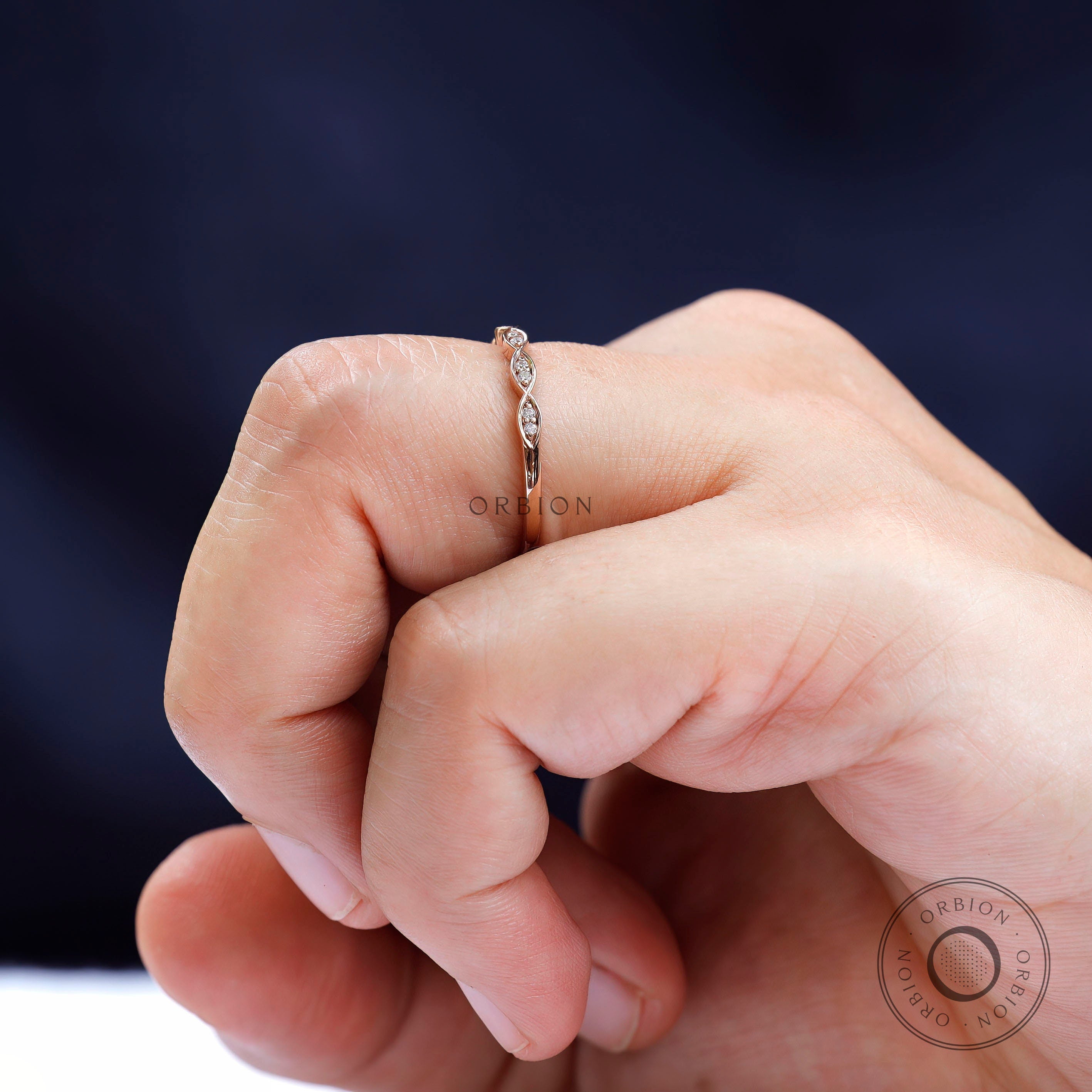 Dainty Moissanite Band, Half Eternity Band, Marquise Shaped Stacking Band, Minimalist Ring Jewelry, Delicate Band Ring, 14k Rose Gold Band