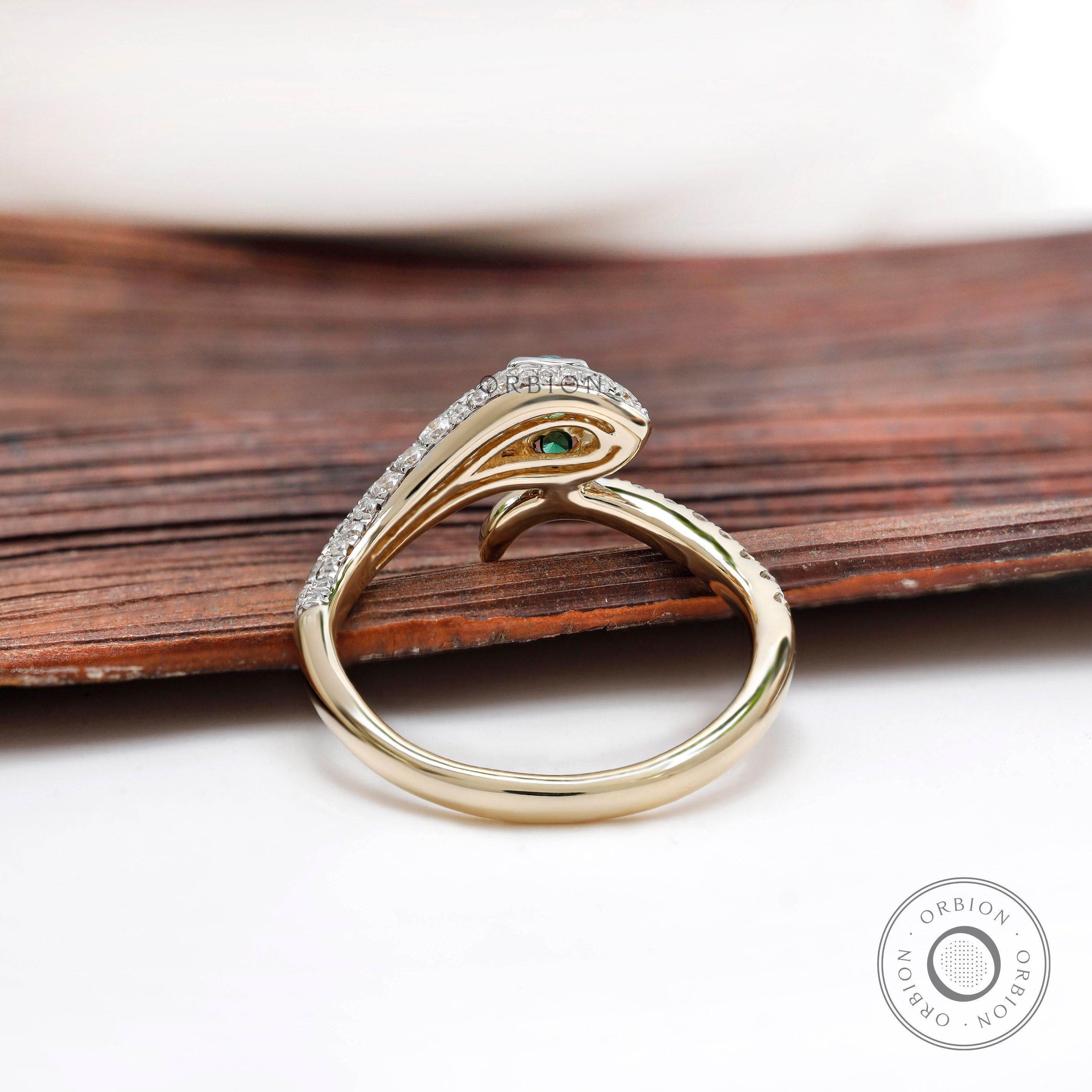 Dainty Lab Diamond Snake Ring – Symbolizes Strength and Beauty, Perfect Gift for Her! Unique Serpent Ring in 10K Gold