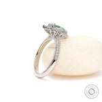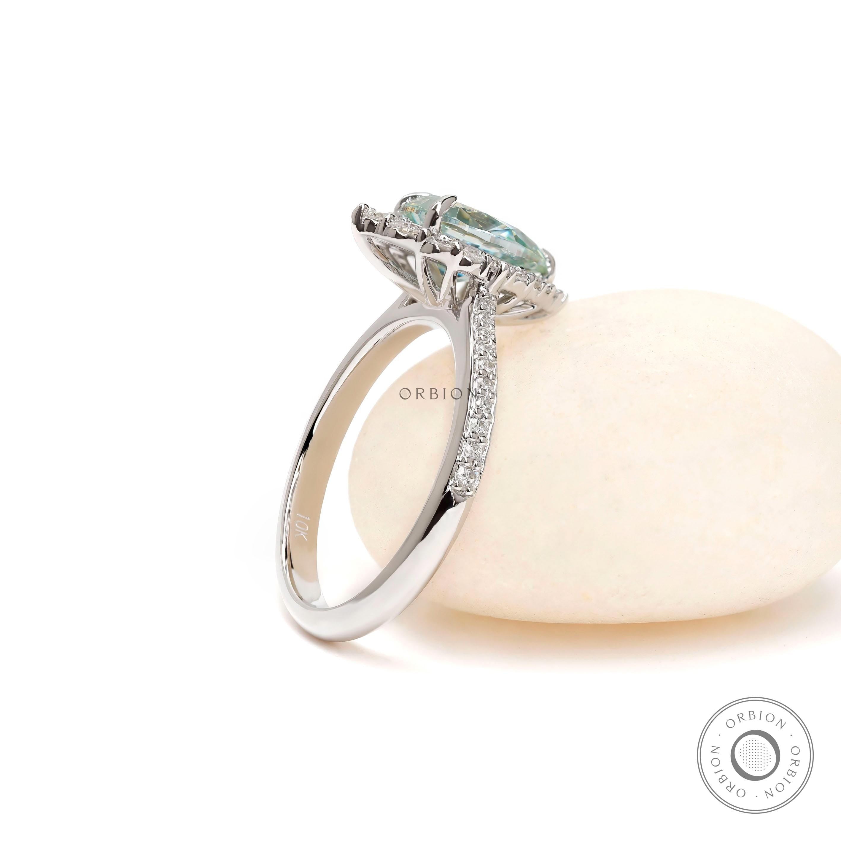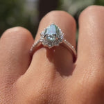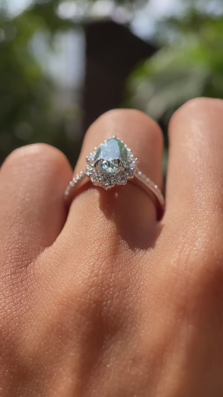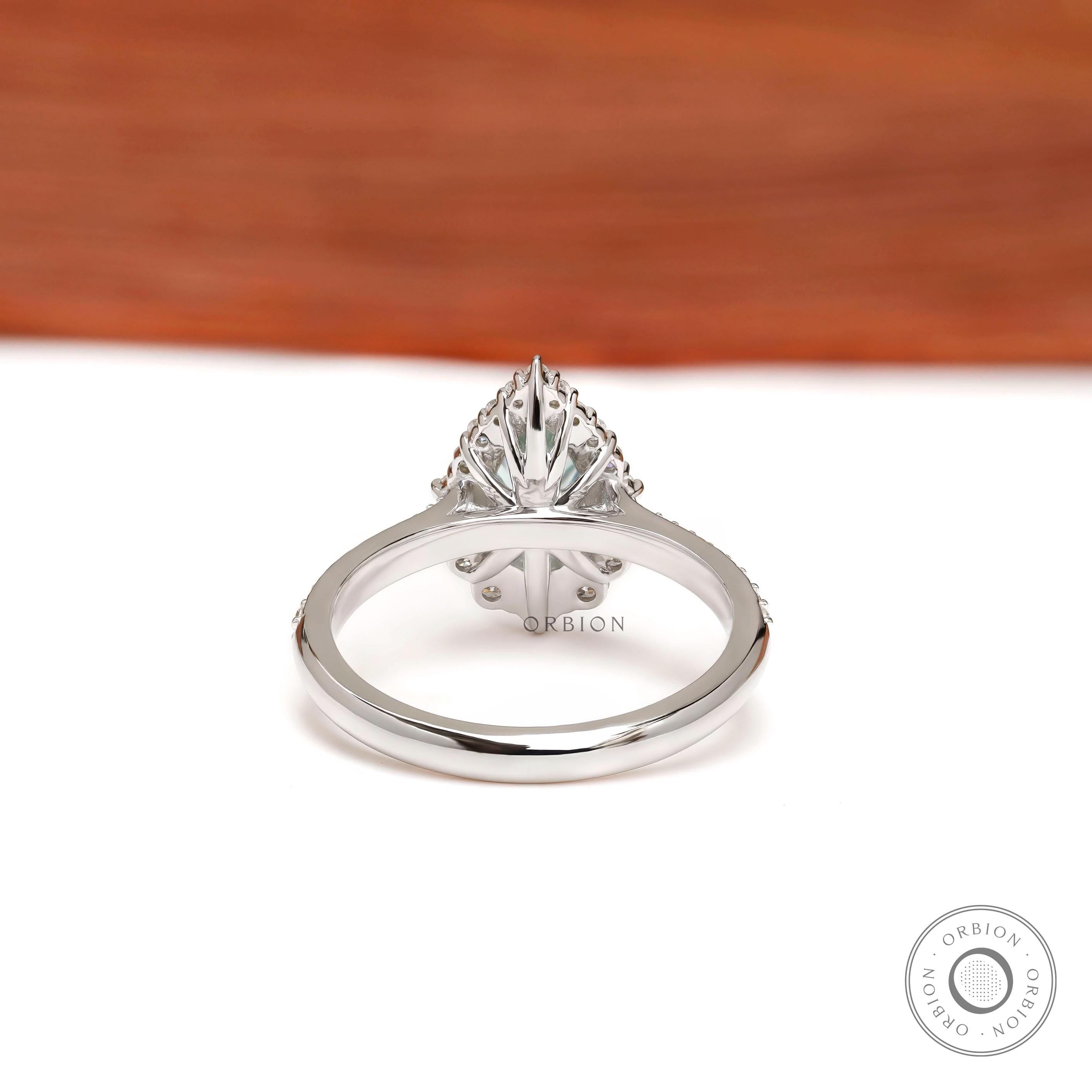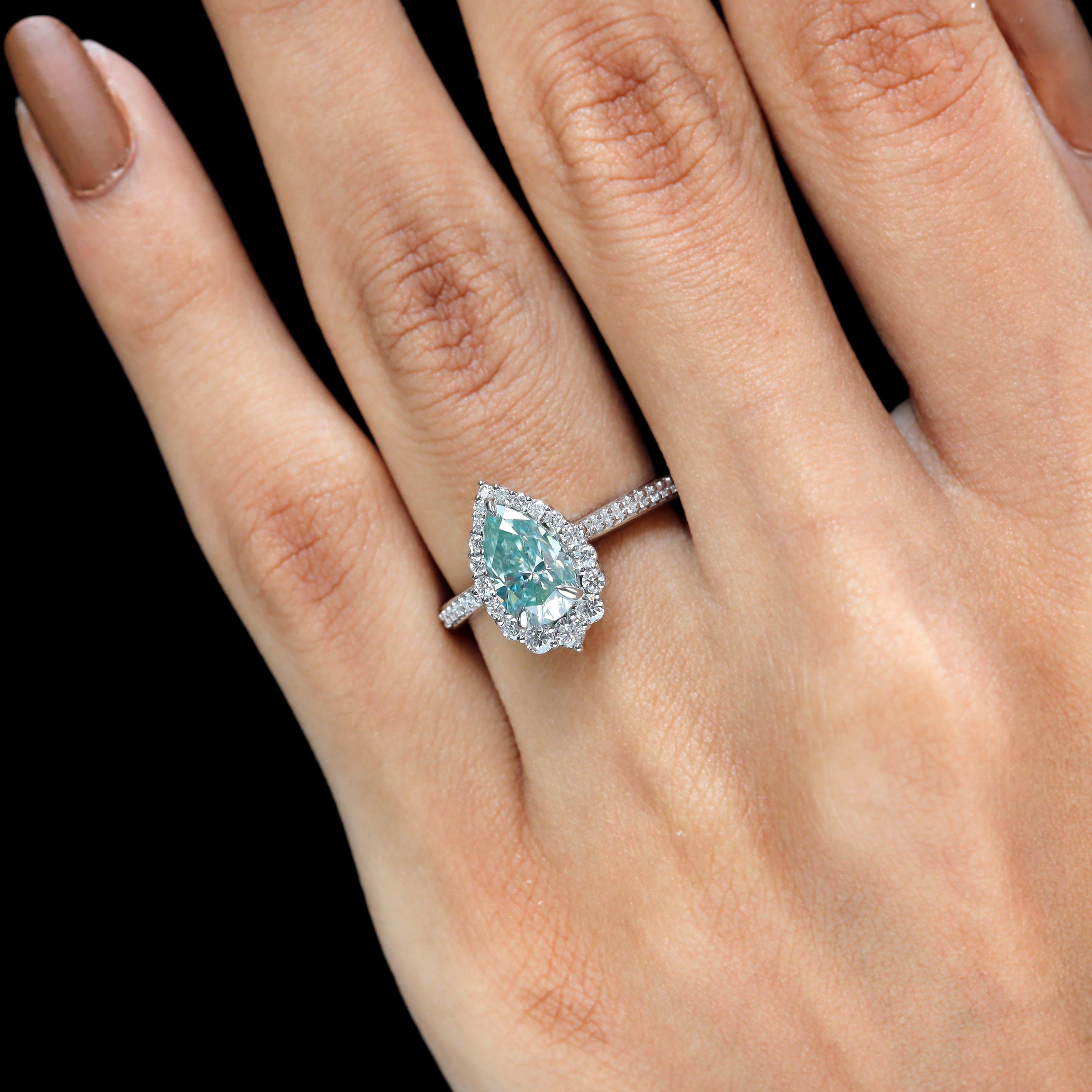 Elegant Light Green Moissanite Halo Ring in White Gold - Perfect for Proposals Unique and Sparkling Pear Cut Design, A Timeless Choice