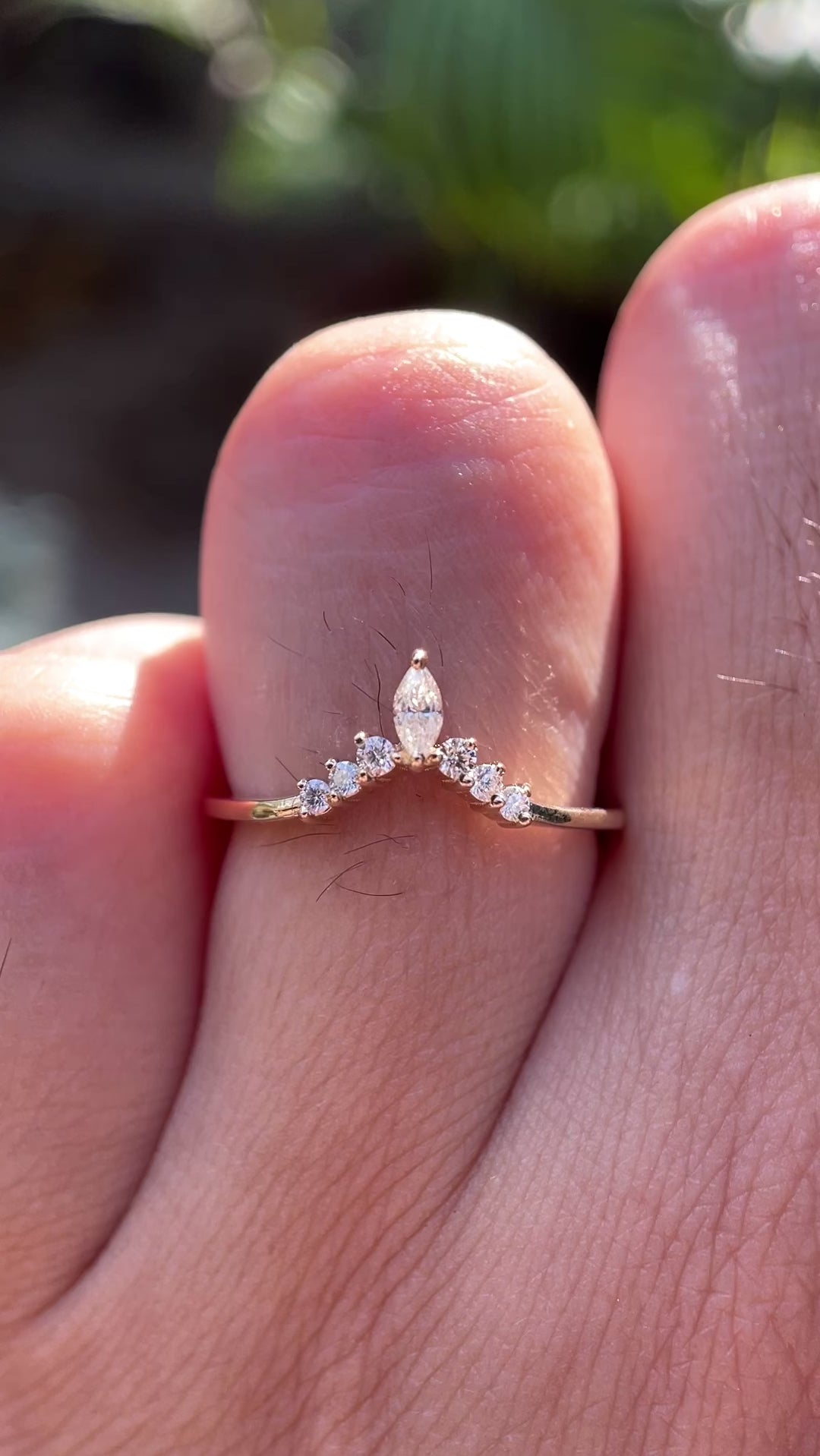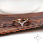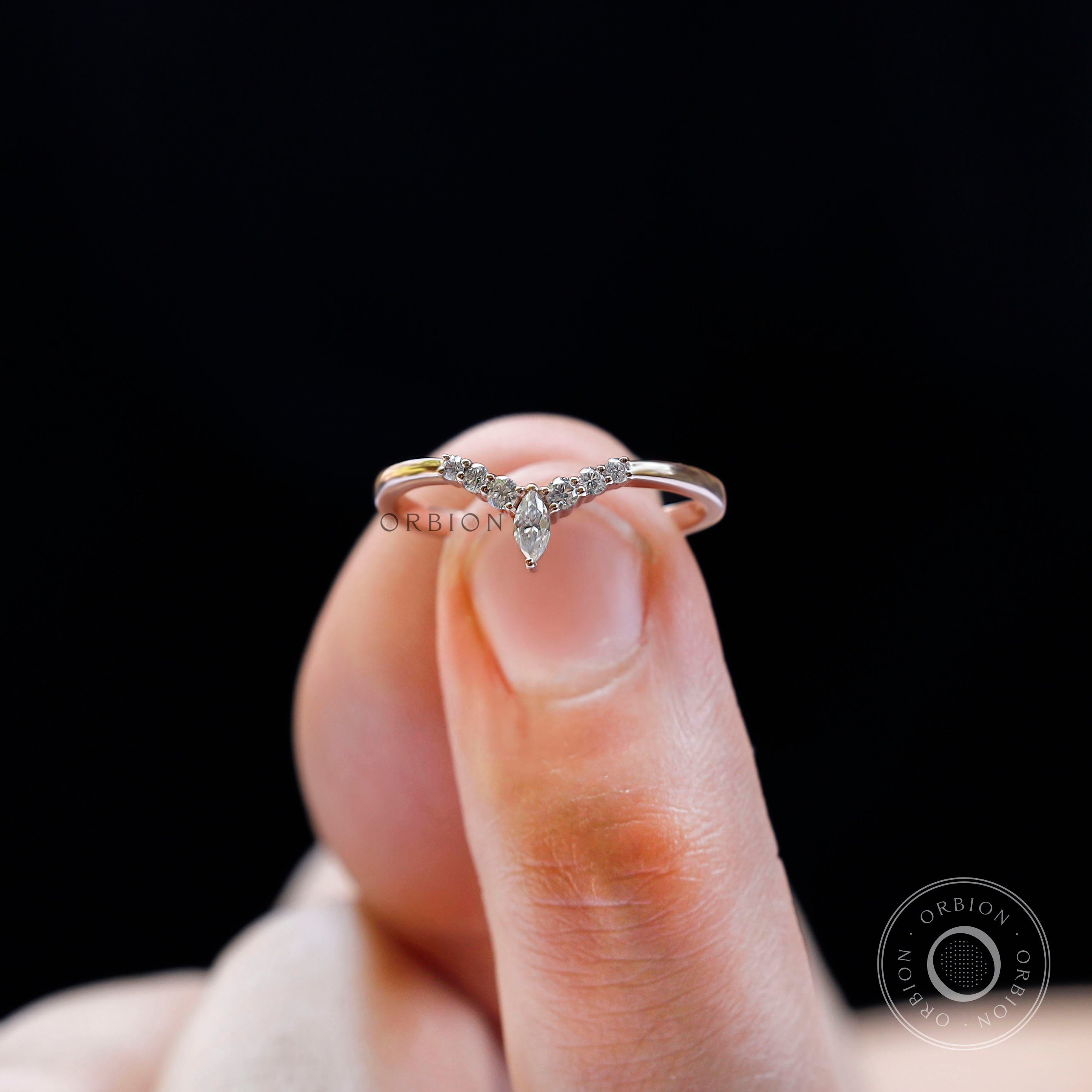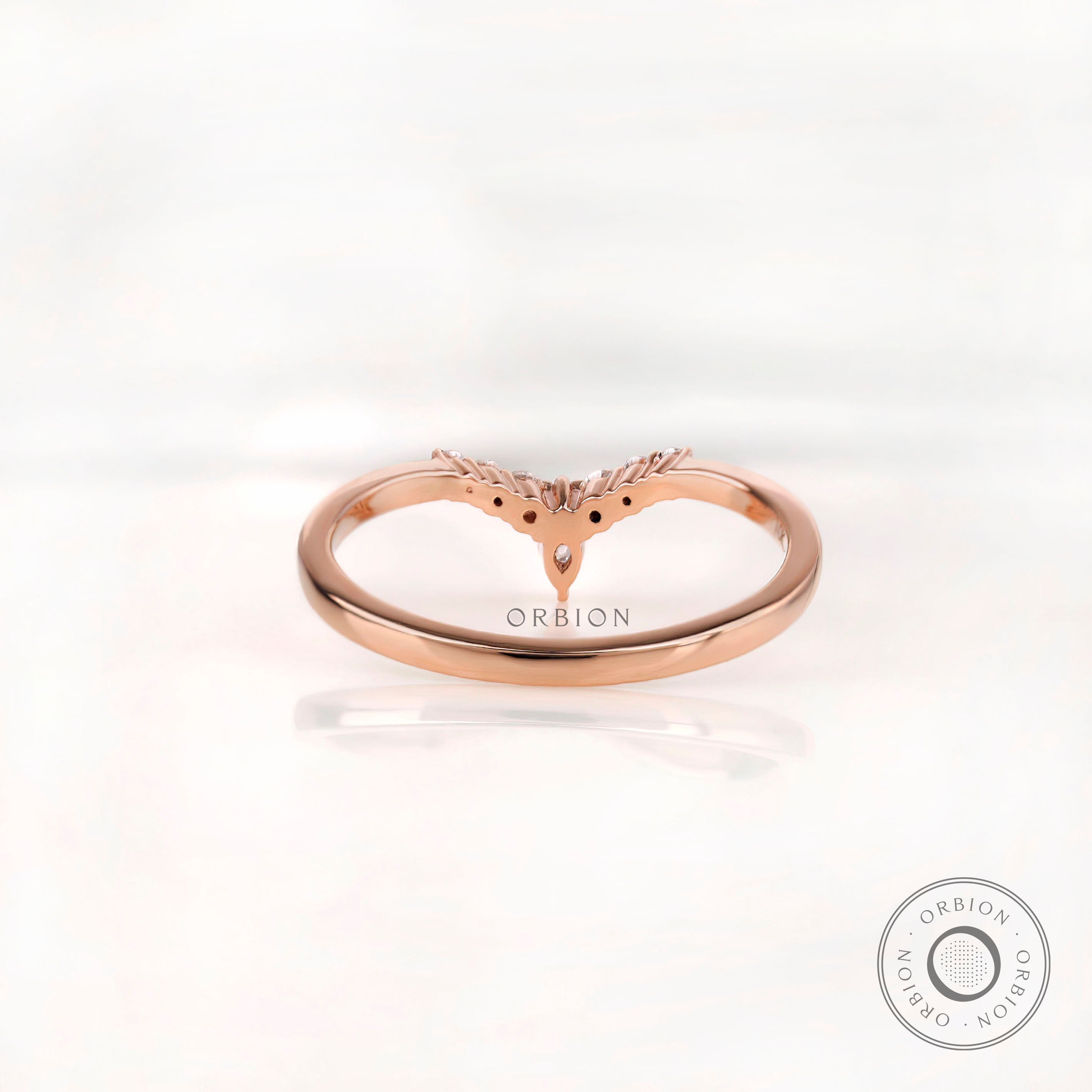 14K Rose Gold Wishbone Wedding Ring, Nesting Band Ring, Marquise And Round Cut Moissanite Wedding Band, Chevron Wedding Ring, Contour Band Women, Curved Wedding Band, Minimalist Band, Stacking Band, Matching Band, Wedding Band Women